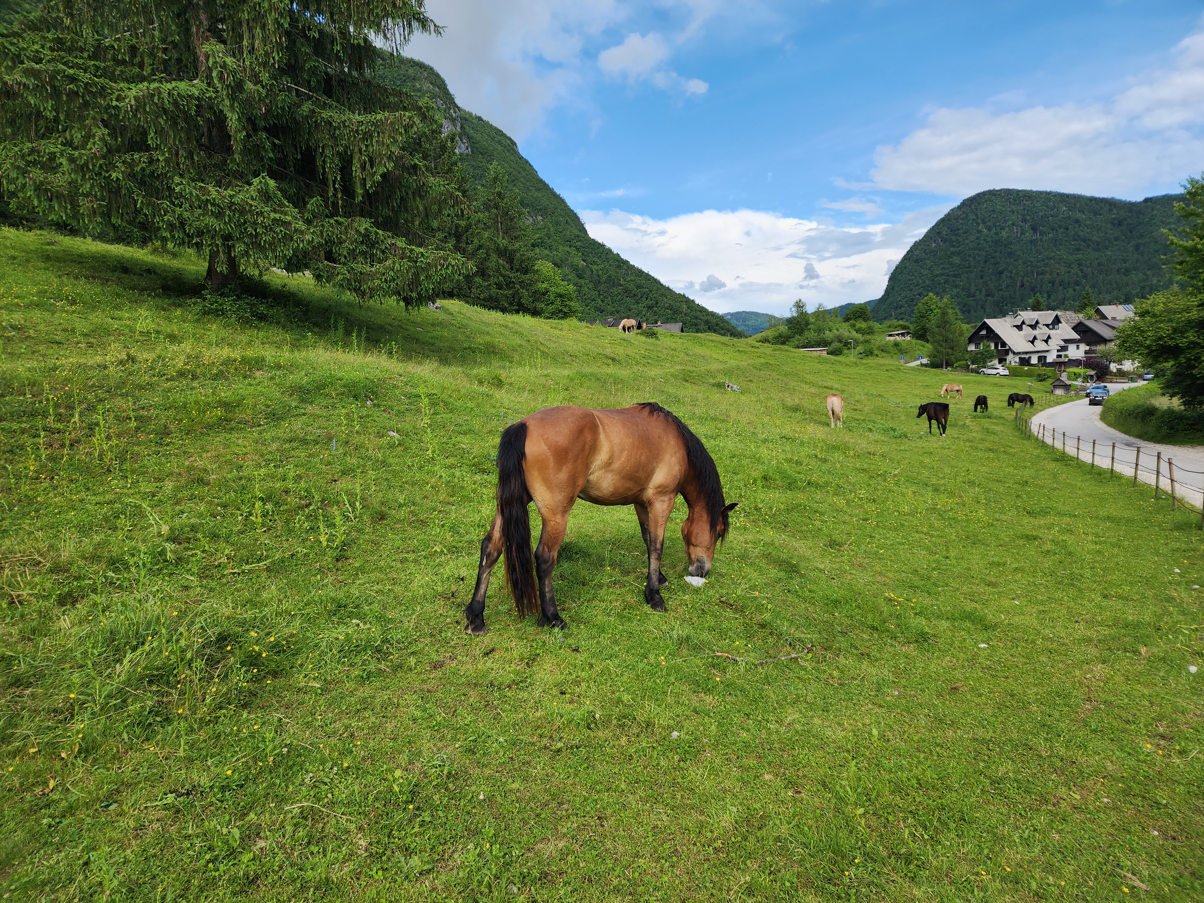 블레드에서 2박을 하고 슬로베니아의 유일한 국립공원인 트리글라브 국립공원과 가까운 보힌호수마을을 베이스 캠프 삼아 트리글라브 국립공원 트레킹을 하려고 한다. 블레드에서 버스(3.3유로) 타고 40분 정도 왔다. 호수 주변을 둘러 보았다.