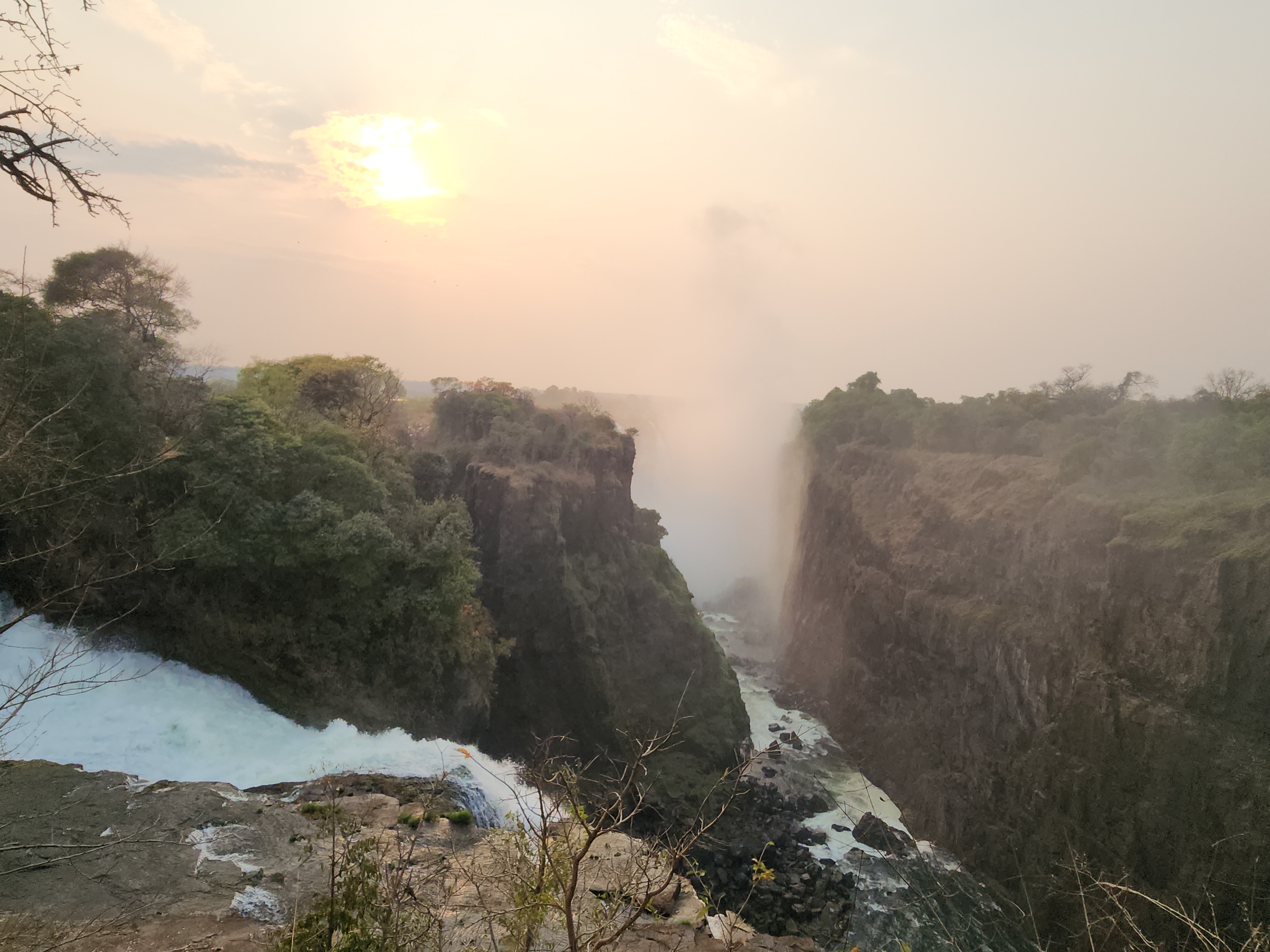빅토리아 폭포는 짐바브웨와 잠비아 2나라의 국경에 있다. 우리는 아프리카 트럭킹의 종착지였던 짐바브웨 빅폴스에서 짐바브웨 쪽 빅폴(입장료 50달러)을 보러 갔다. 아침을 챙겨먹고 7시가 되어 폭포입구에서 입장권을 사고 입장했다. 수량이 적은 건기이나 입구에서부터 폭포 물소리는 웅장하게 들렸다. 기대가 너무 컸나 실제의 빅토리아 폭포는 건기라 상상했던 것보다는 규모가 작았다. 우의가 필요하다고 했는데 건기에는 필요없었다 . 그래도 세계 3대폭포 중에서 처음 보는 폭포라 기대는 못미쳤지만 그 규모와 우기일 때를 상상하니 입이 벌어졌다. 3시간 정도 폭포를 구경하면서 빅토리아 폭포에 푹 빠졌다.