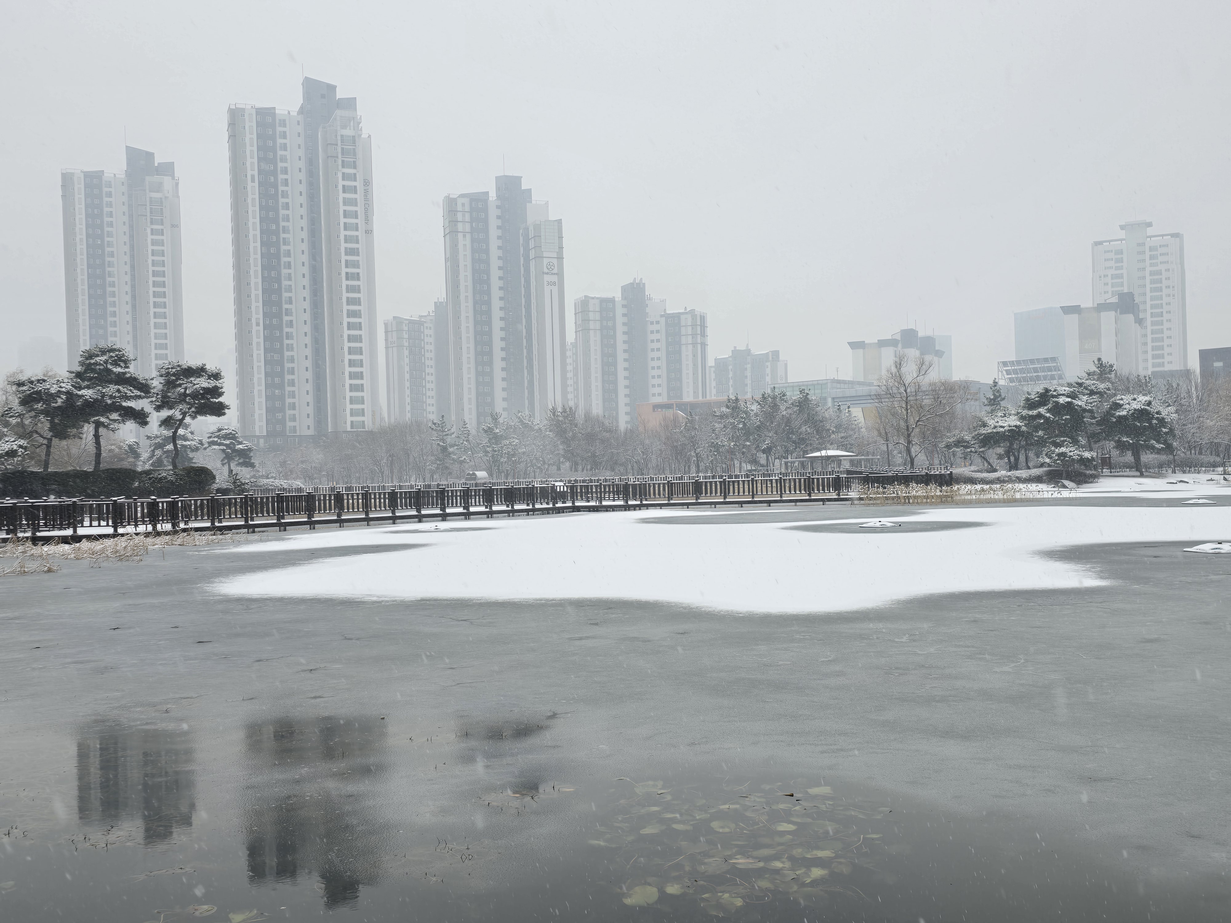 눈오는 날 인천 미추홀 공원 풍경