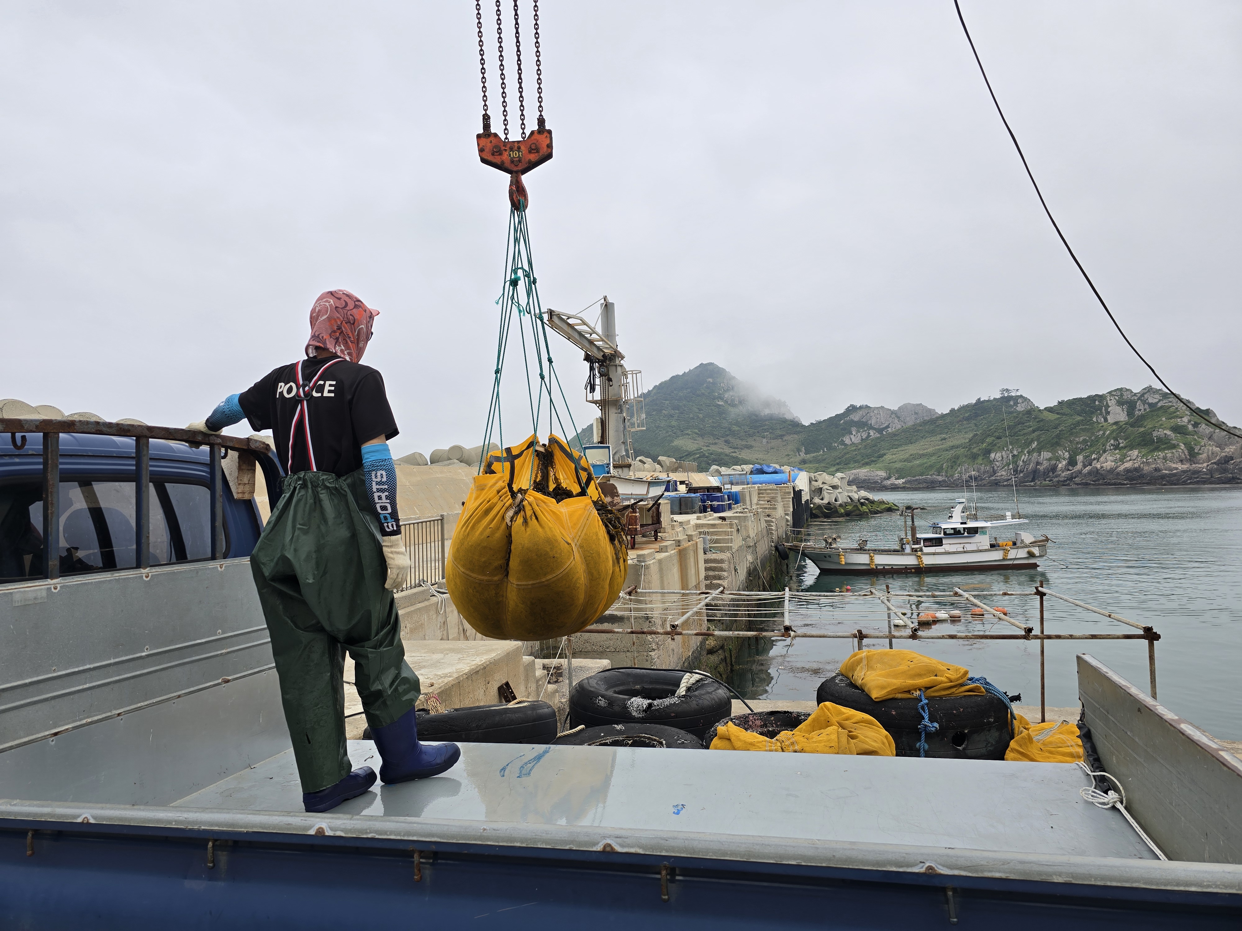 돌미역 채취하는 만재도 주민