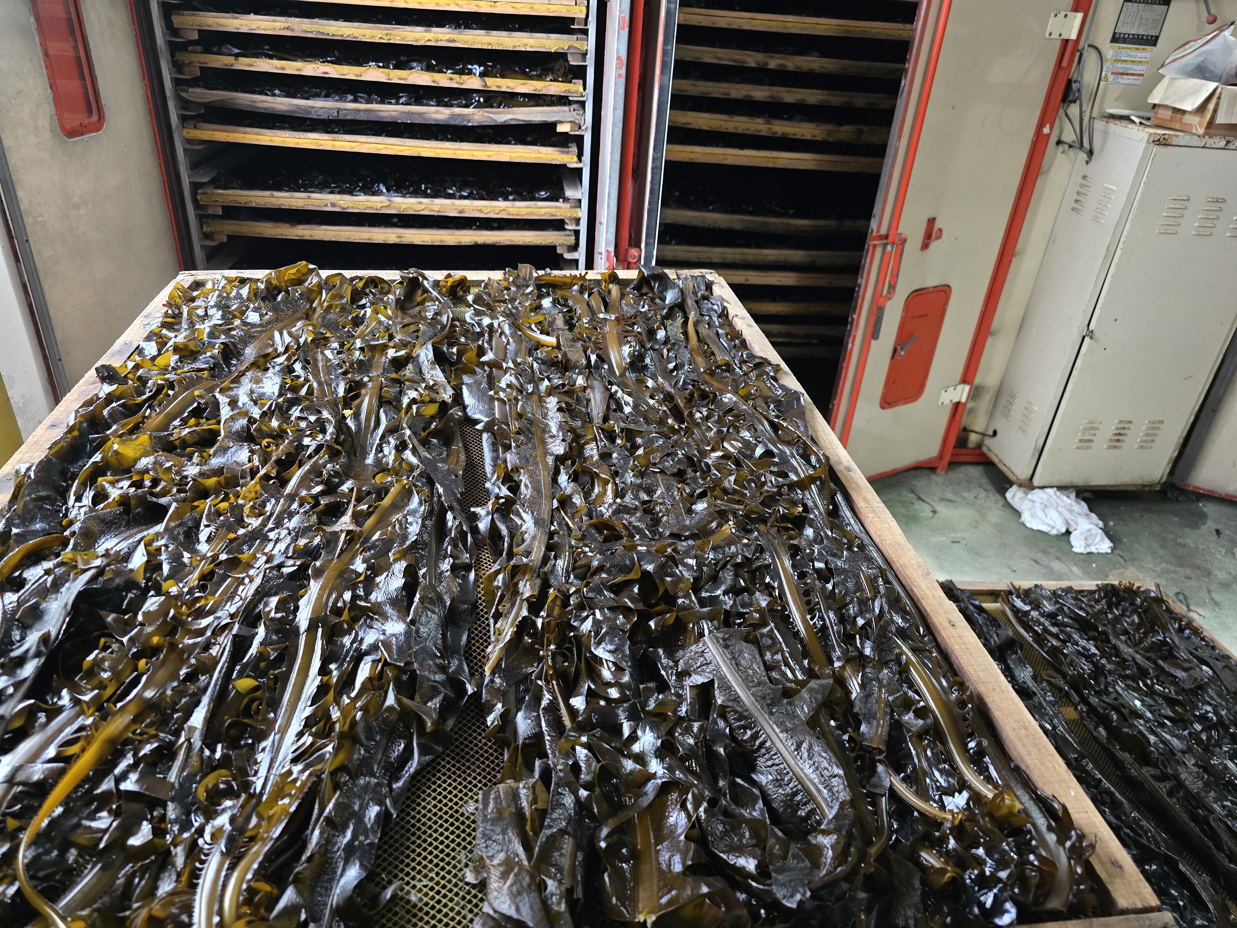 자연산 미역를 건조하기 위한 주민들의 공동작업
