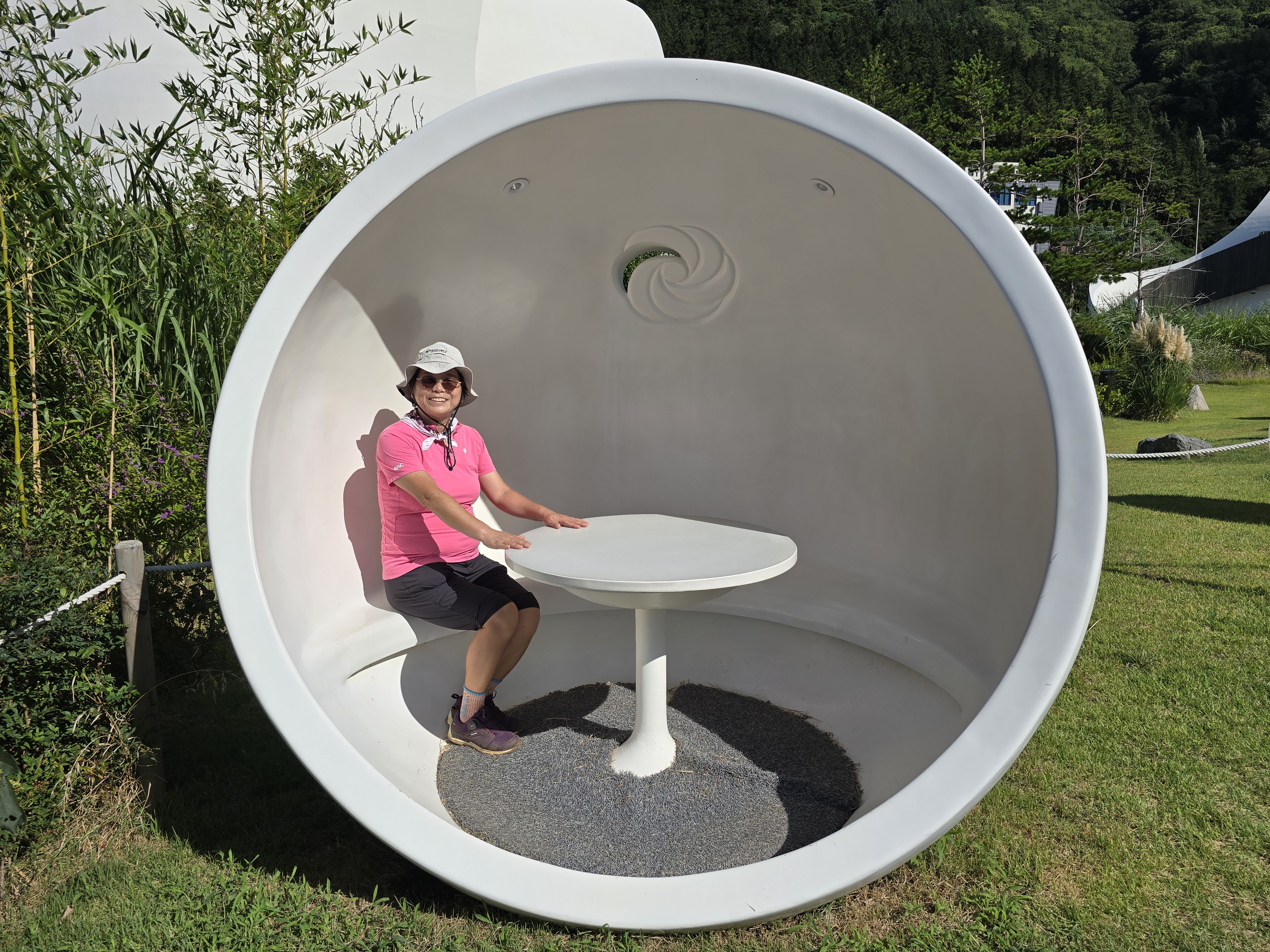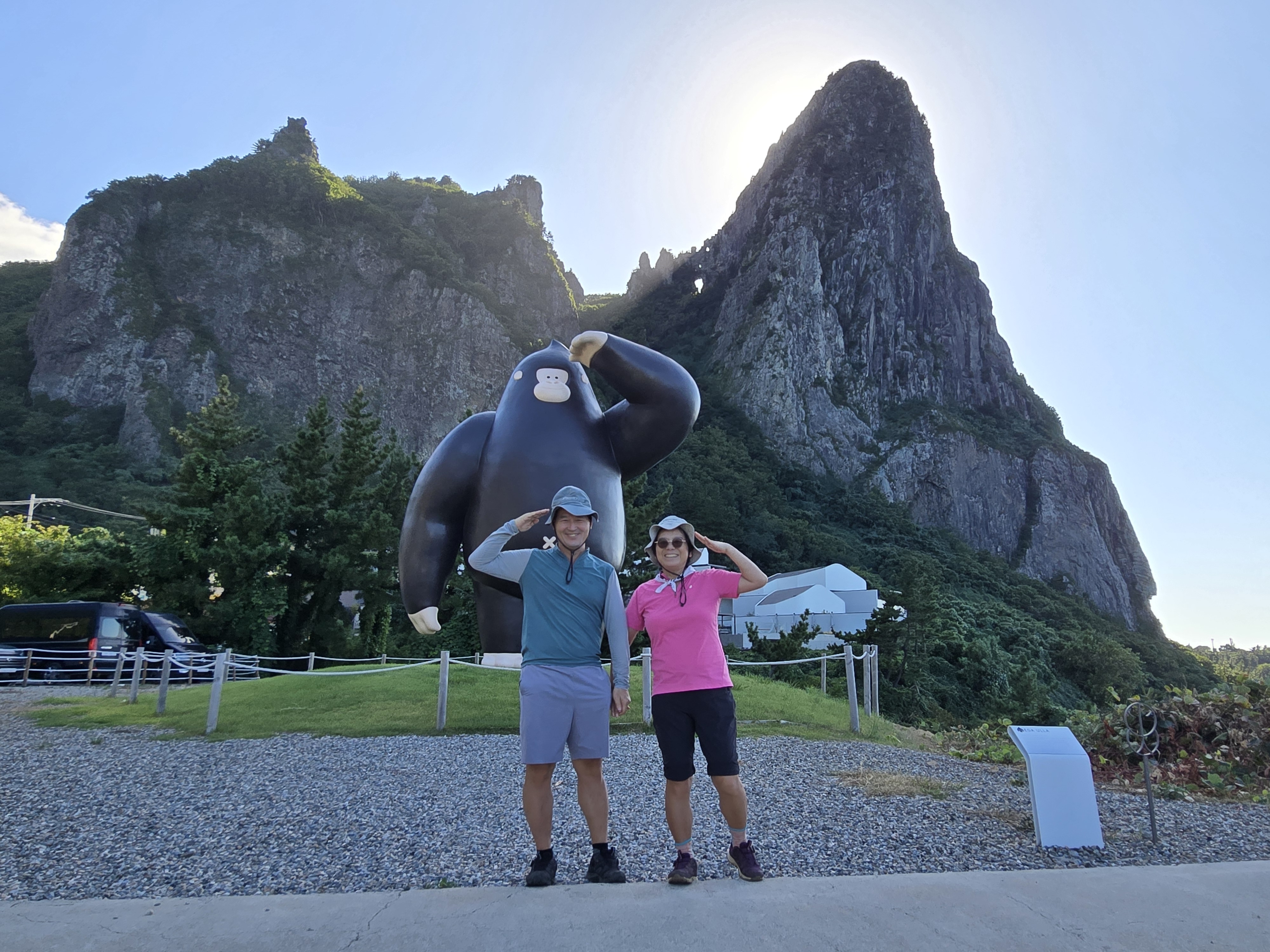 도동에서 등산하여 성인봉 깃대봉을 지나 울릉천국에 도착하여 가수 이장희 동상에서 기념촬영