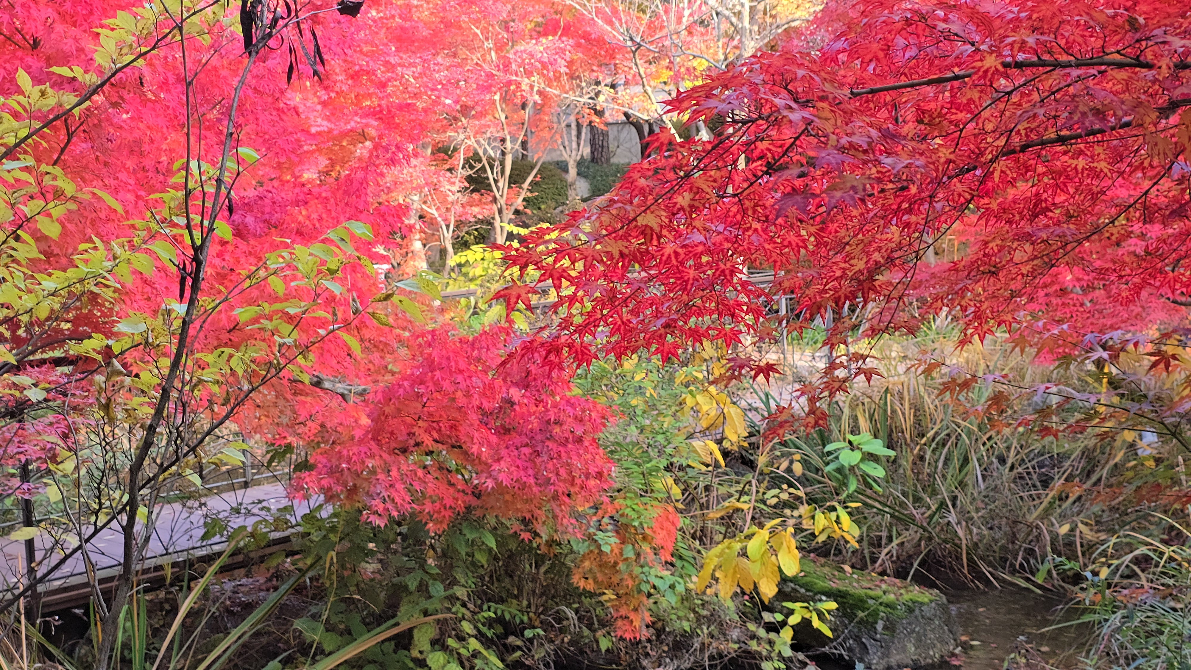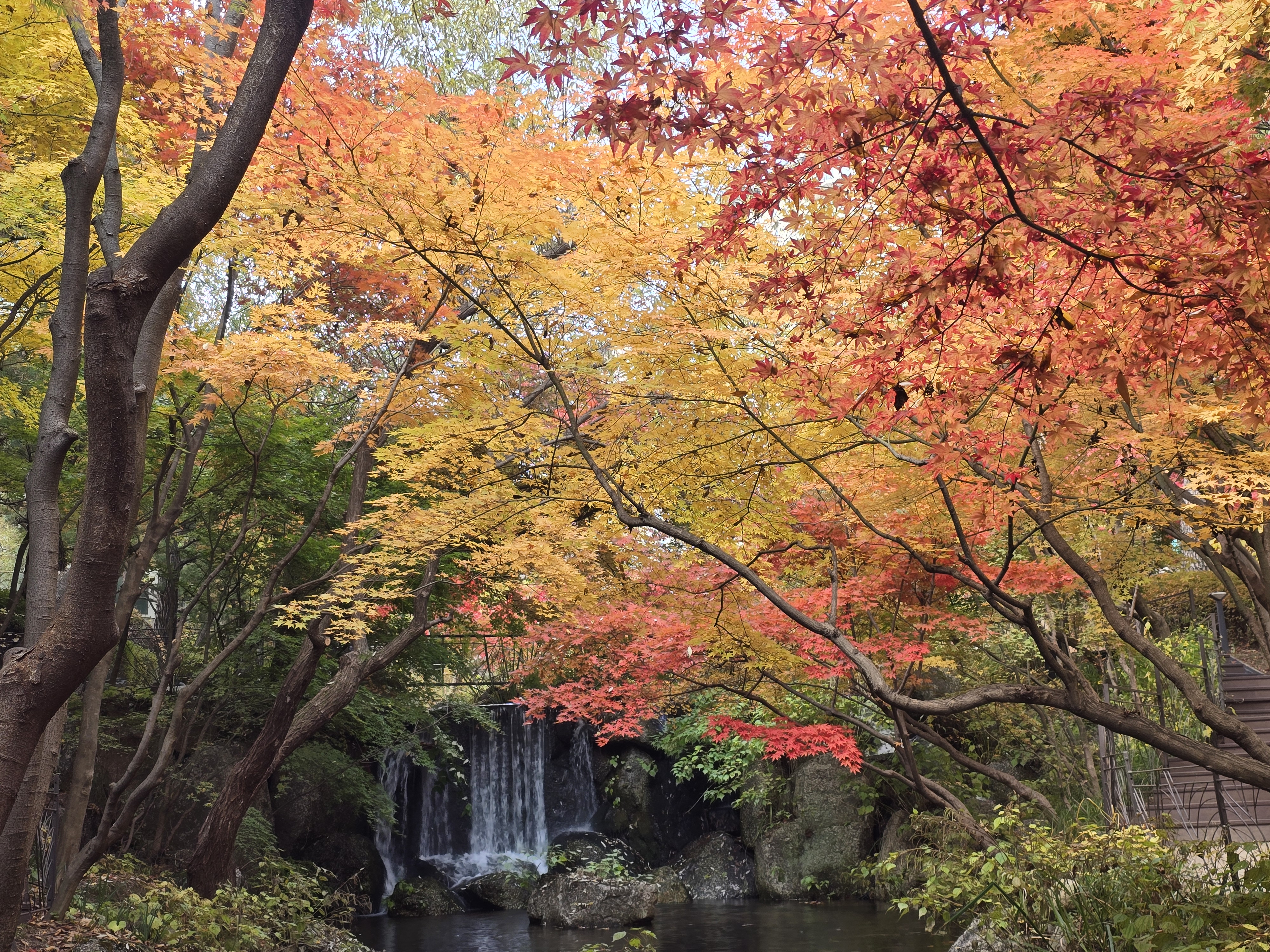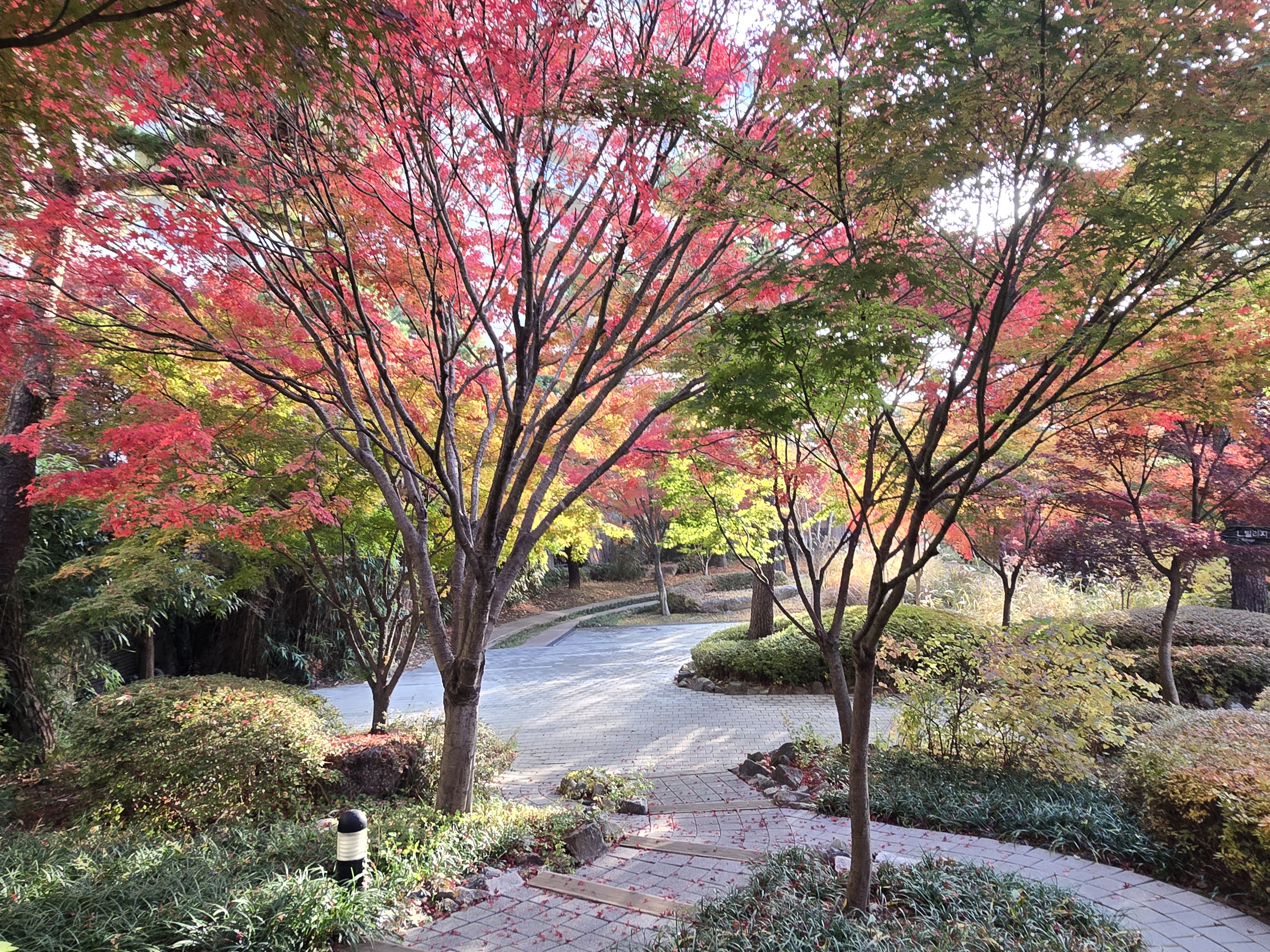 화담숲을 구경하고 하루 숙박한 곤지암 리조트도 단풍 명소였다. 곤지암 리조트 주변이 온통 단풍나무로 둘러싸여 있어 빨갛게 물든 단풍 잎으로 가을은 절정에 이르고 있었다. 리조트 안에 있는 생태 하천은 화담숲의 축소판이라 불려도 될 정도로 아기자기하게 잘 가꾸어진 단풍명소였다. 흐르는 물과 함께 붉게 물든 단풍은 조화를 잘 이루고 있었다. 생태하천의 산책만으로도 절로 힐링이 되는 시간이었다.