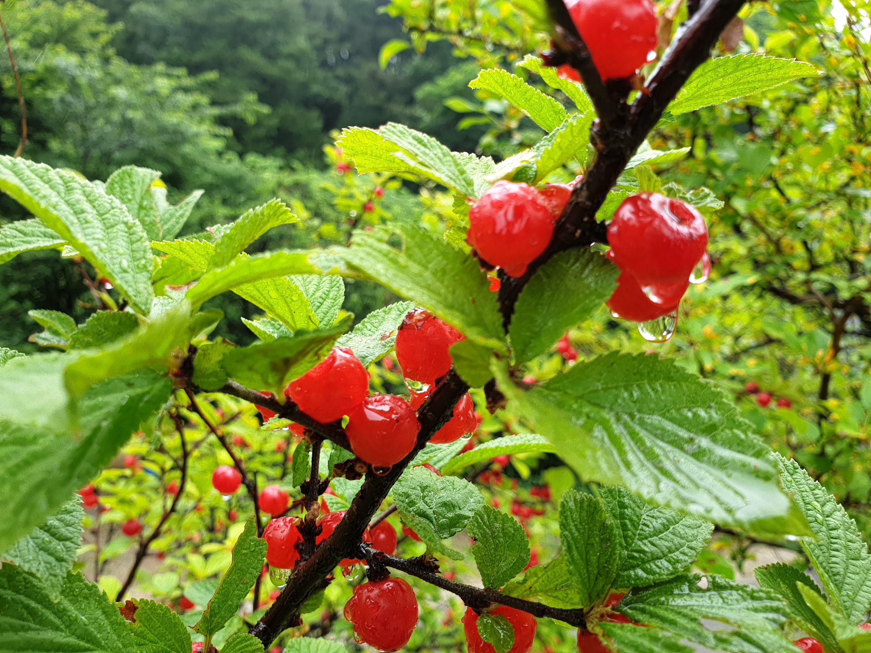 금정산성가는 길 산성마을의 허브랑야생화의 비오는 날 풍경