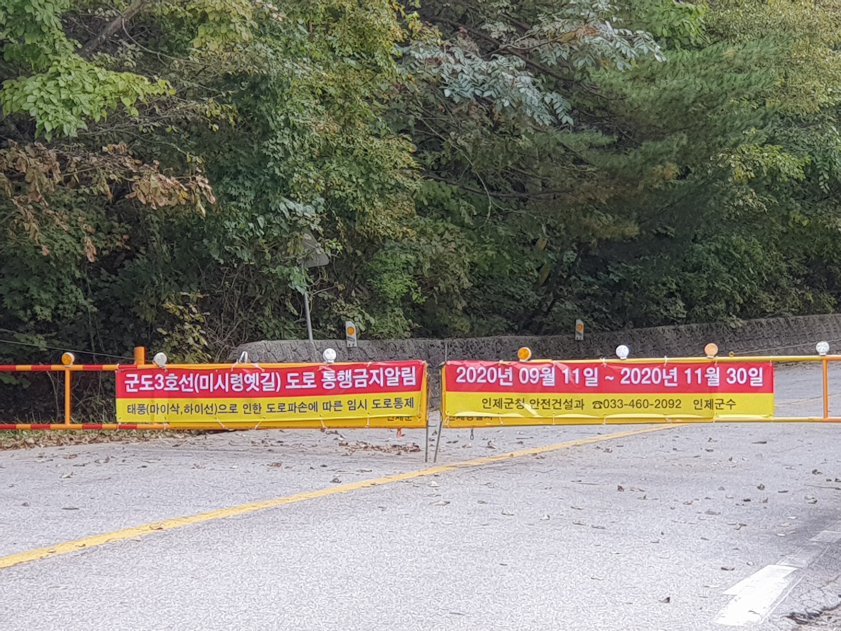 태풍피해로 교통통제되고 있는 미시령