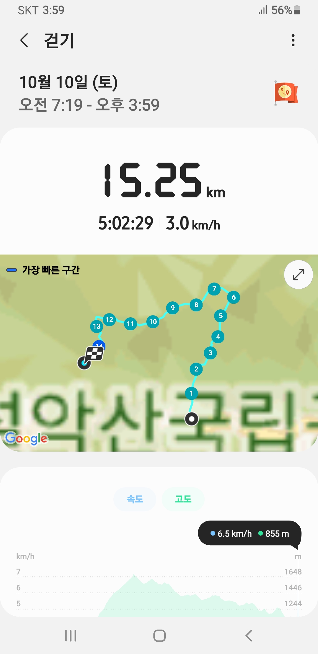 설악산단풍산행 오색입구-설악폭포-대청봉-중청대피소-끝청-한계삼거리-한계령에서 버스타고 오색으로 돌아왔다.