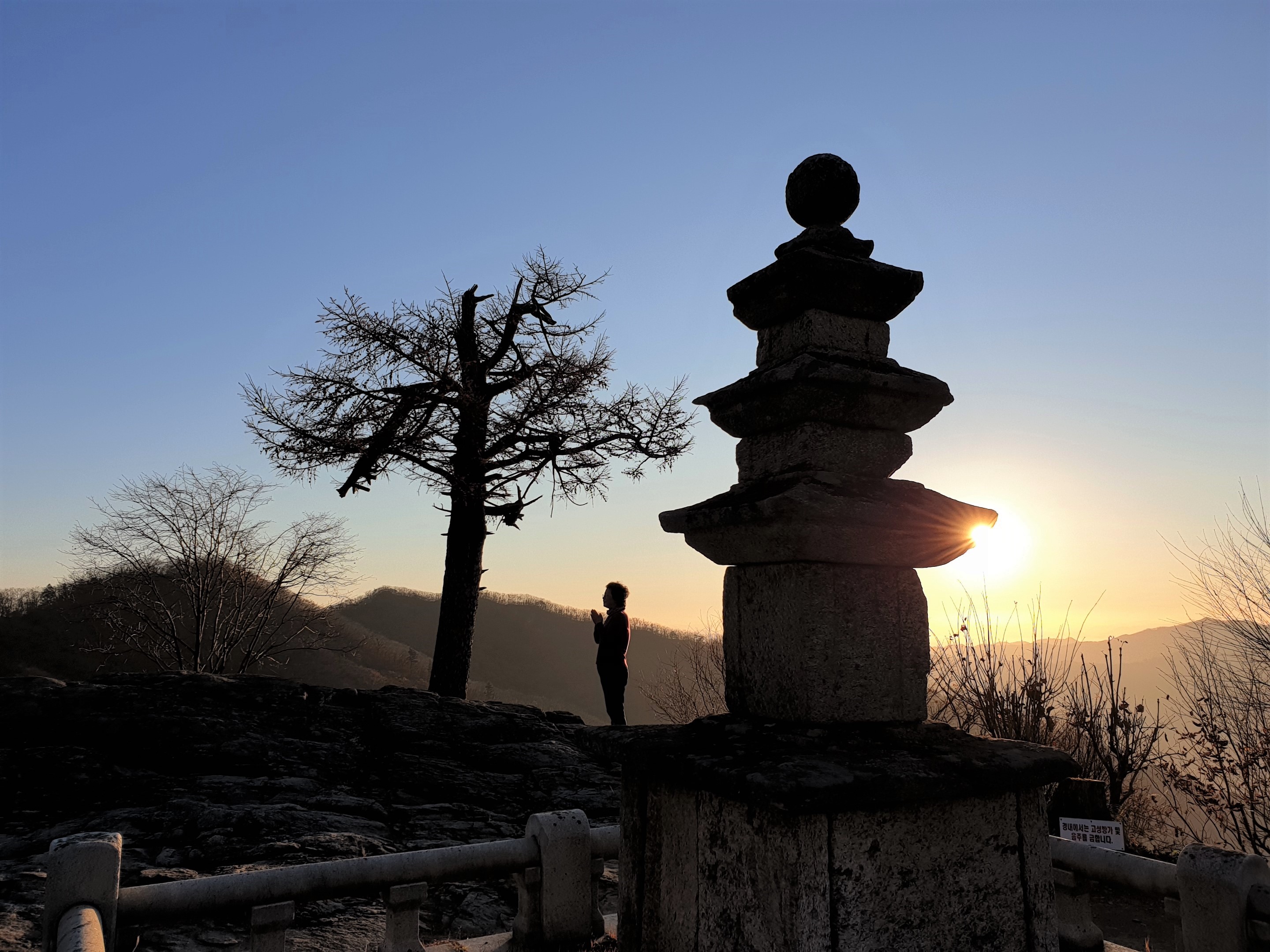 상원사 가는 길에 해가 뜨는 모습