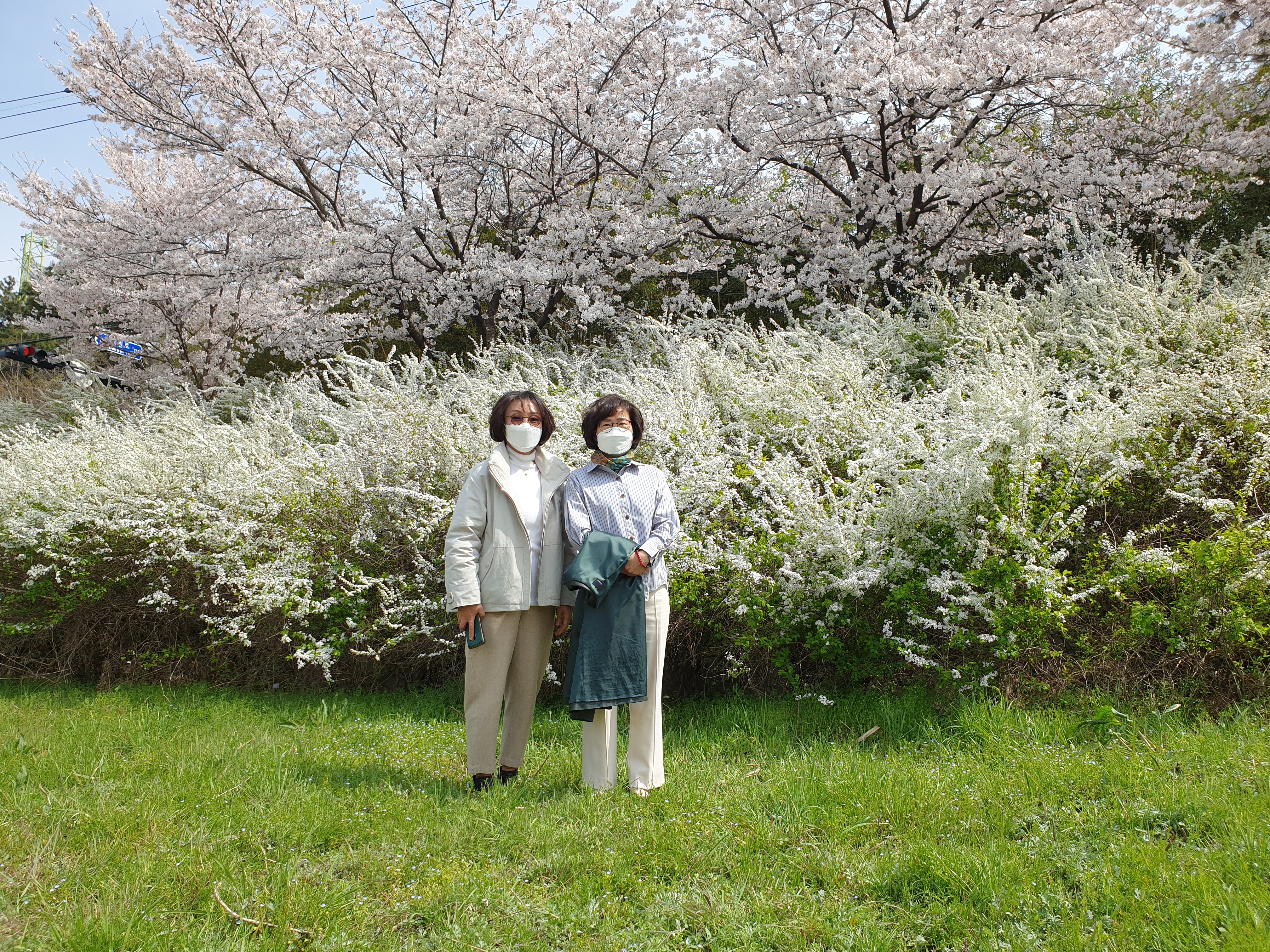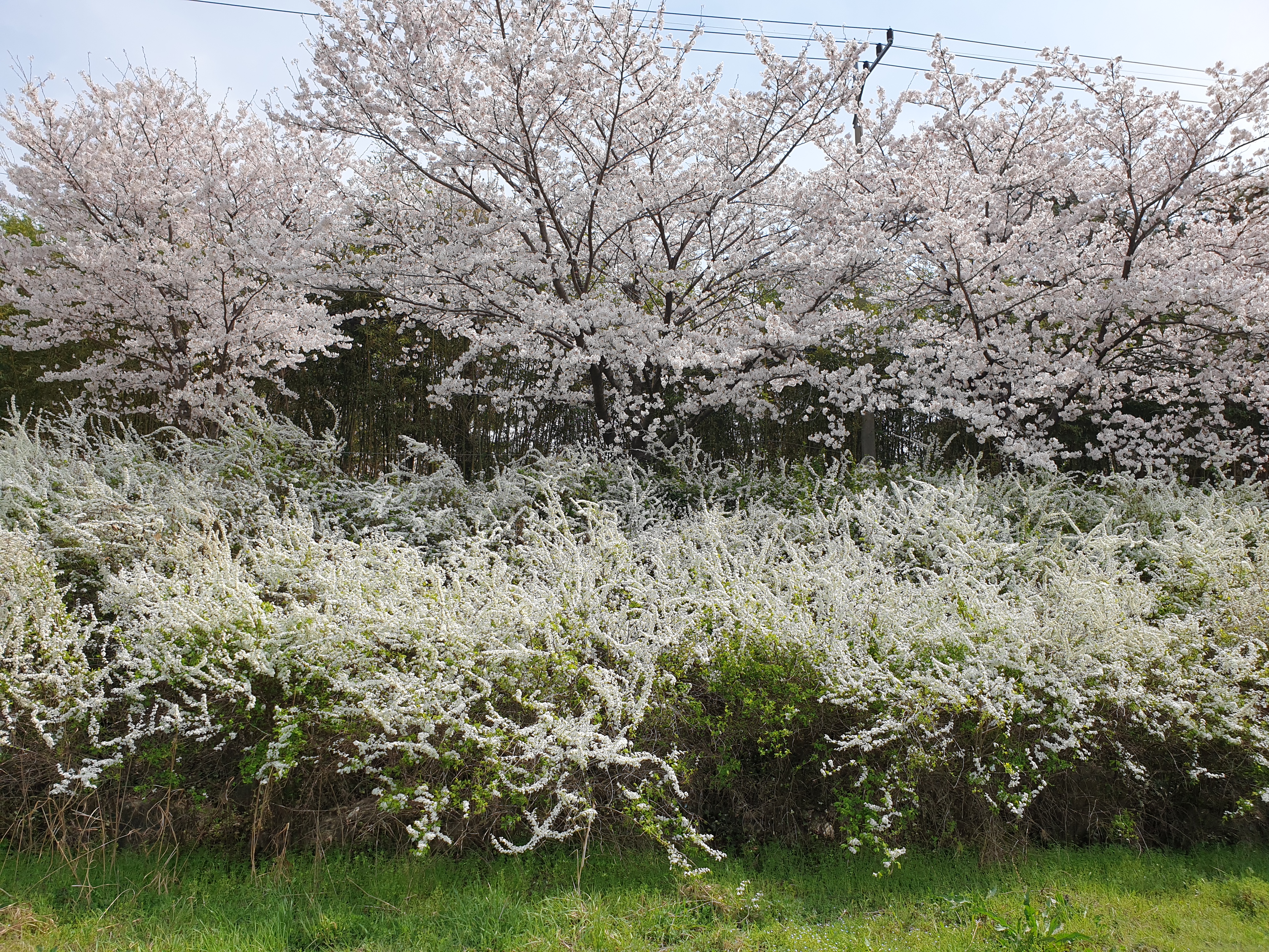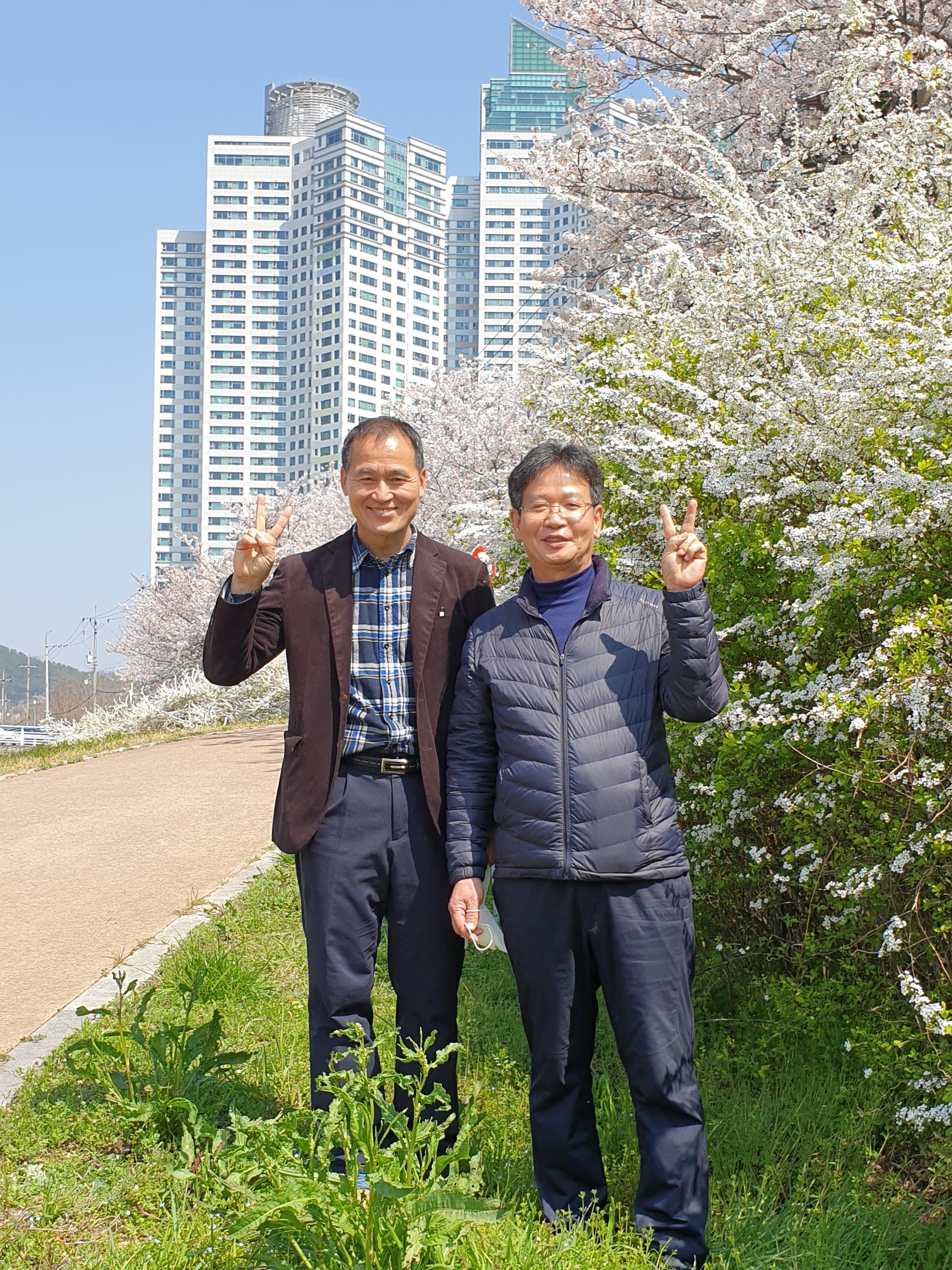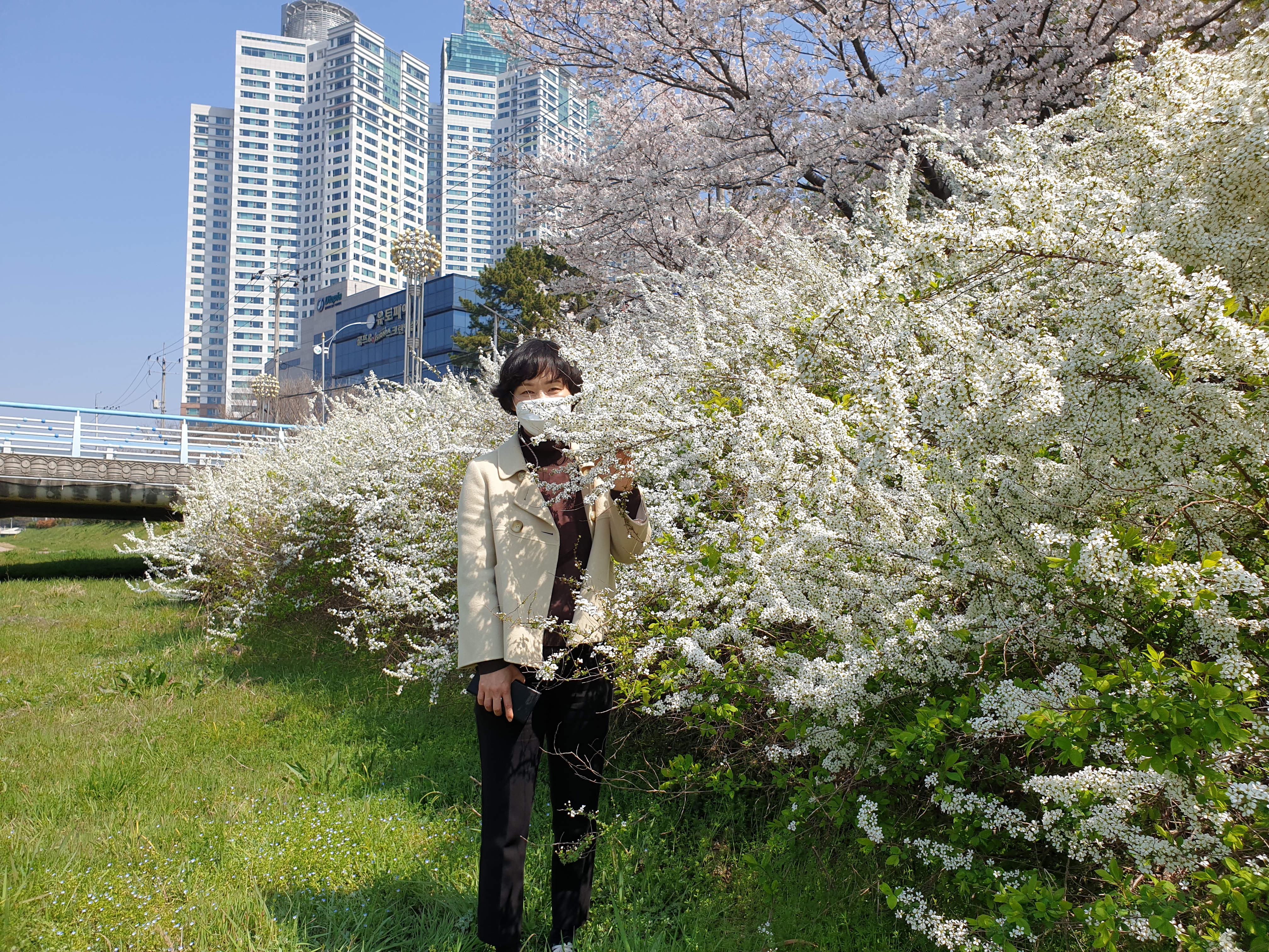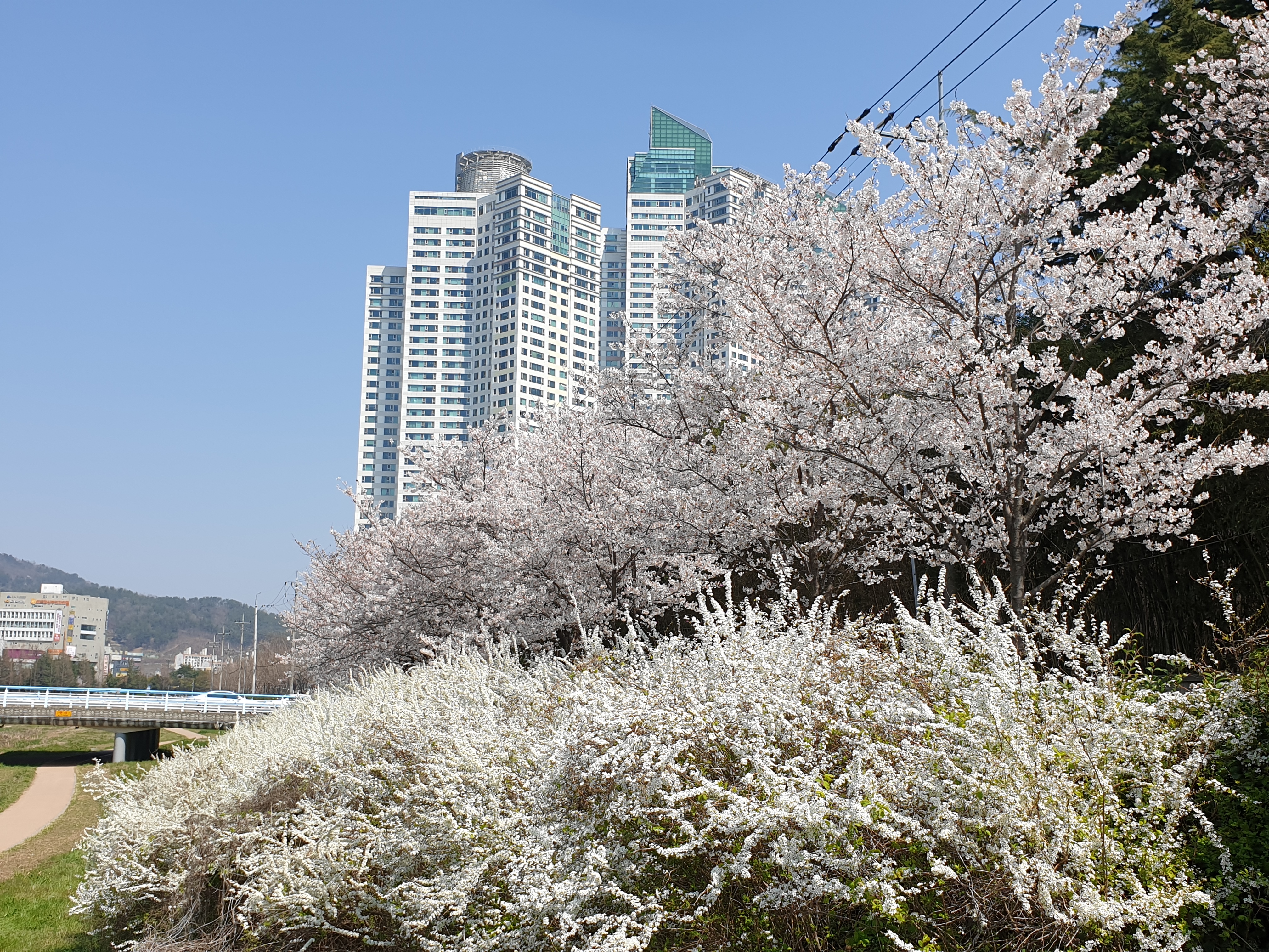 창원천의 벚꽃과 조팝나무꽃