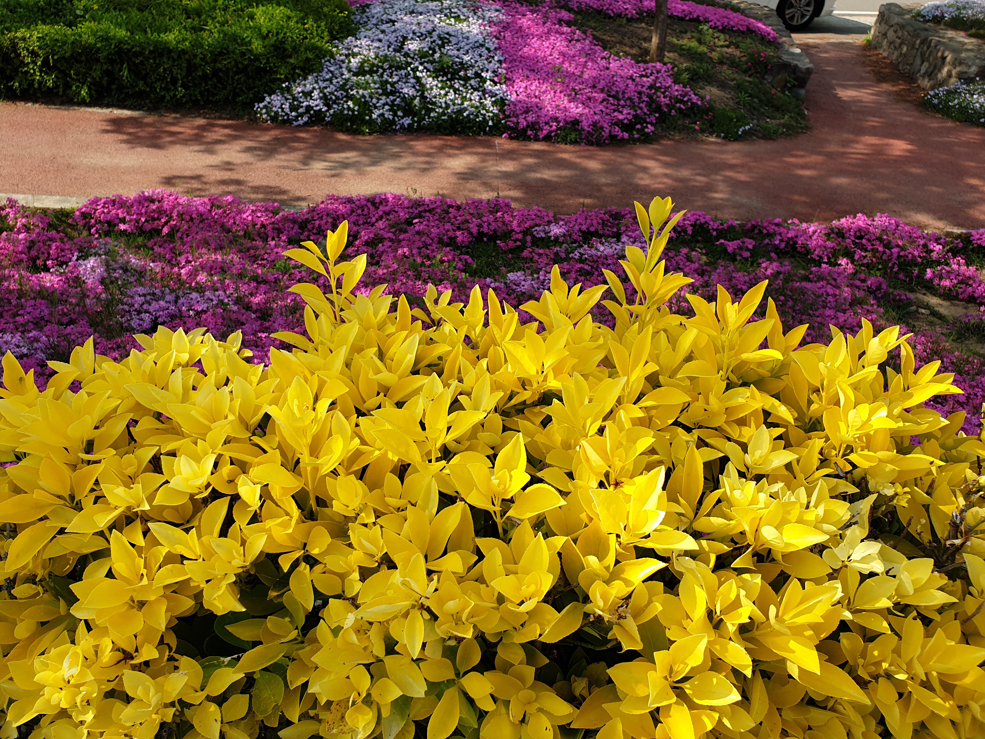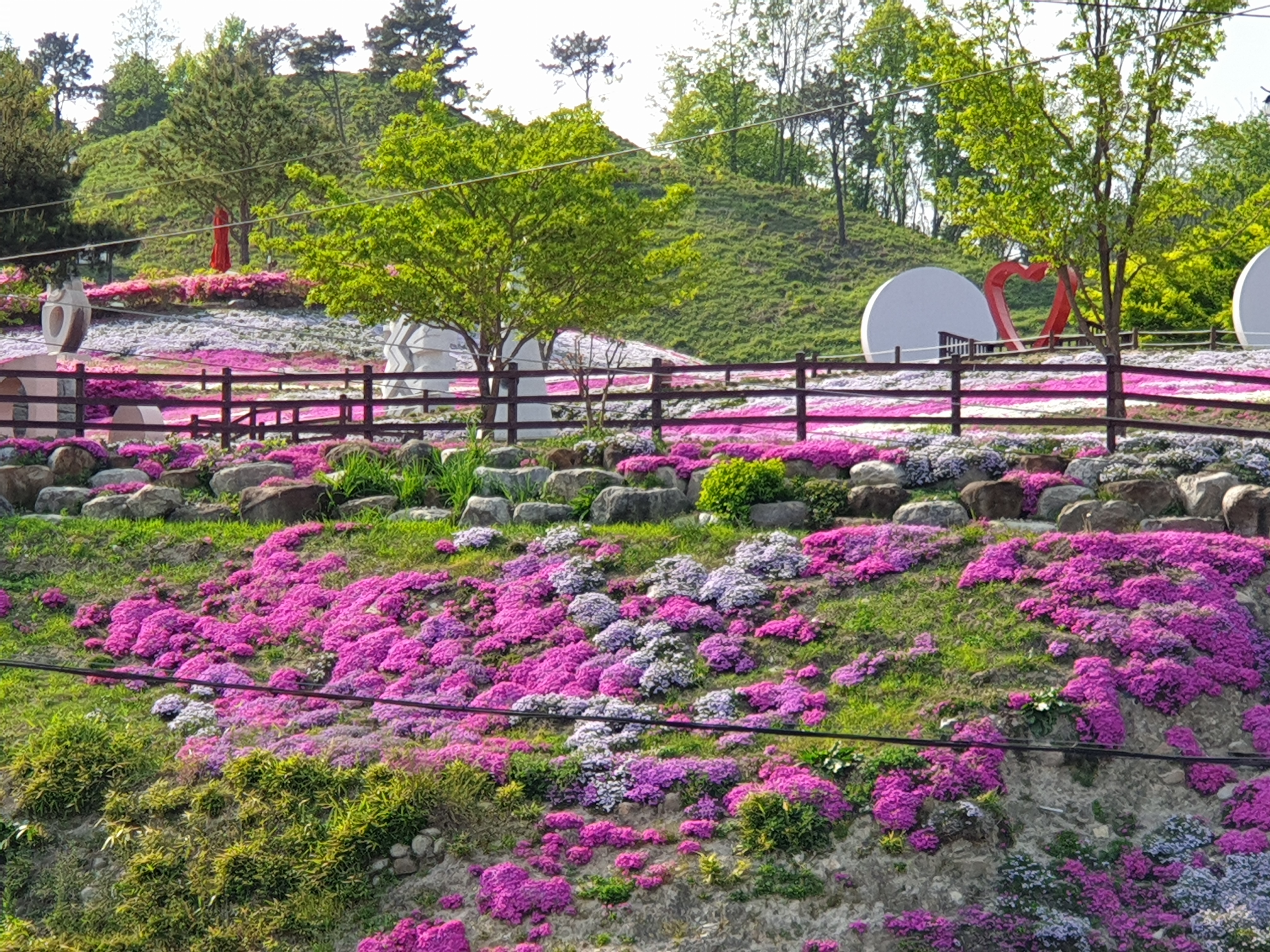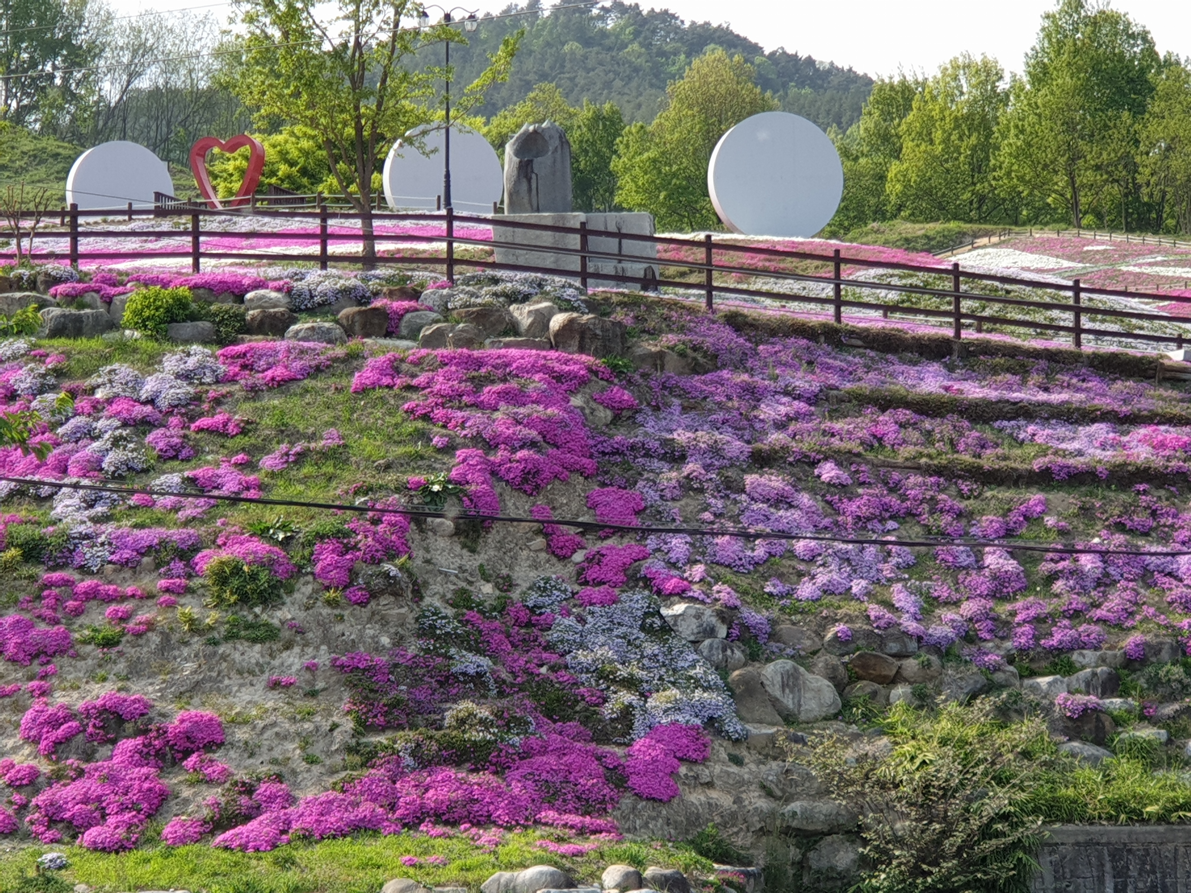 산청생초국제조각공원의 꽃잔디 코로나로 인하여 입장불가 경호강변에서 볼수있음