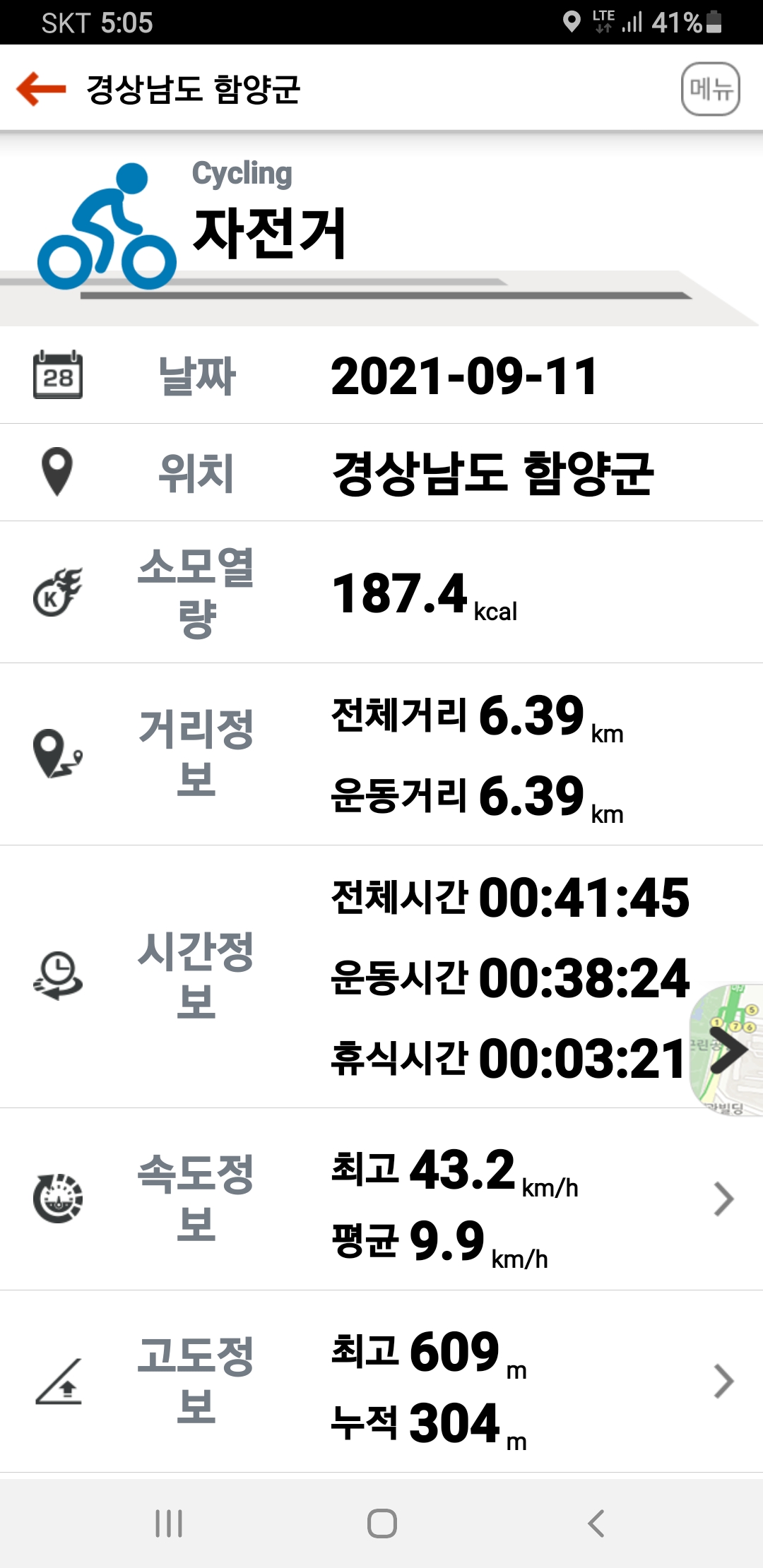 유동마을에서 태장골입구에 있는 차를 회수하기 위해타고간 자전거길