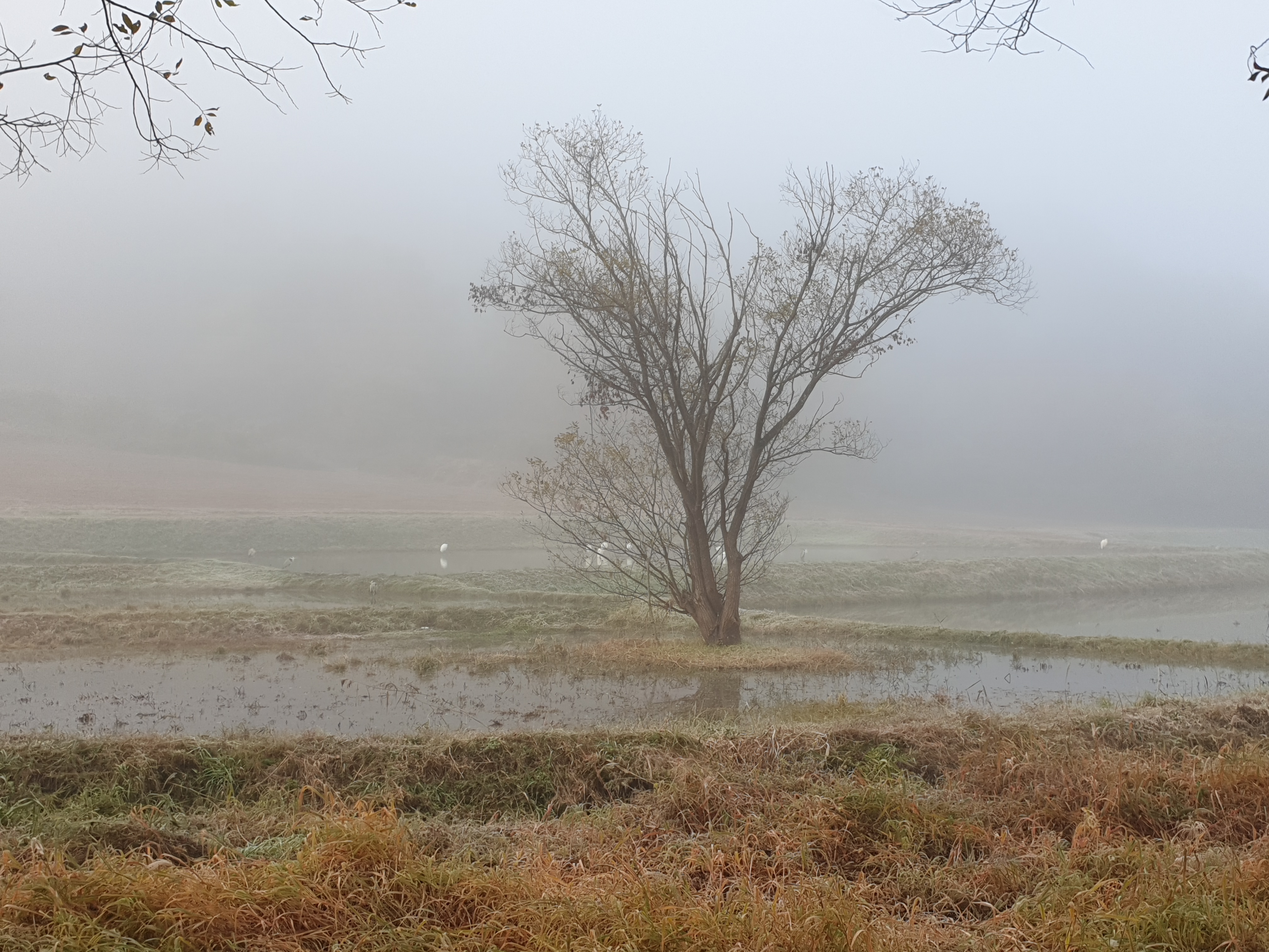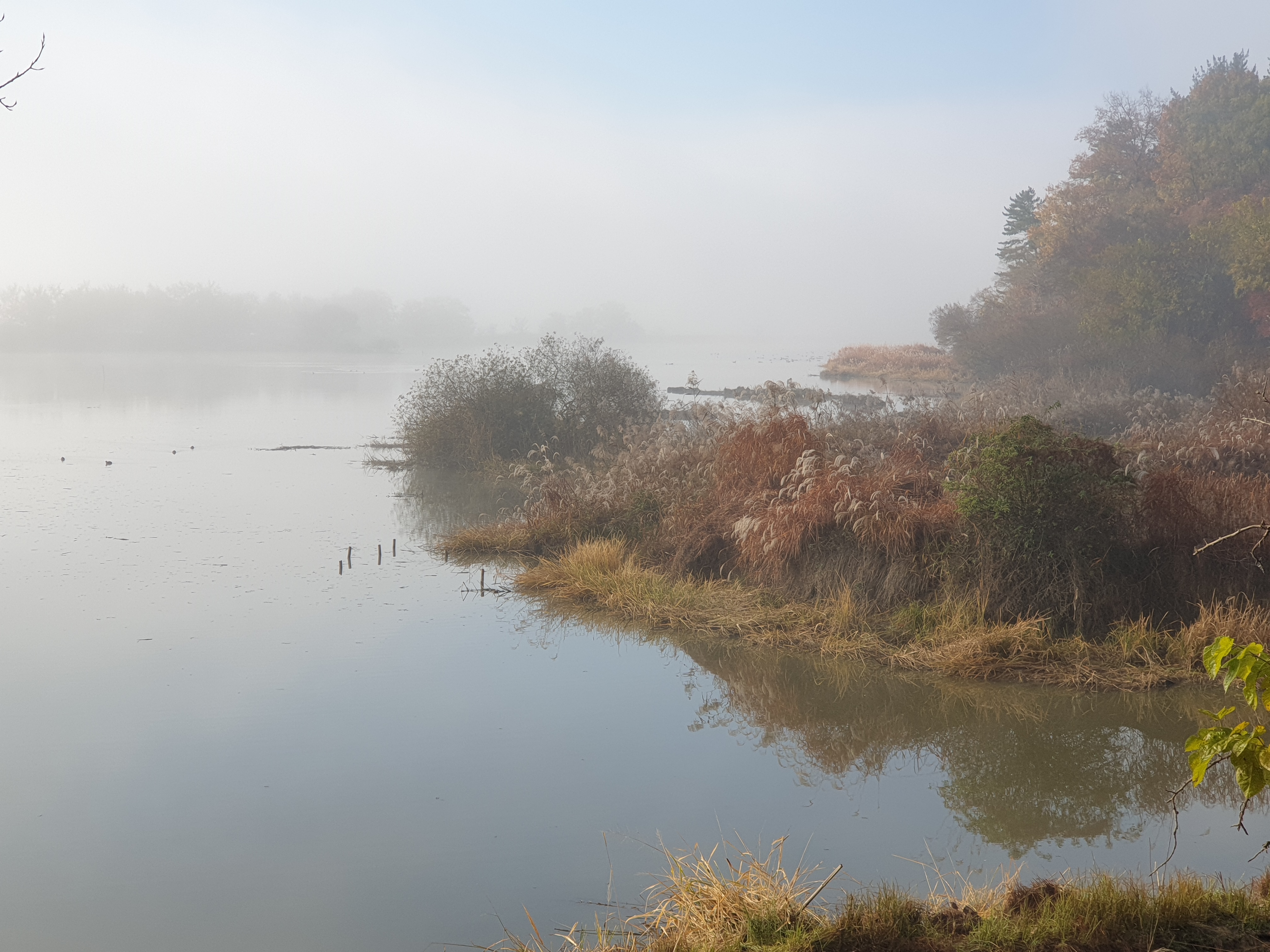안개낀 아침이라 산책로에 가까운 곳에서 새들을 관찰할 수 있다.
