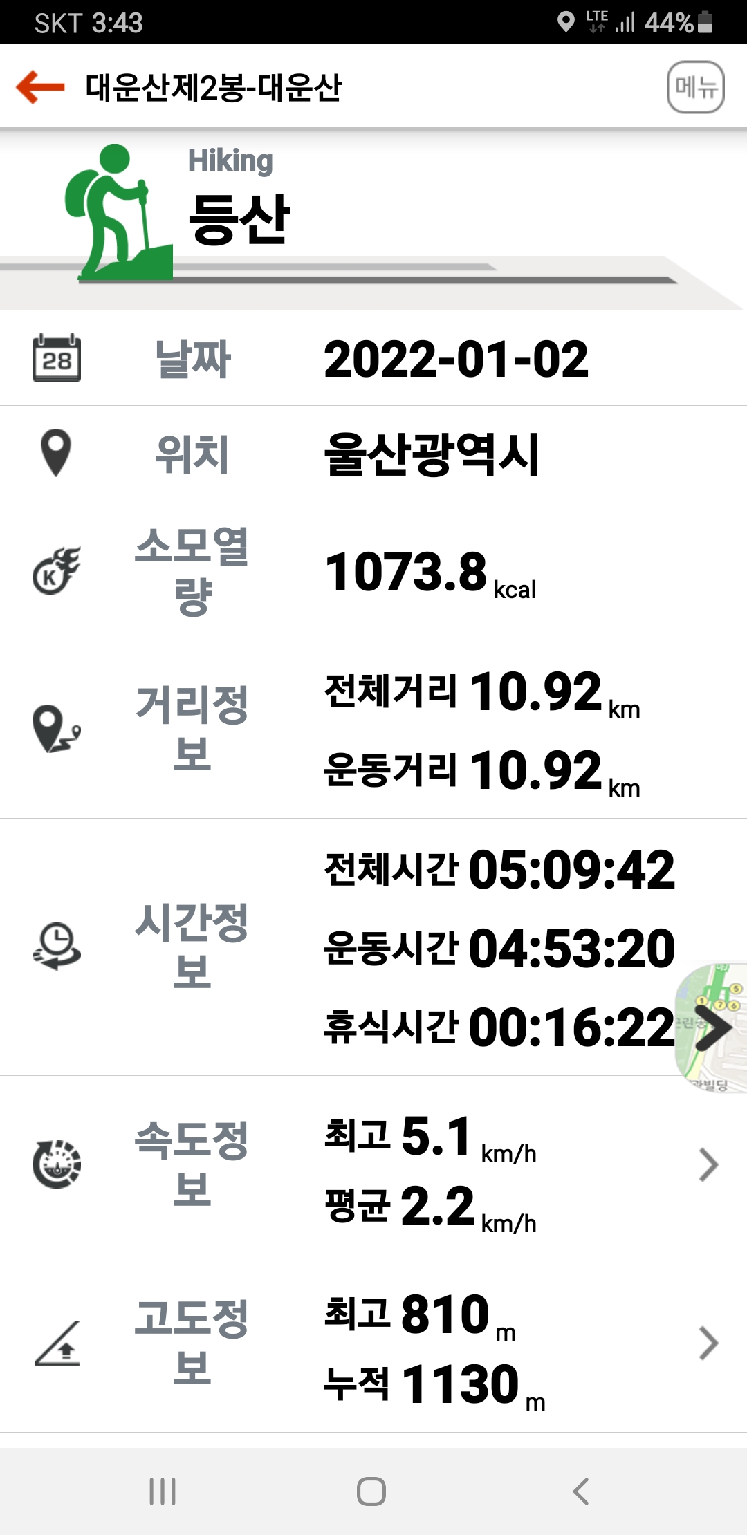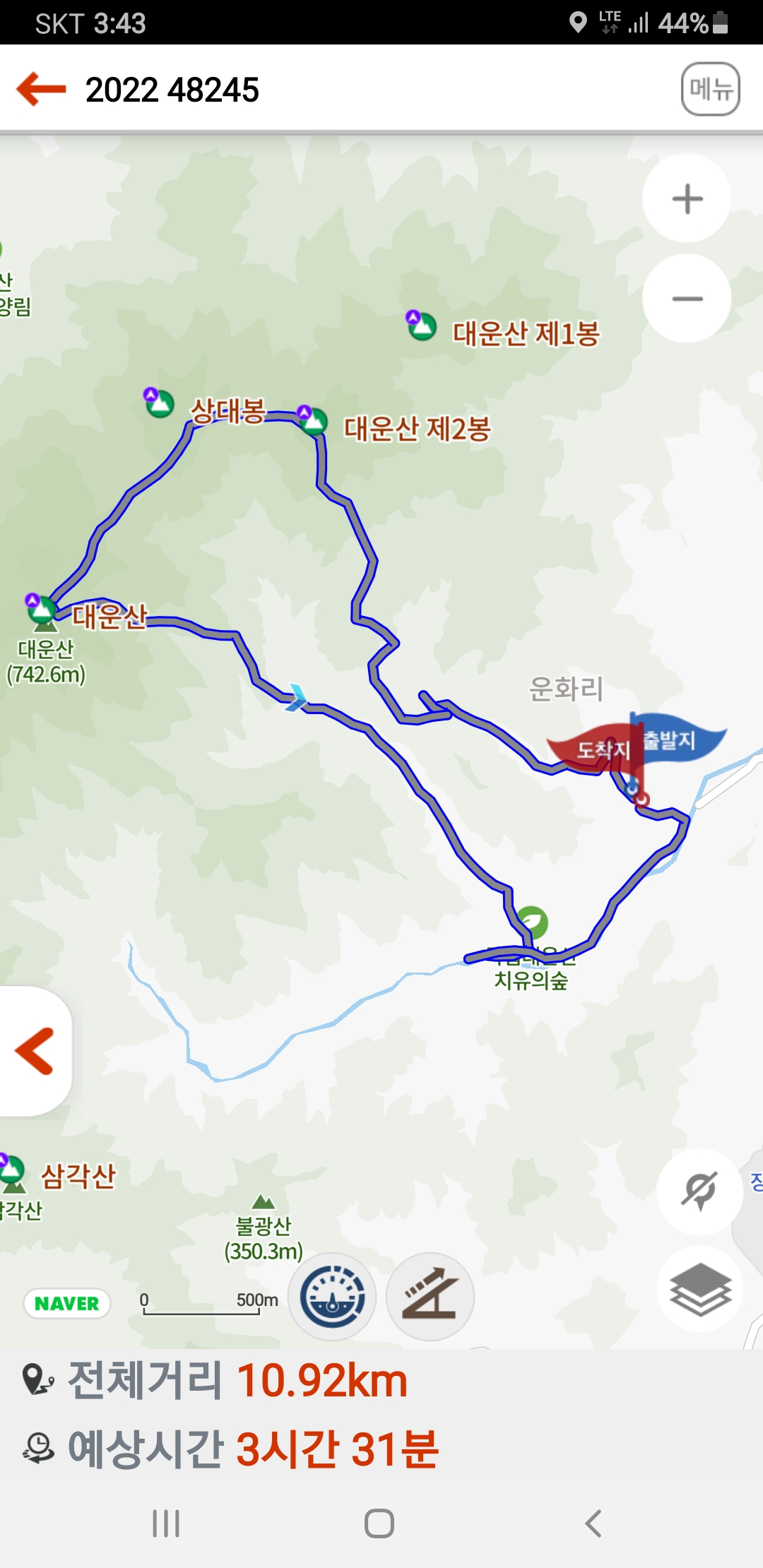 주차장-내원암-대운산2봉-대운산-국립대운산치유의숲-주차장 원점회귀
