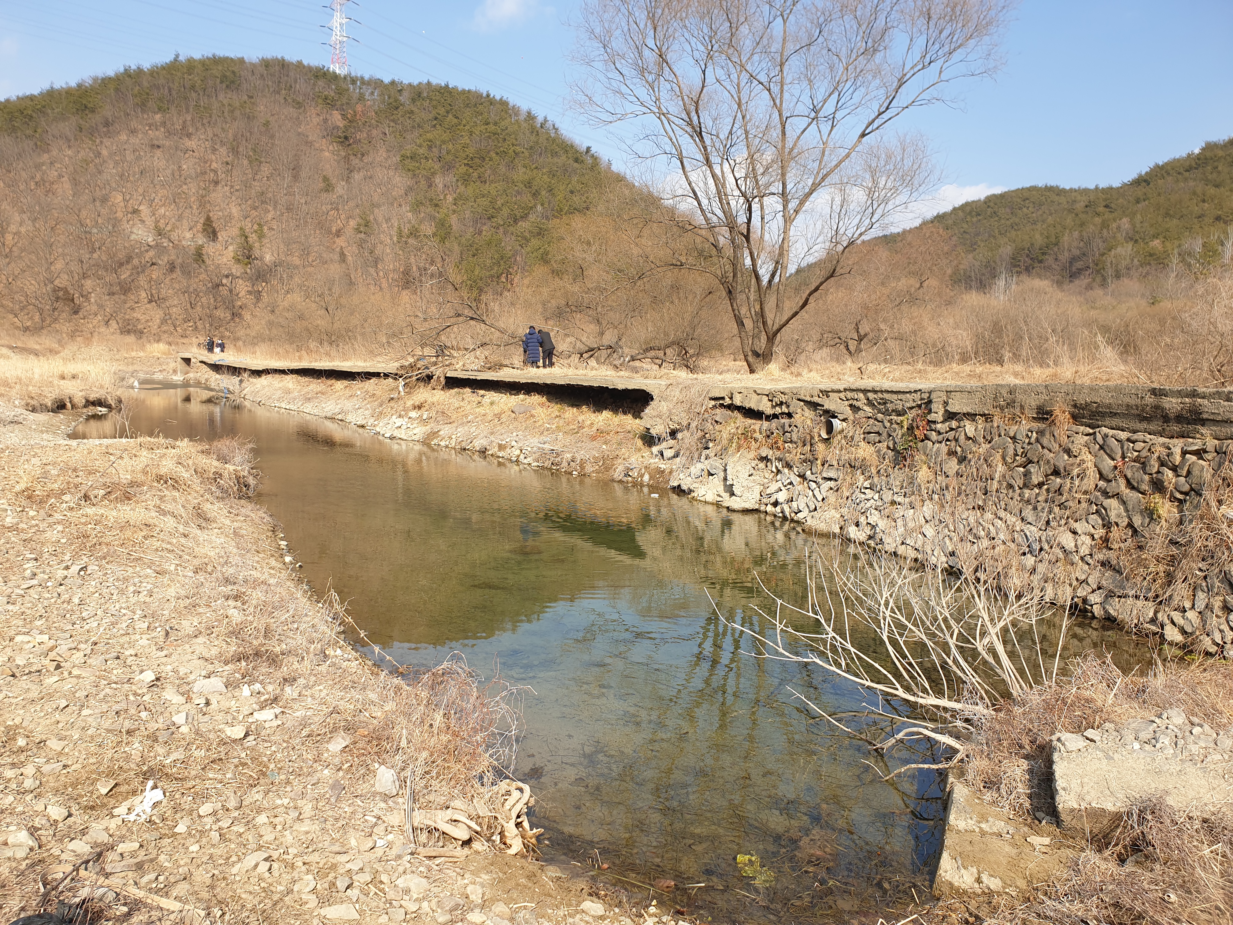 계속된 가뭄으로 바닥을 들어낸 대곡댐상류