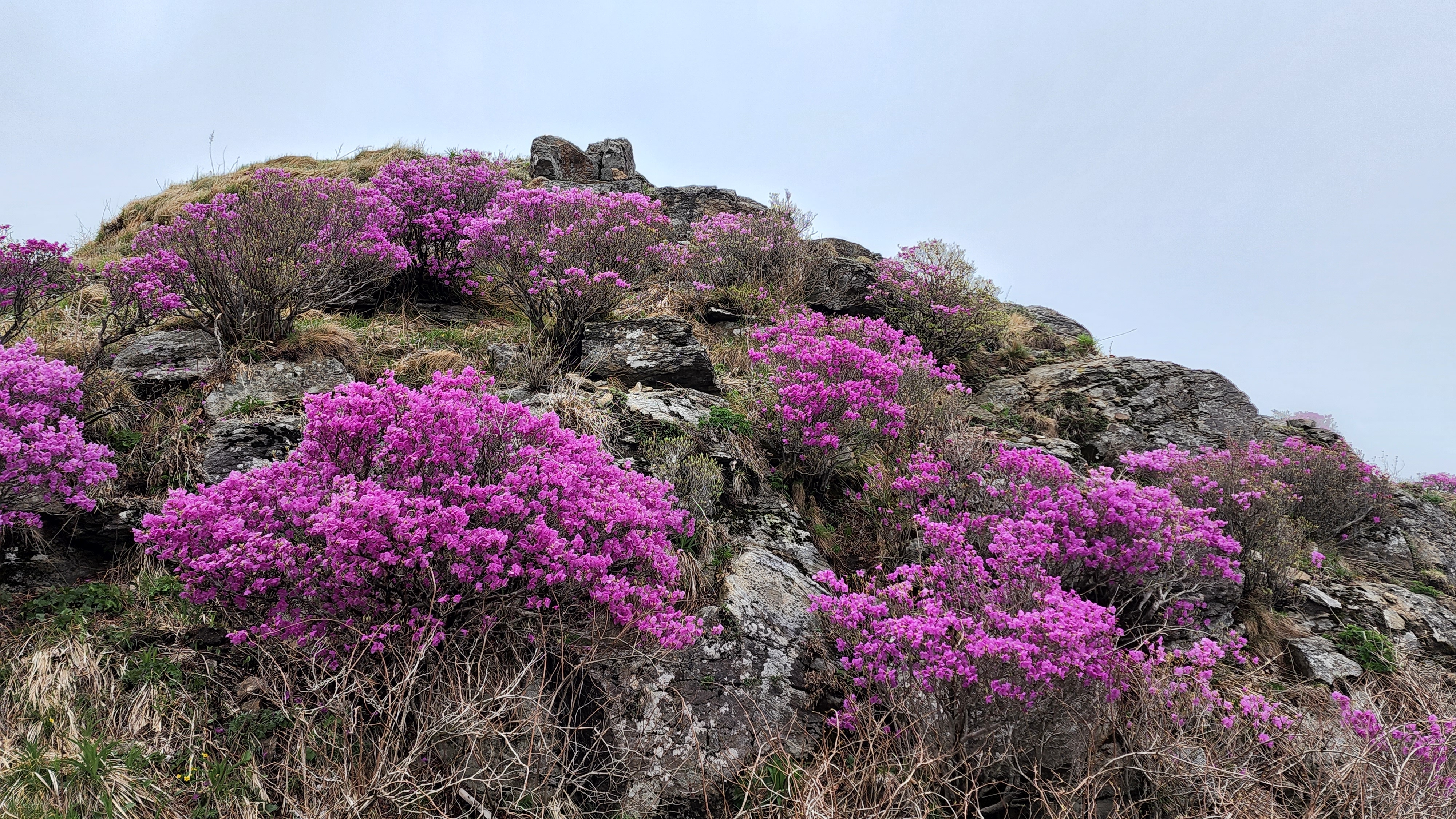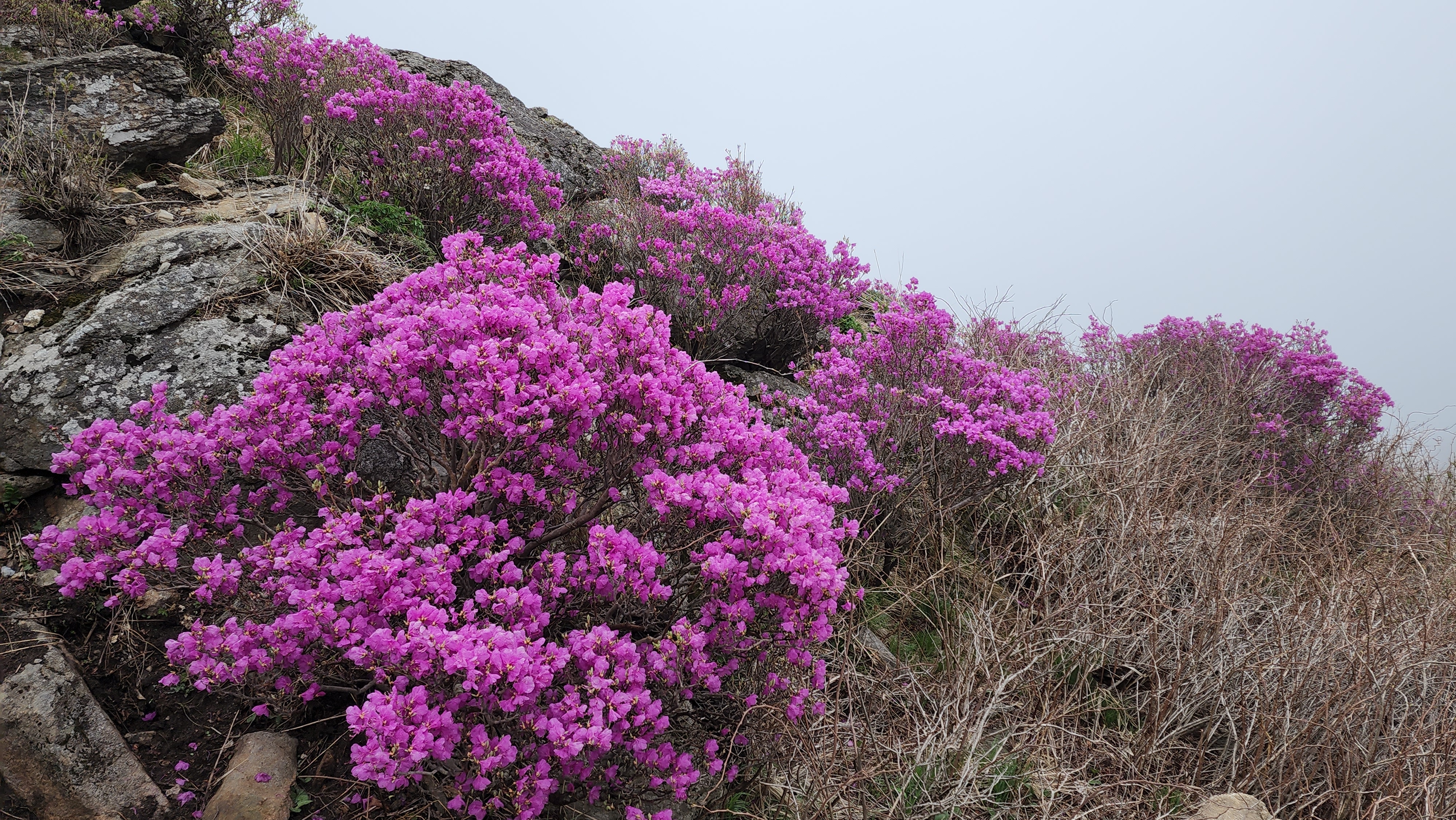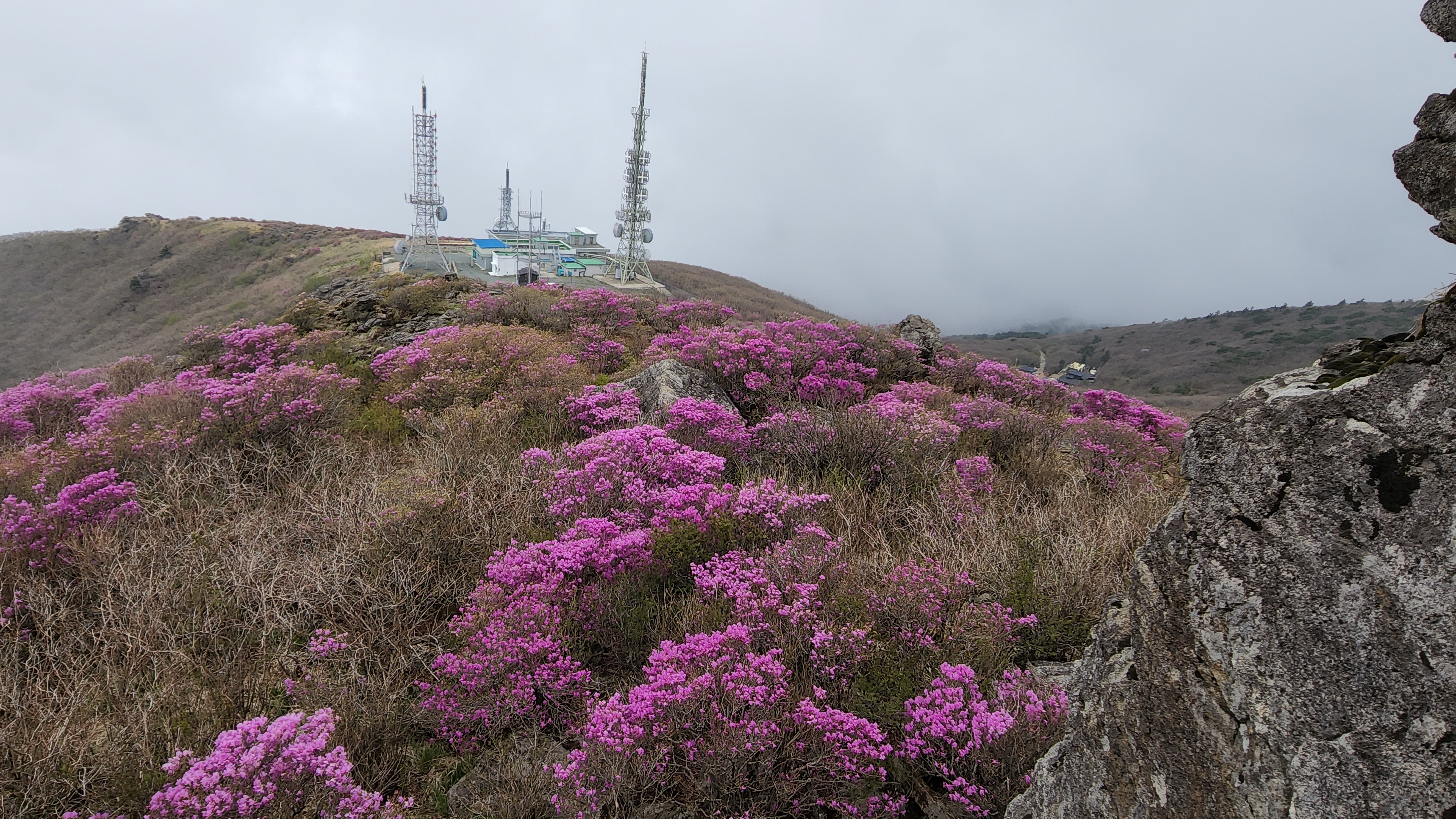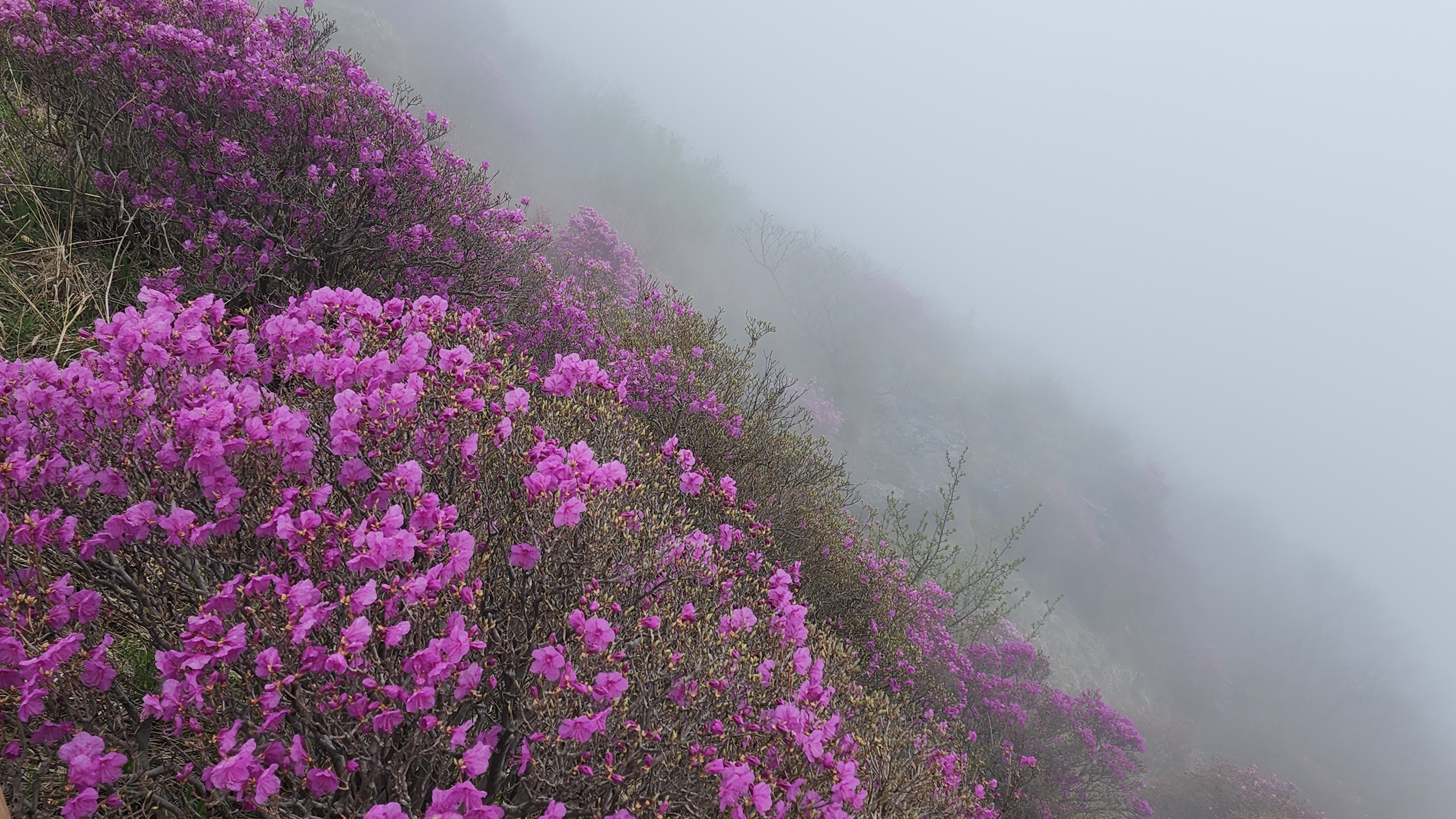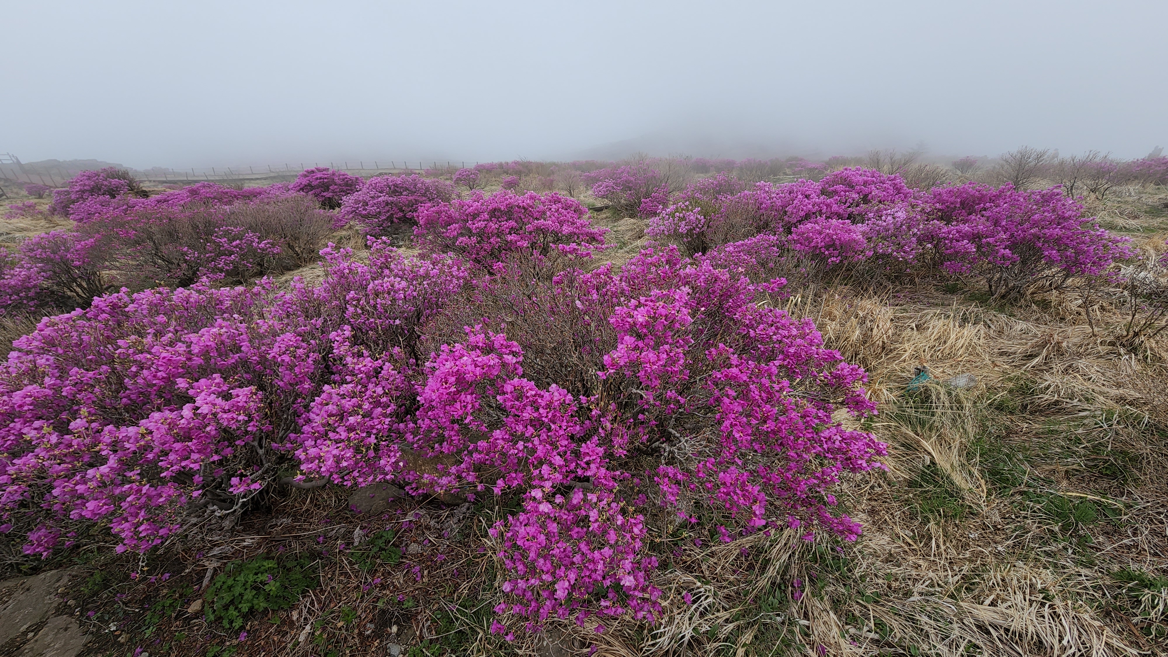 안개가 자욱한 노고단의 진달래
