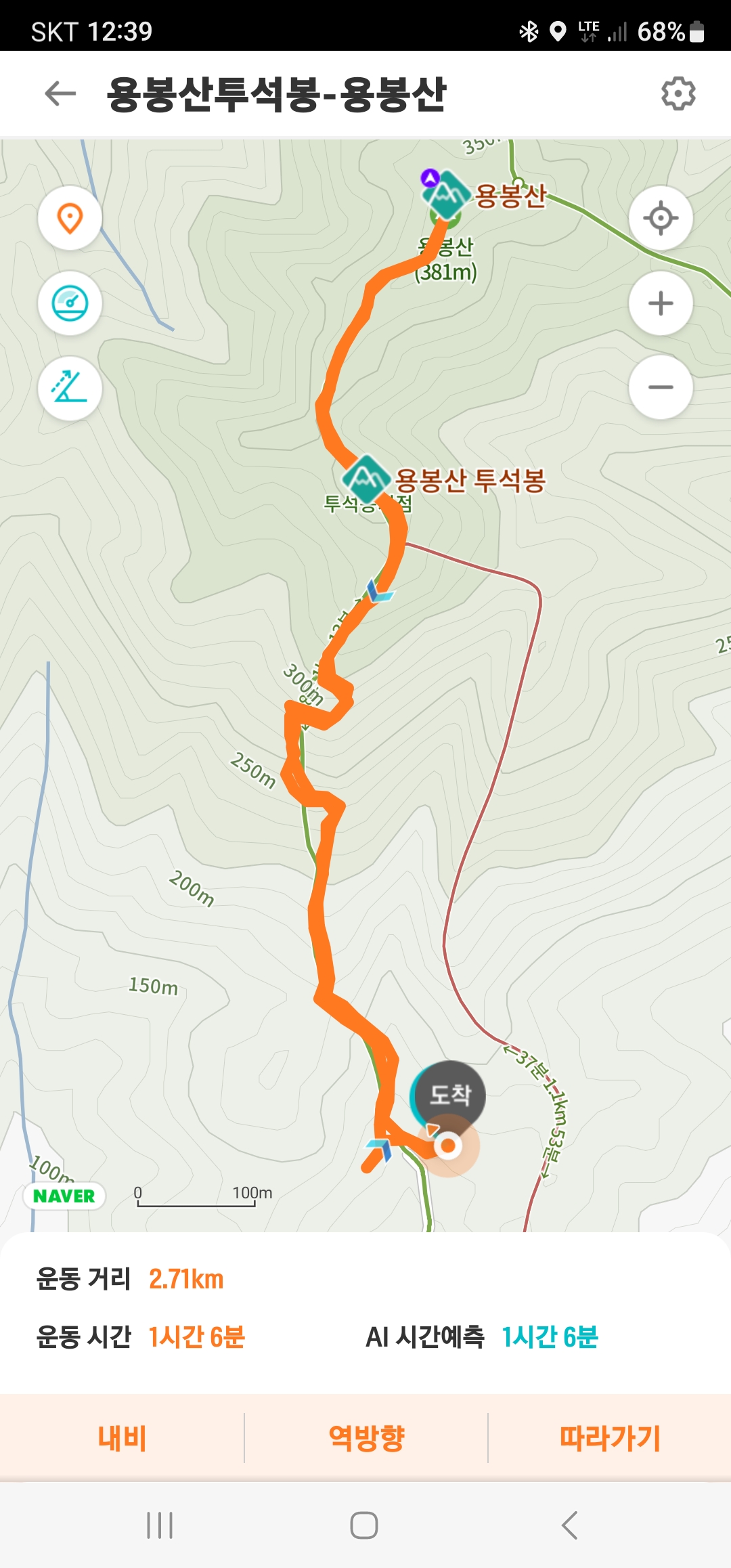 용봉산최단코스 트랭글기록 왕복거리 2.7m 1시간 6분