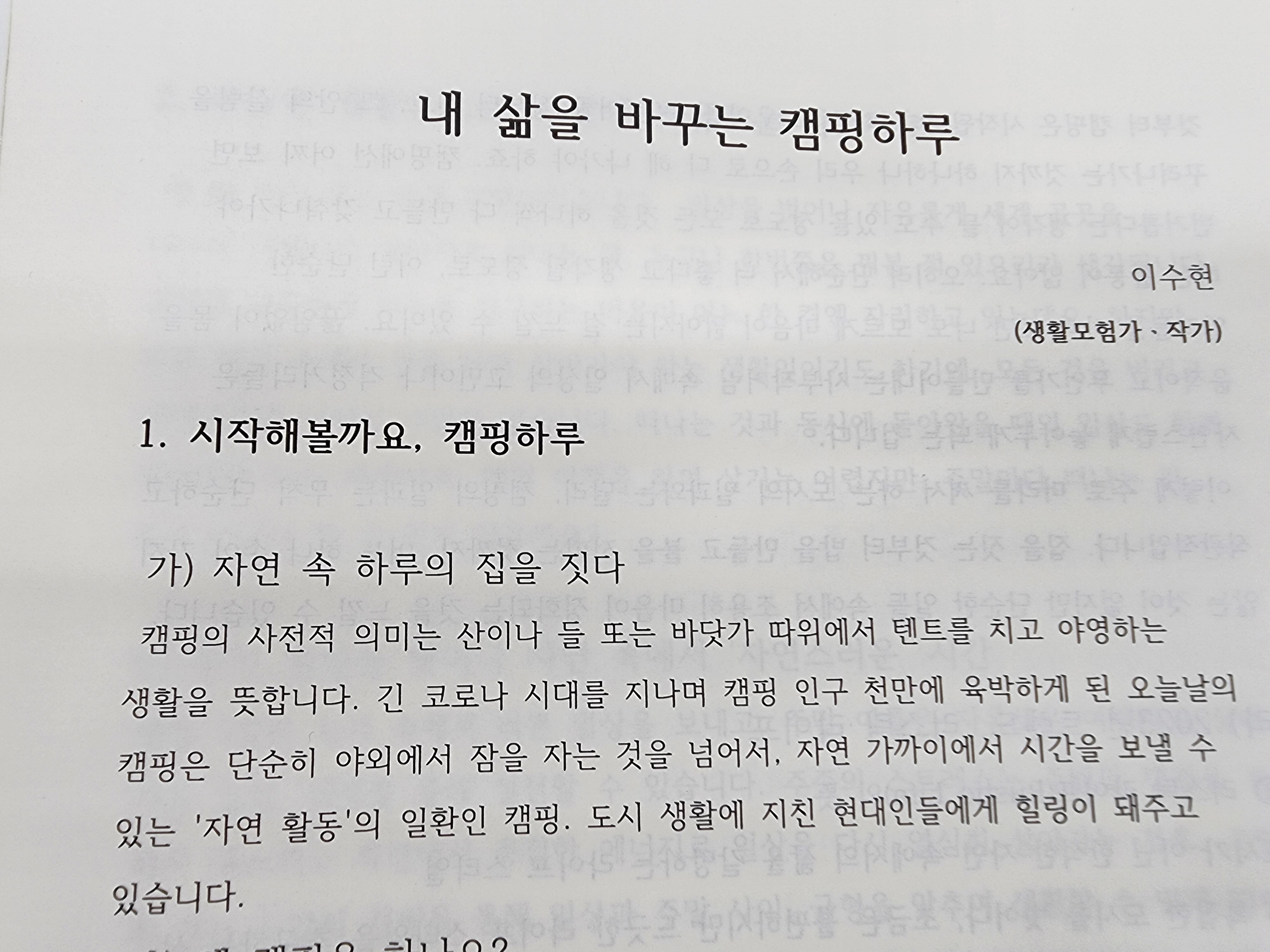 내 삶을 바꾸는 캠핑하루 직무연수