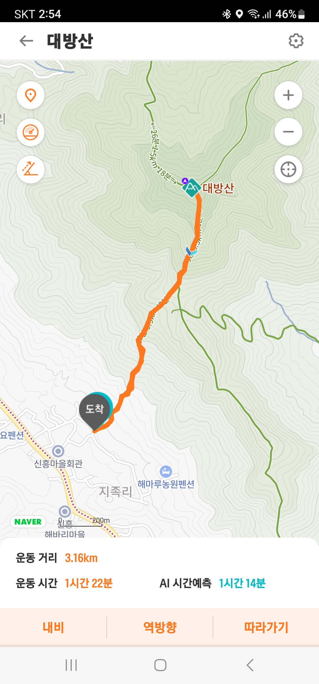 신흥마을 대방산 트랭글왕복기록 거리 3.16km 1시간 22분