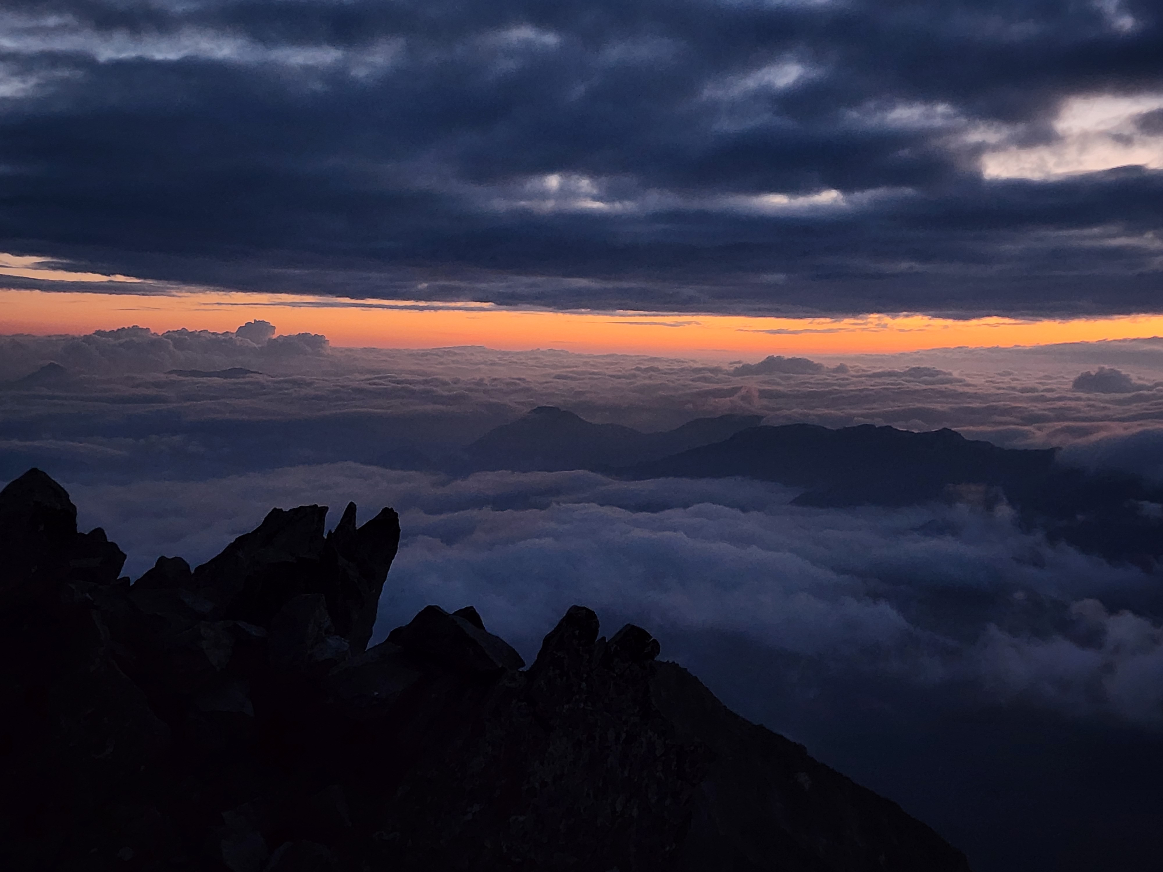전날 오르고 다시 일출을 기대하고 오른 야리가다케 하지만 운해가 춤추는 모습을 볼 수 있었다