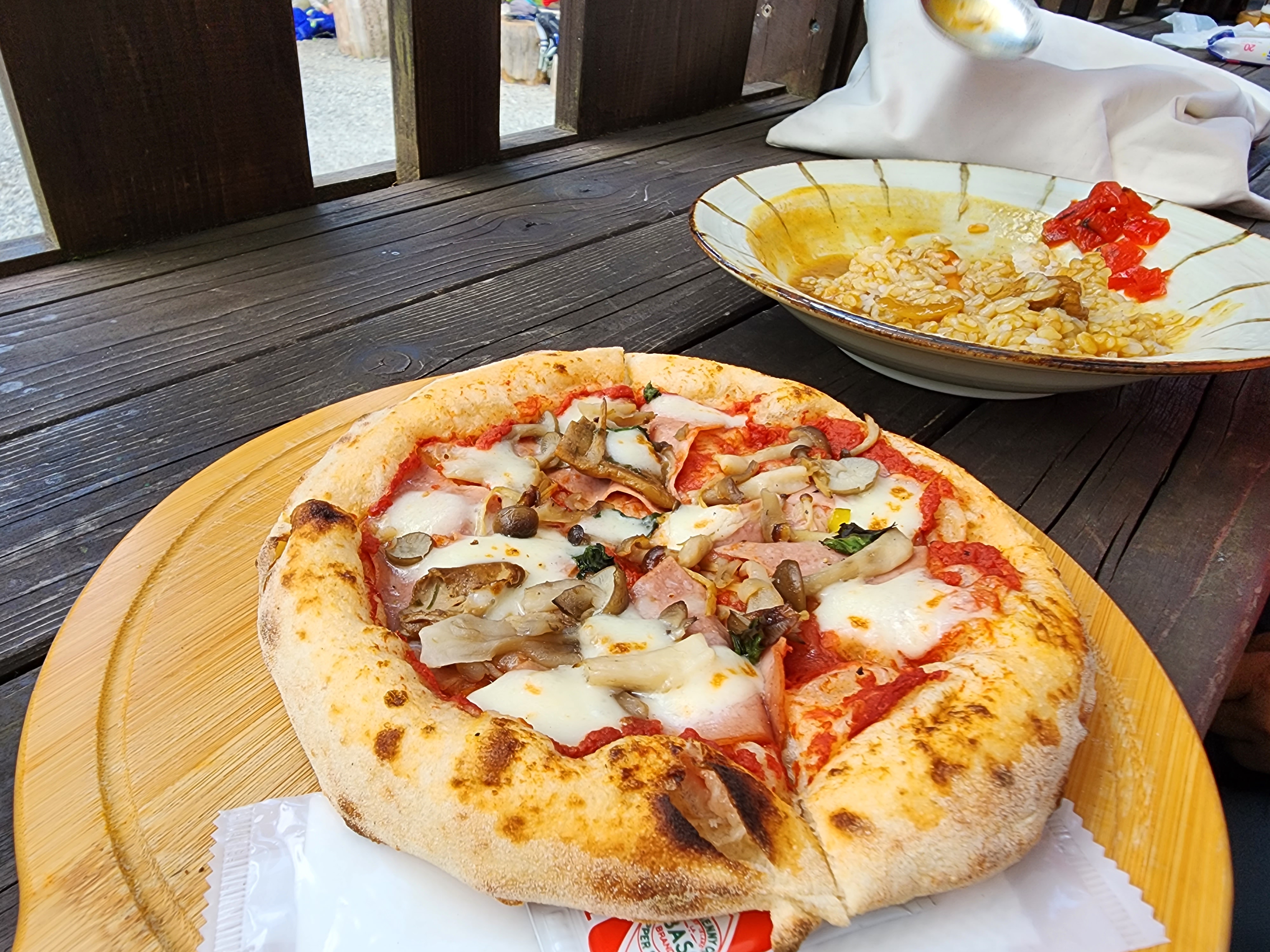 도쿠사와산장에서 점심으로 피자을 먹고