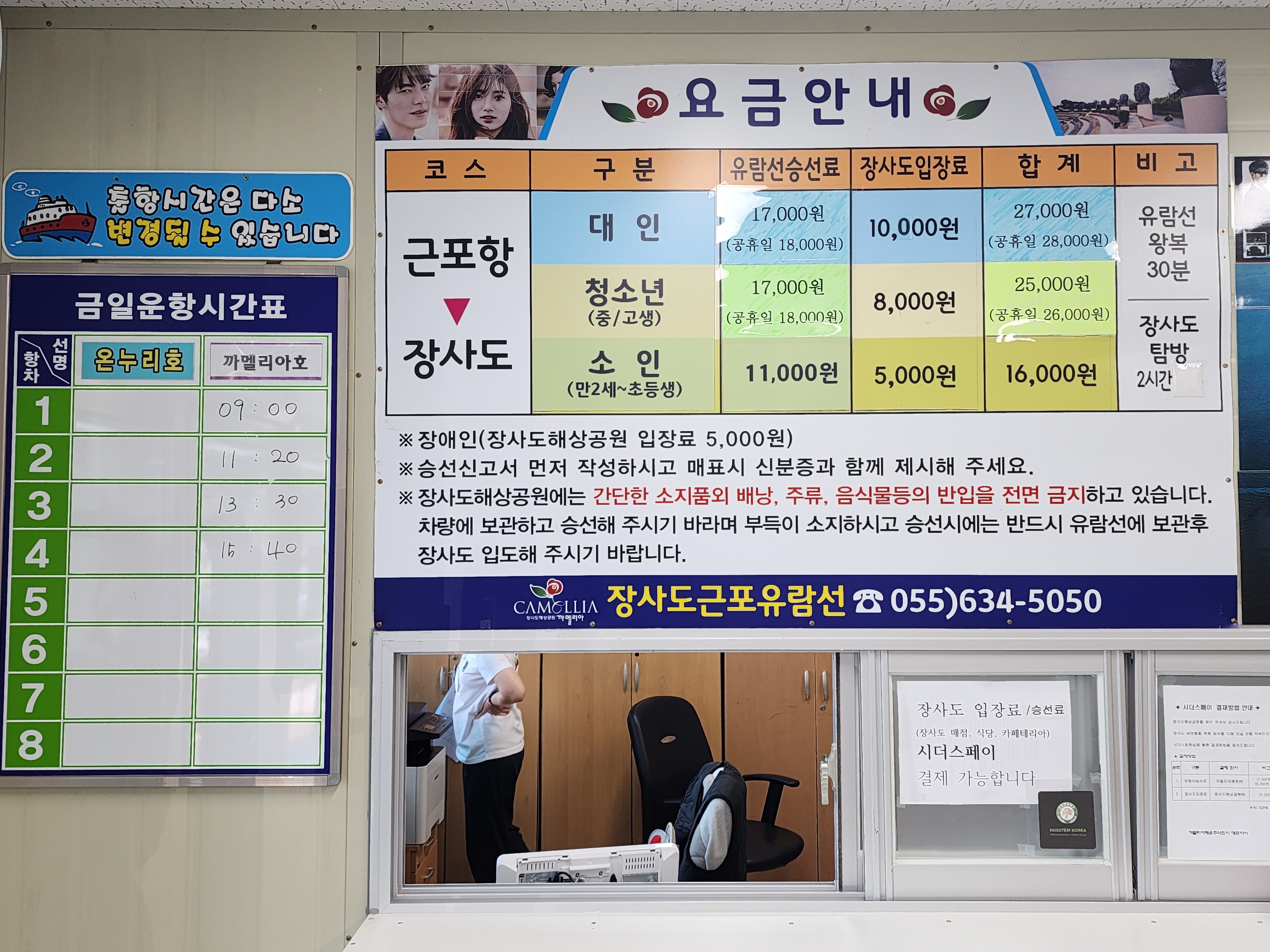 근포항 장사도배시간표와 입장료