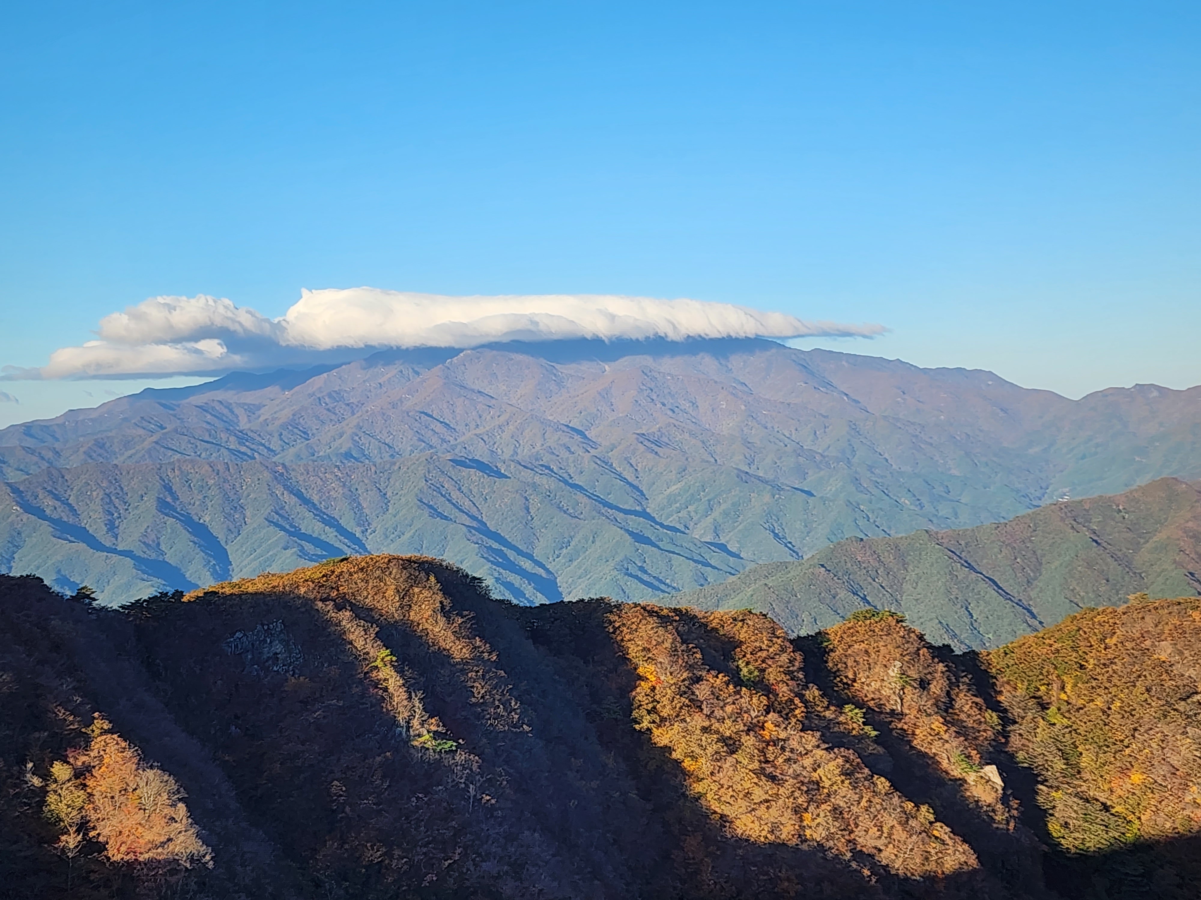 웅석봉에서 본 구름모자를 쓰고있는 지리산천왕봉