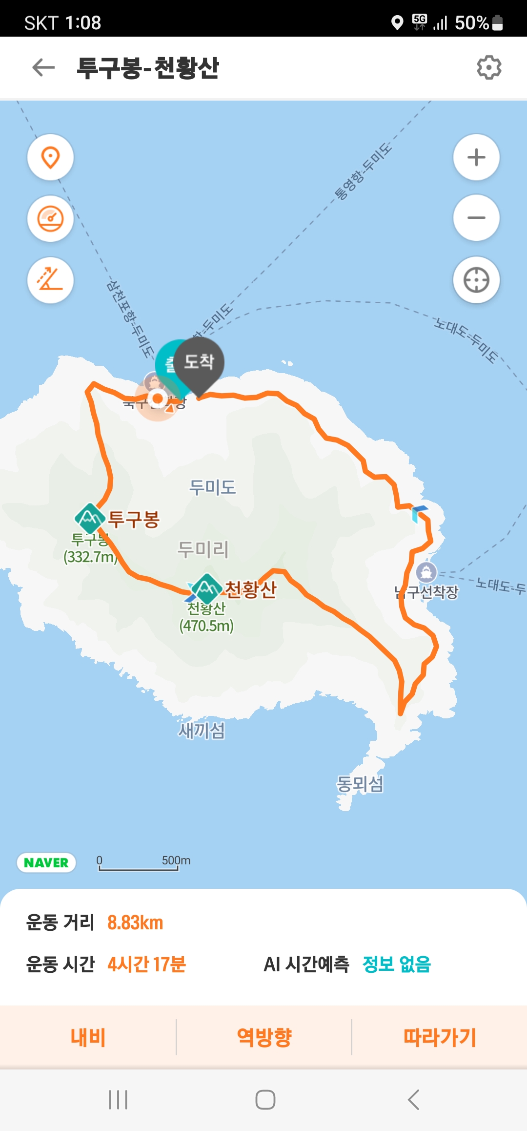 통영항 두미도 가는 배시간표 06:50 나오는배 15:50 하루에 두편밖에 없어 두미도에서 보내는 시간이 많아 여유롭게 산행할 수 있음.