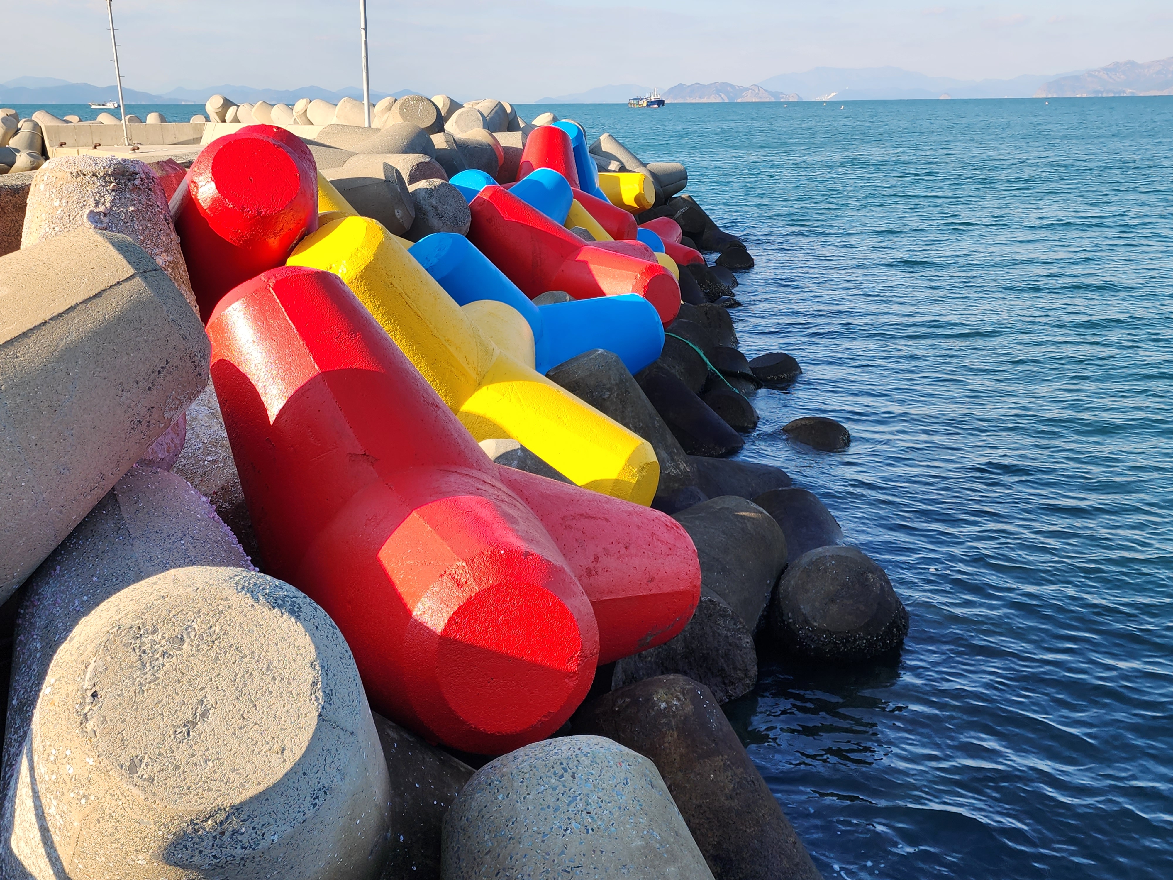 두미도항의 칼라풀한 테트라포드