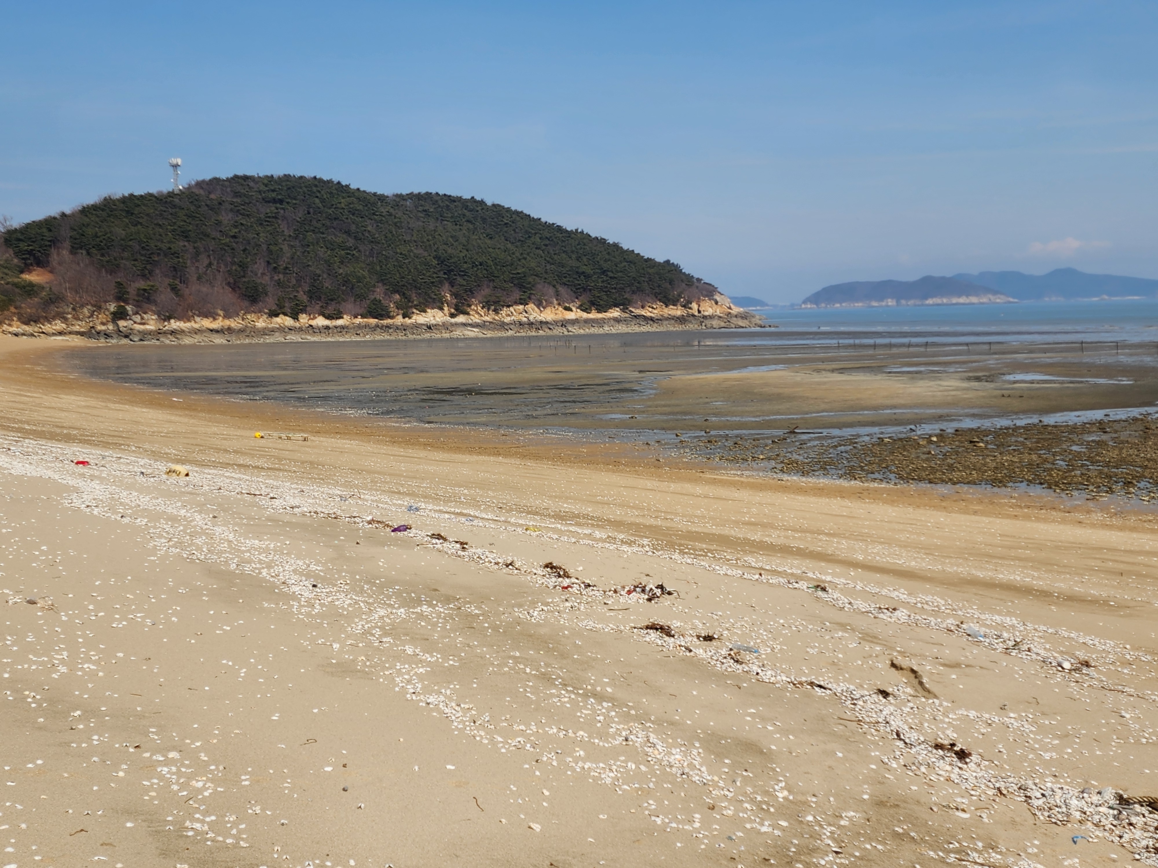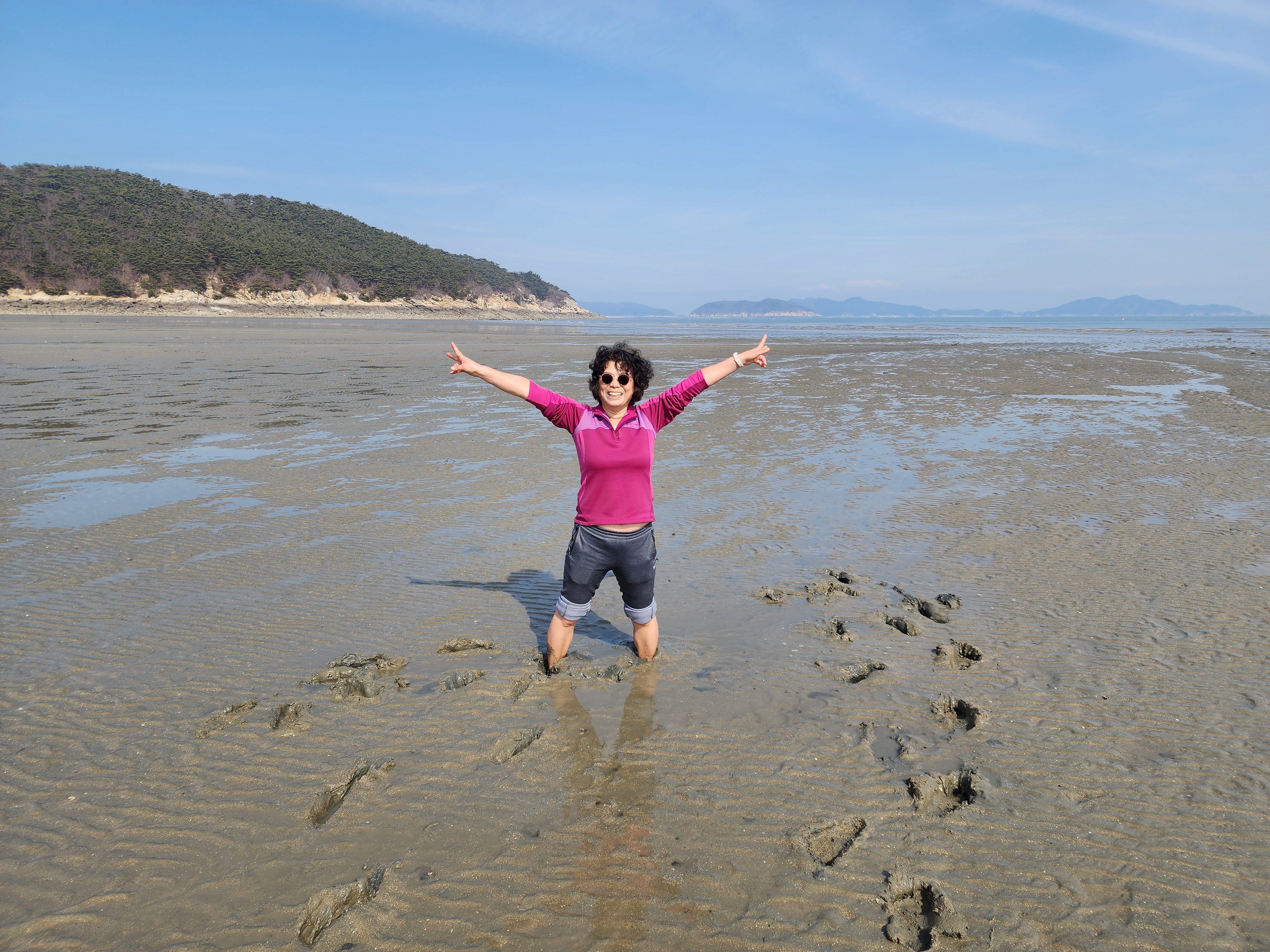 깃대봉등산후 배시간이 여유가 있어 문갑해수욕장뻘밭에 발마사지을 위해 들어갔다.