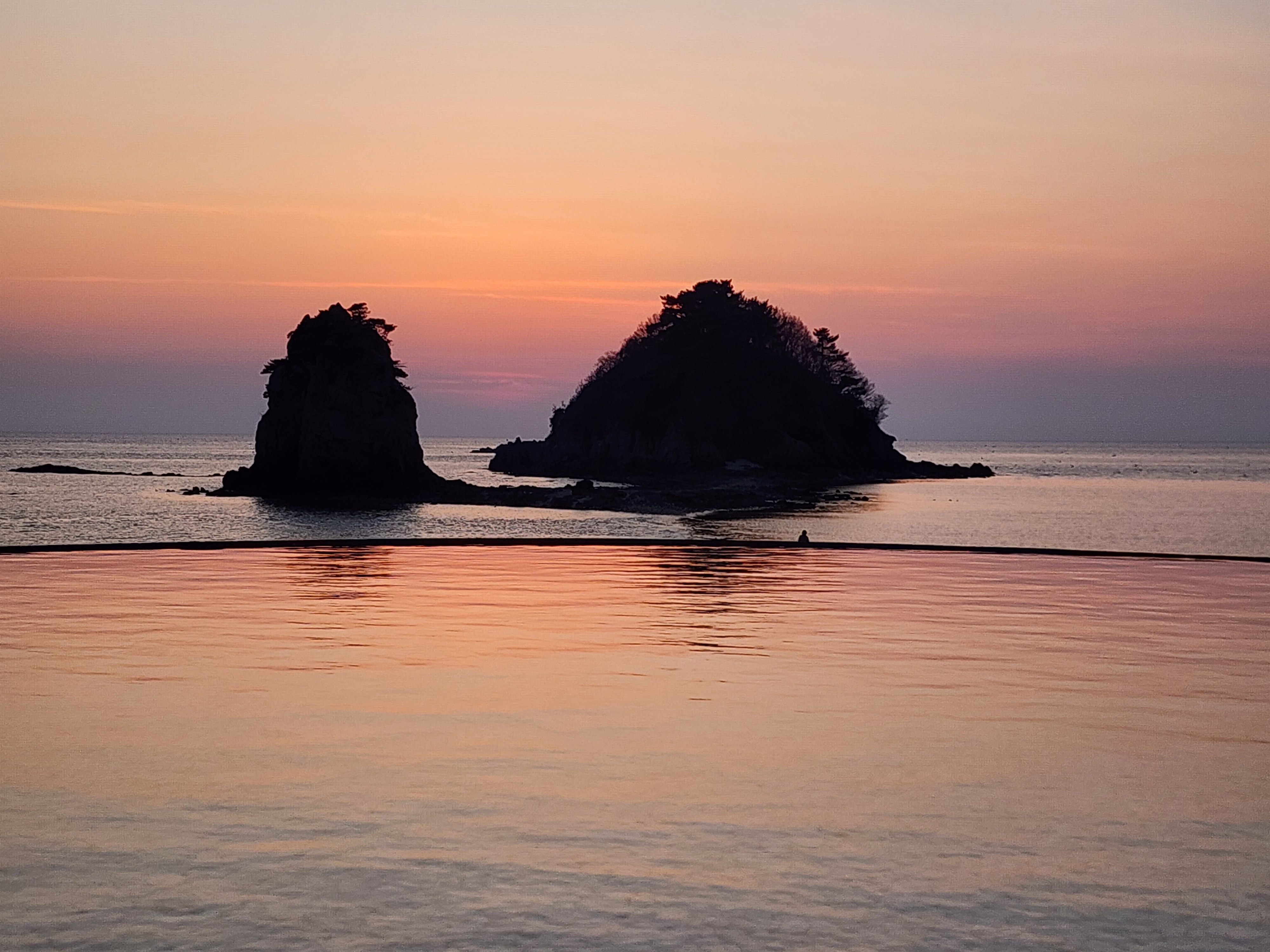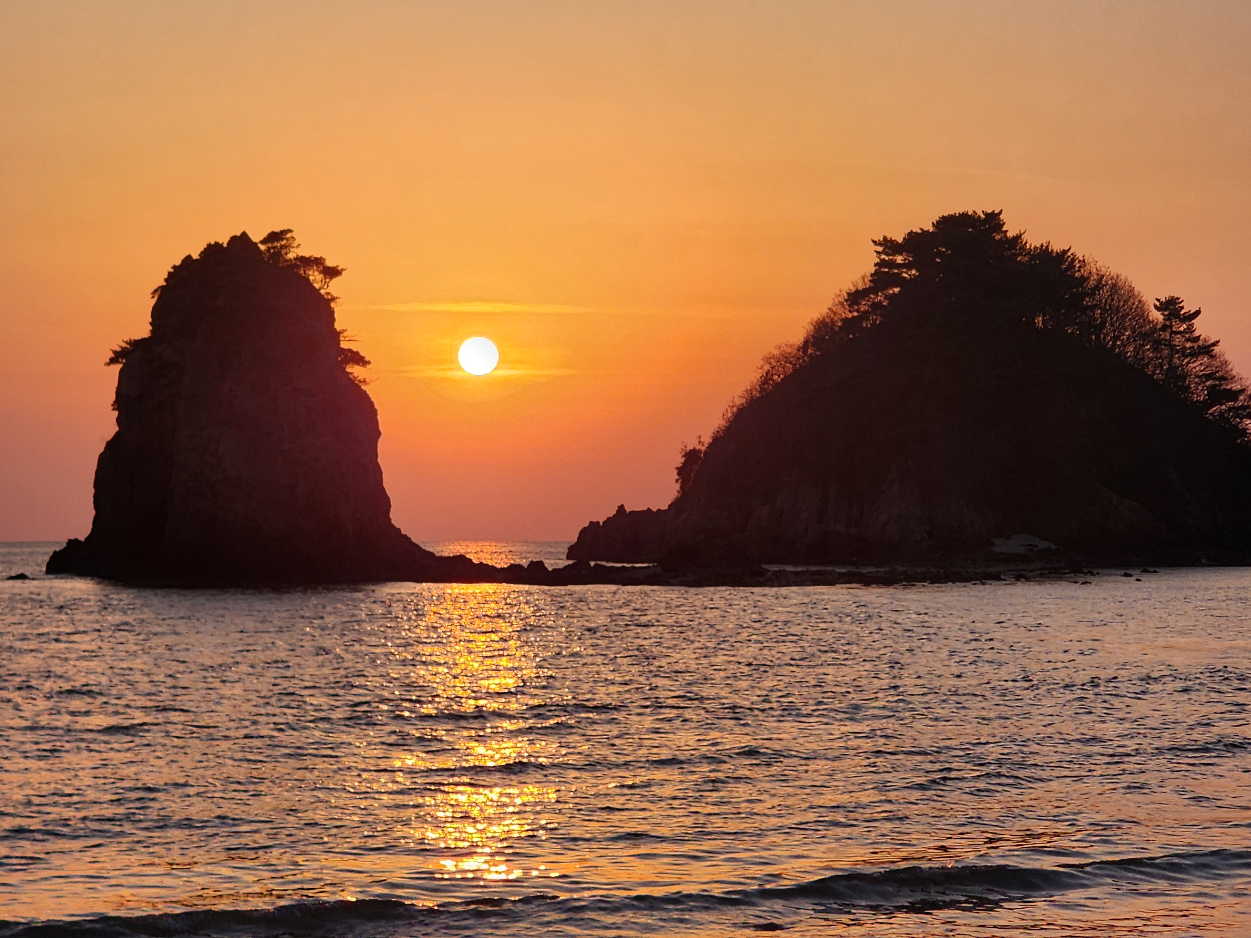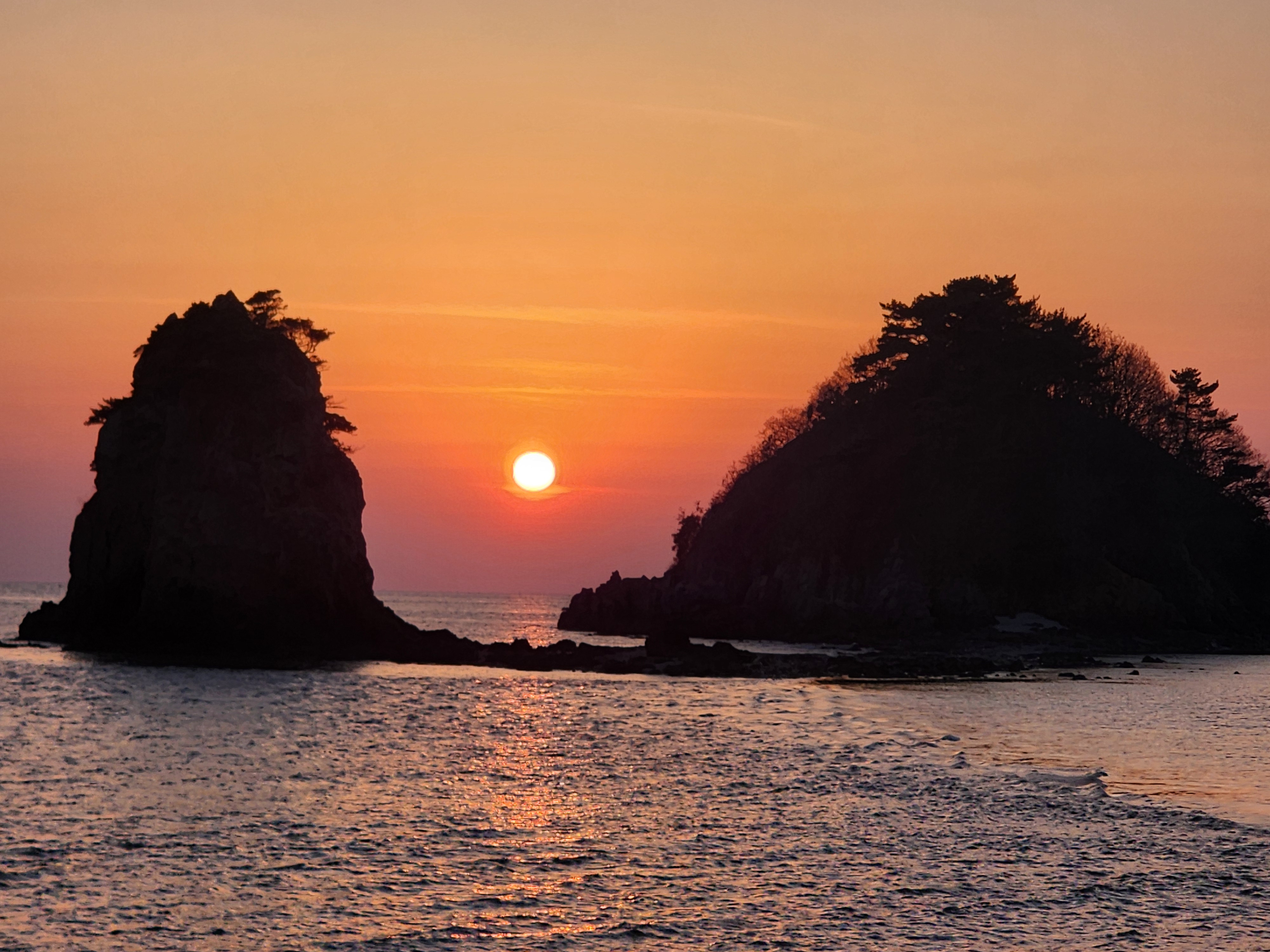 할머니 할아버지 바위의 저녁노을