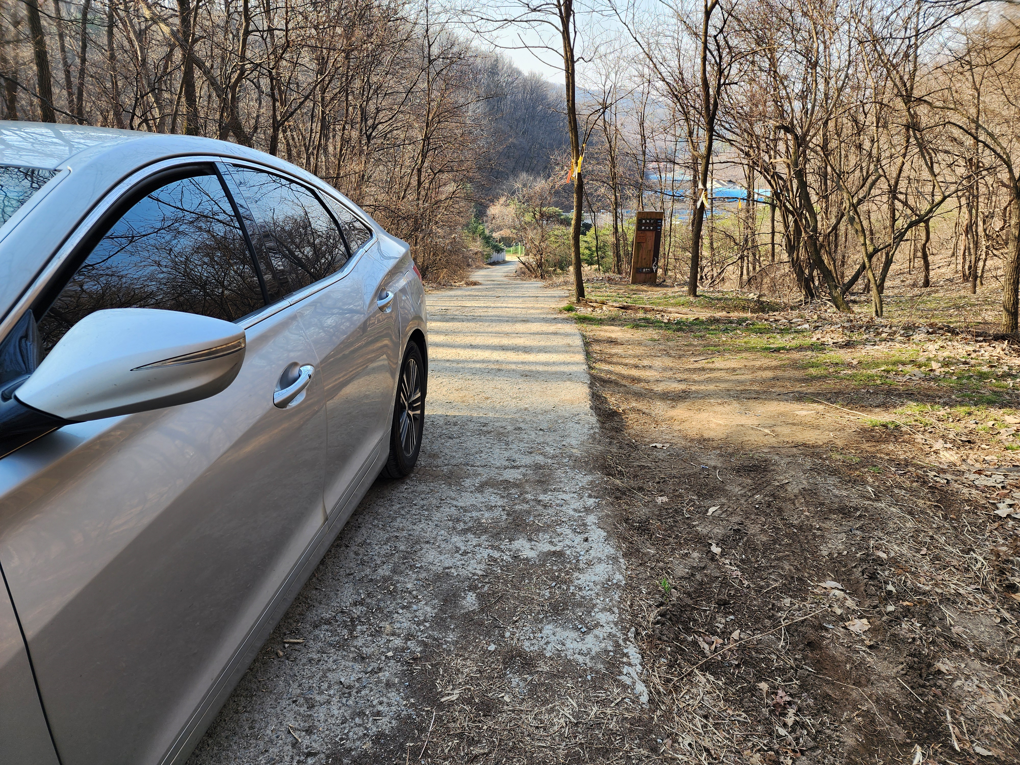 차를 타고 염티고개 정상에 와서 인정지를 찾으니 차량 뒷쪽에 인정지가 있었어 조금은 당황스러웠지만아주 편하게 인정했다.
