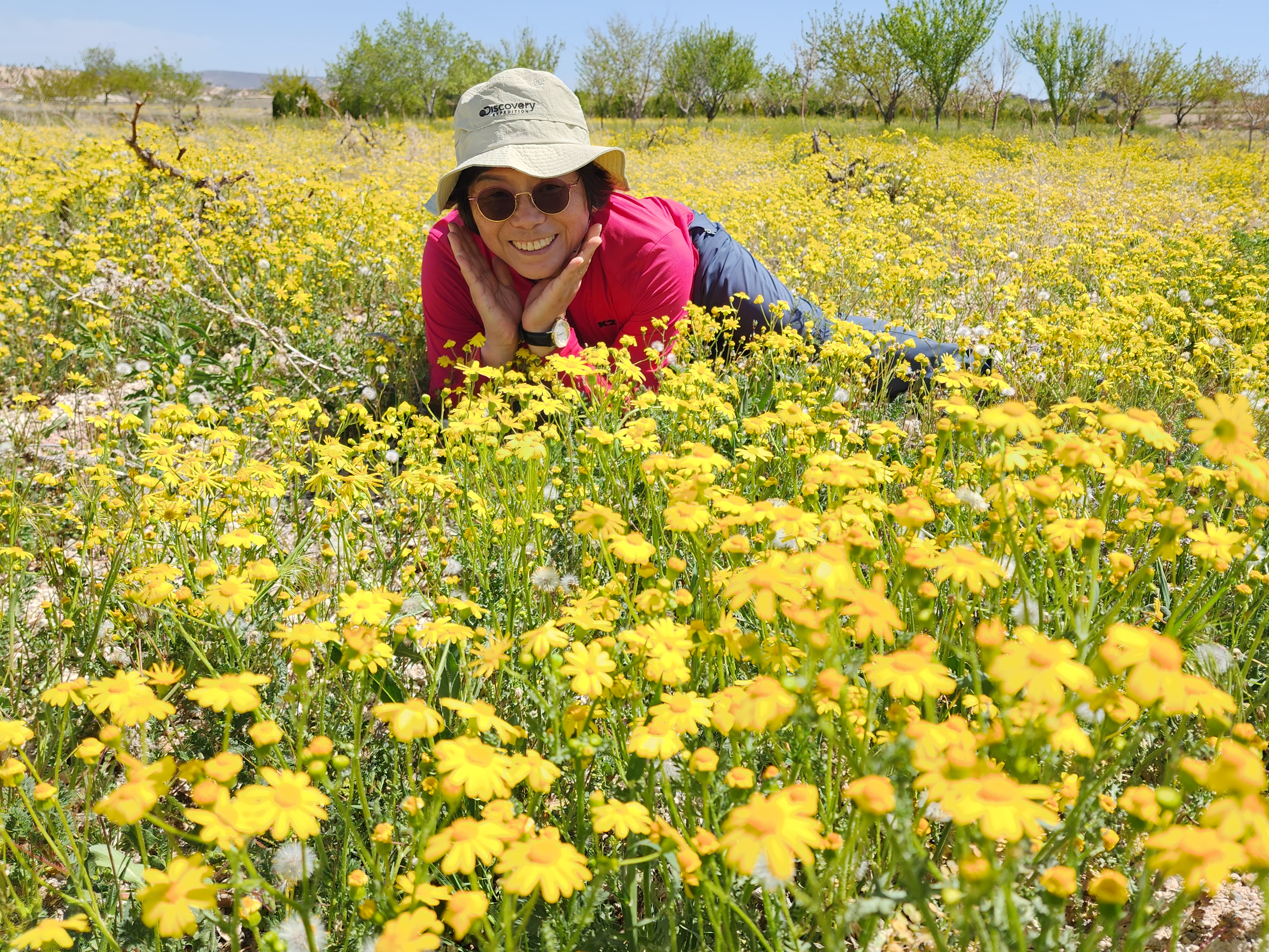 포도밭의 야생화가 노란 꽃밭을 이루고 있네
