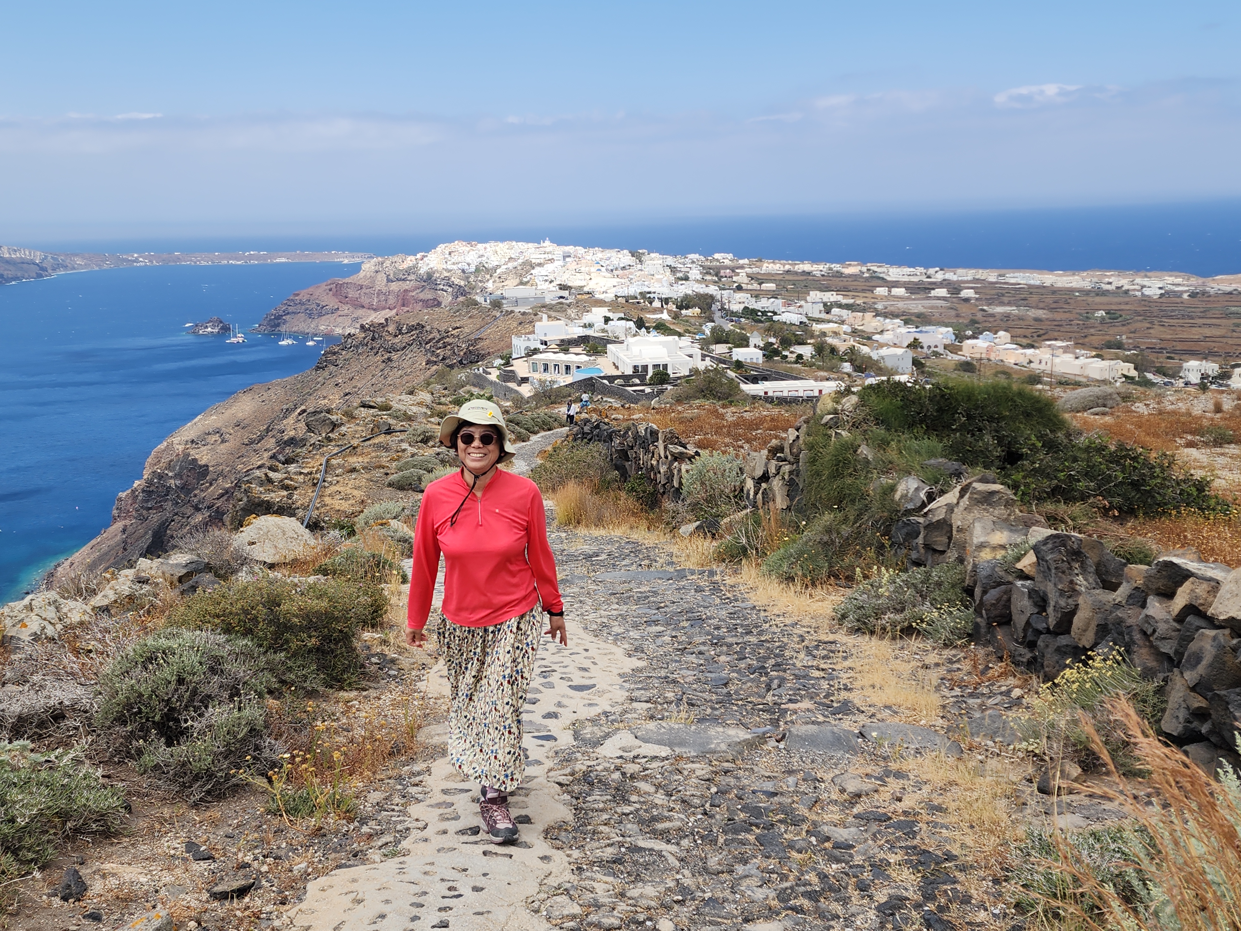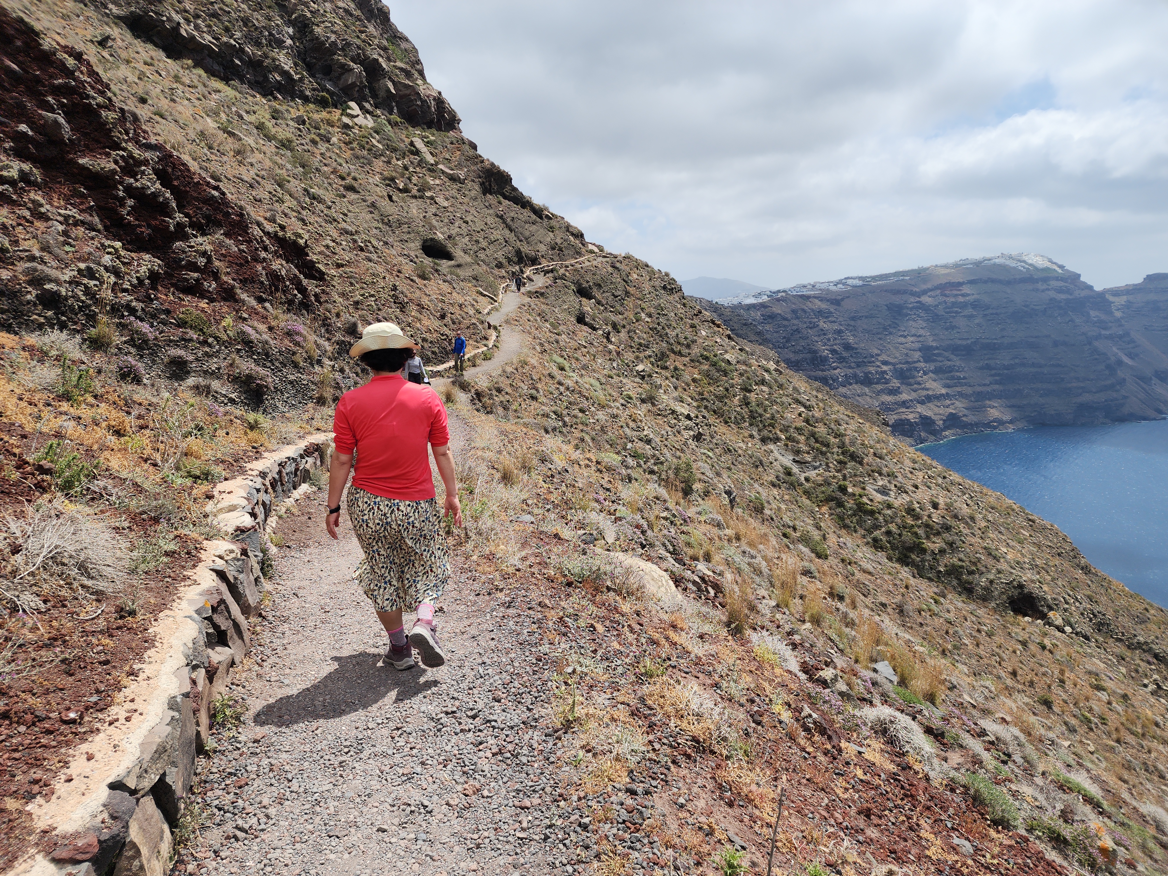 트레킹을 좋아하니 산토리니 최고의 트레킹 코스 이아마을 에서 피라마을 까지 파란 지중해를 보면서 걷는다.