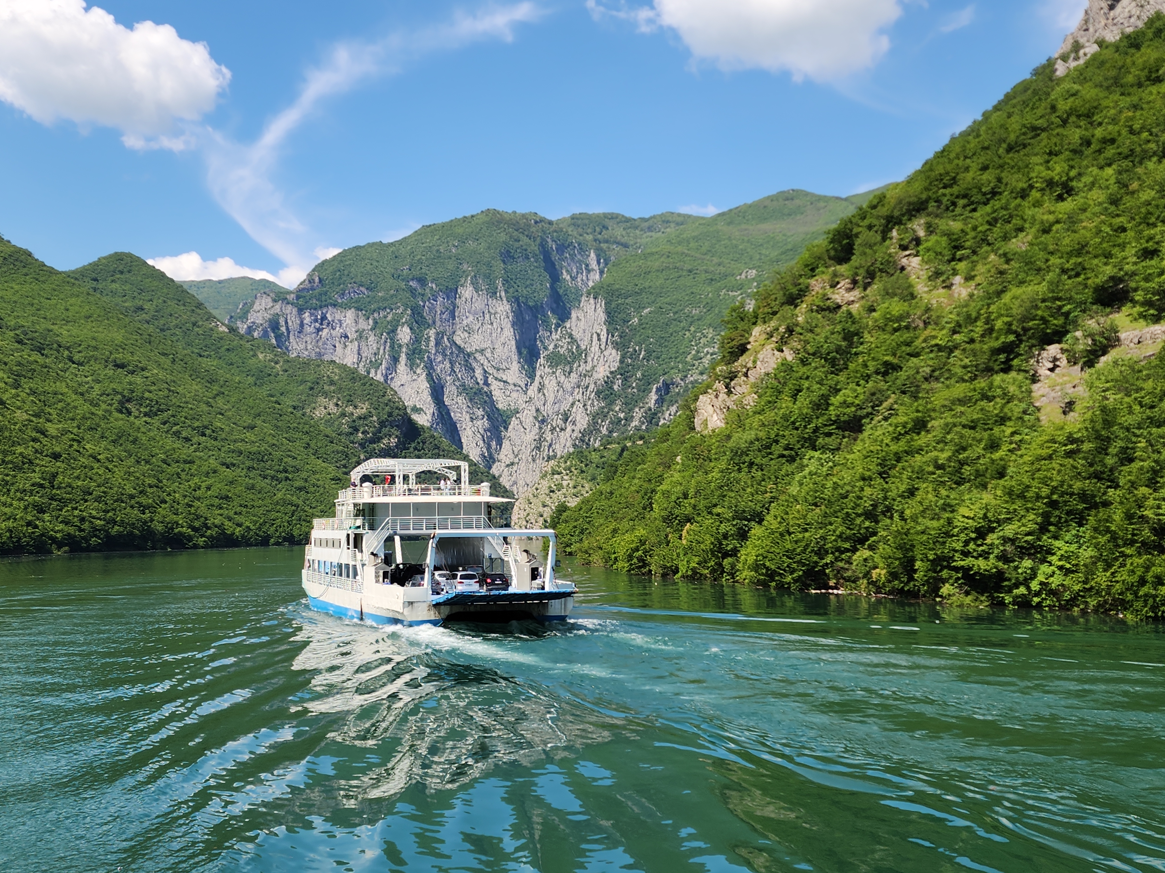 알바니아 쉬코드라에서 발보나 - 테스 트레킹을 갔다. 먼저 발보나까지 가야하는데 버스-페리-버스를 타고 가야 한다. 인포메이션센터에서 로제타호텔 앞에서 아침 7시에 예약없이 버스를 타면 된다고 했으나 혹시나 하여 지나가다 여행사에 들러 표를 예매하였다. 6시 30분에 여행사 앞에서 버스를 타고 2시간정도 호수를 돌아돌아 꼬불꼬불 길을 달려 페리 타는 곳에 도착하여 페리를 탔다. 댐 안의 호수를 배를 타고 가는데, 물색도 좋고 호수라 흔들림도 없고 풍경은 장관이었다. 졸면서 경치 구경하면서 2시간을 타고 다시 미니버스를 타고 발로나로 갔다. 생각보다 길도 좋고 산 속으로 가는 길이라 계곡도 좋았다. 그렇게 2시간 정도 걸려 발보나 호텔 앞에 내려줬다.