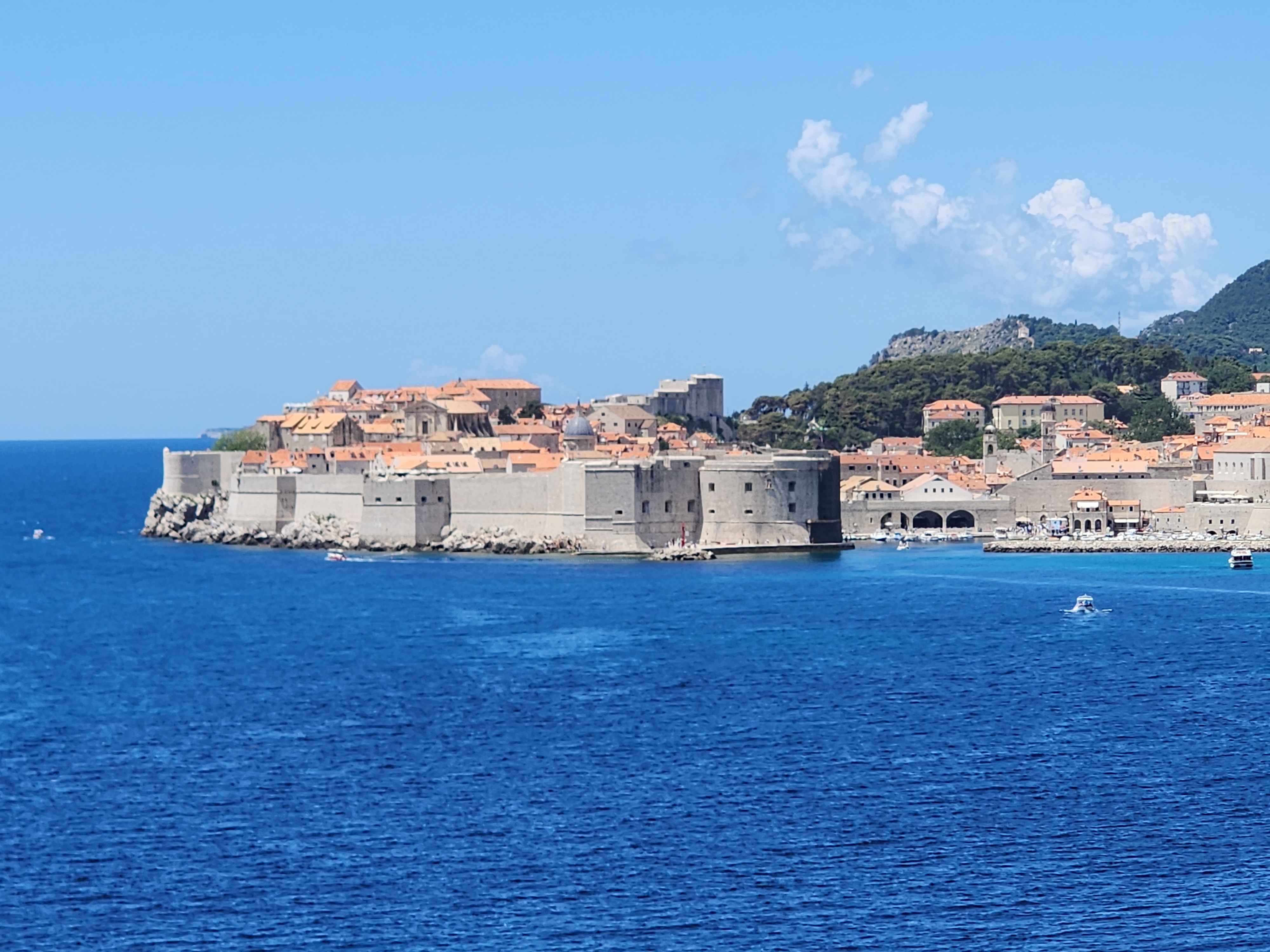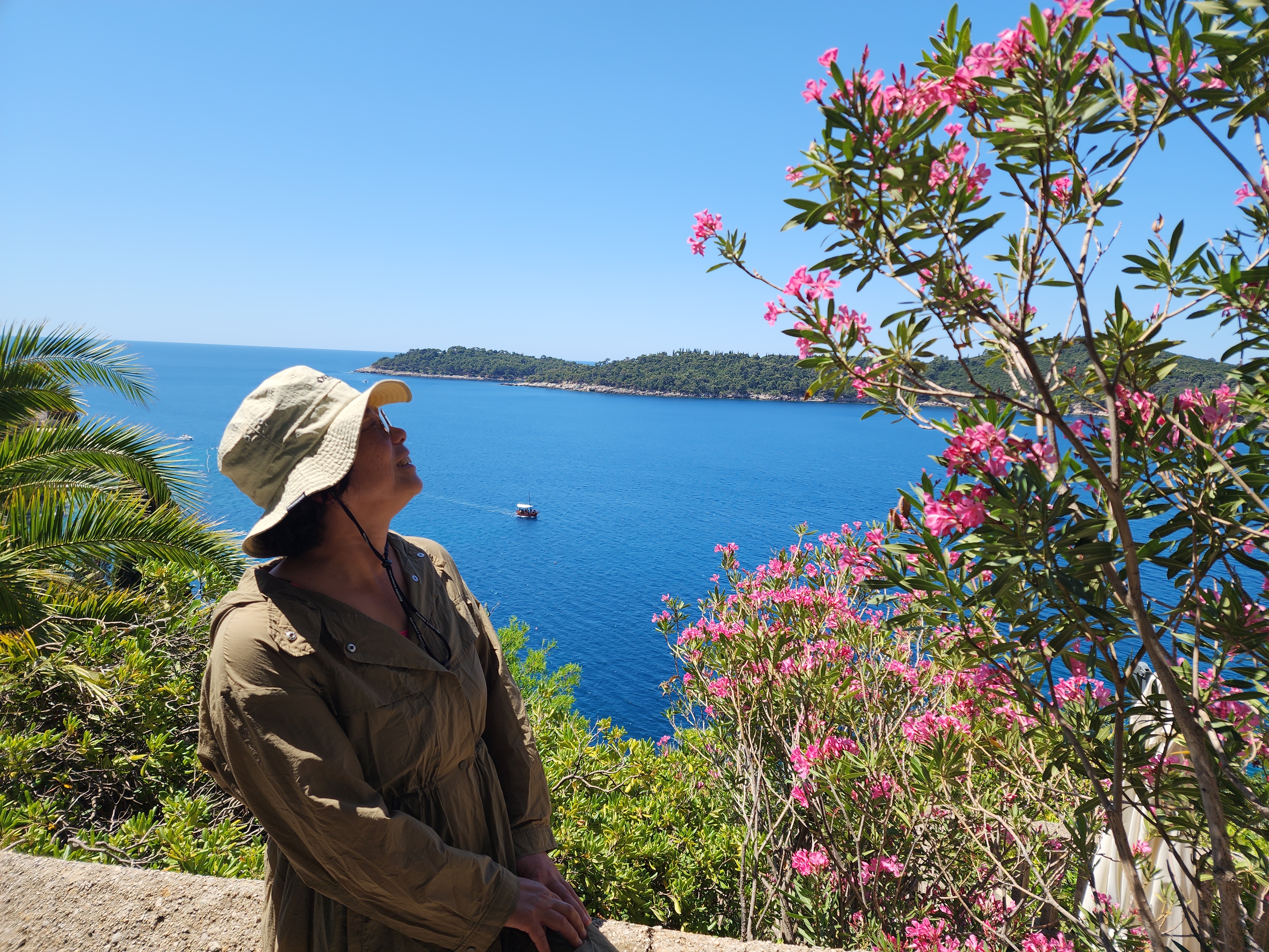 해수욕장 가는 길 위에서 본 두브로브니크 고성과 바다. 물색이 어찌 이리 예쁠고.