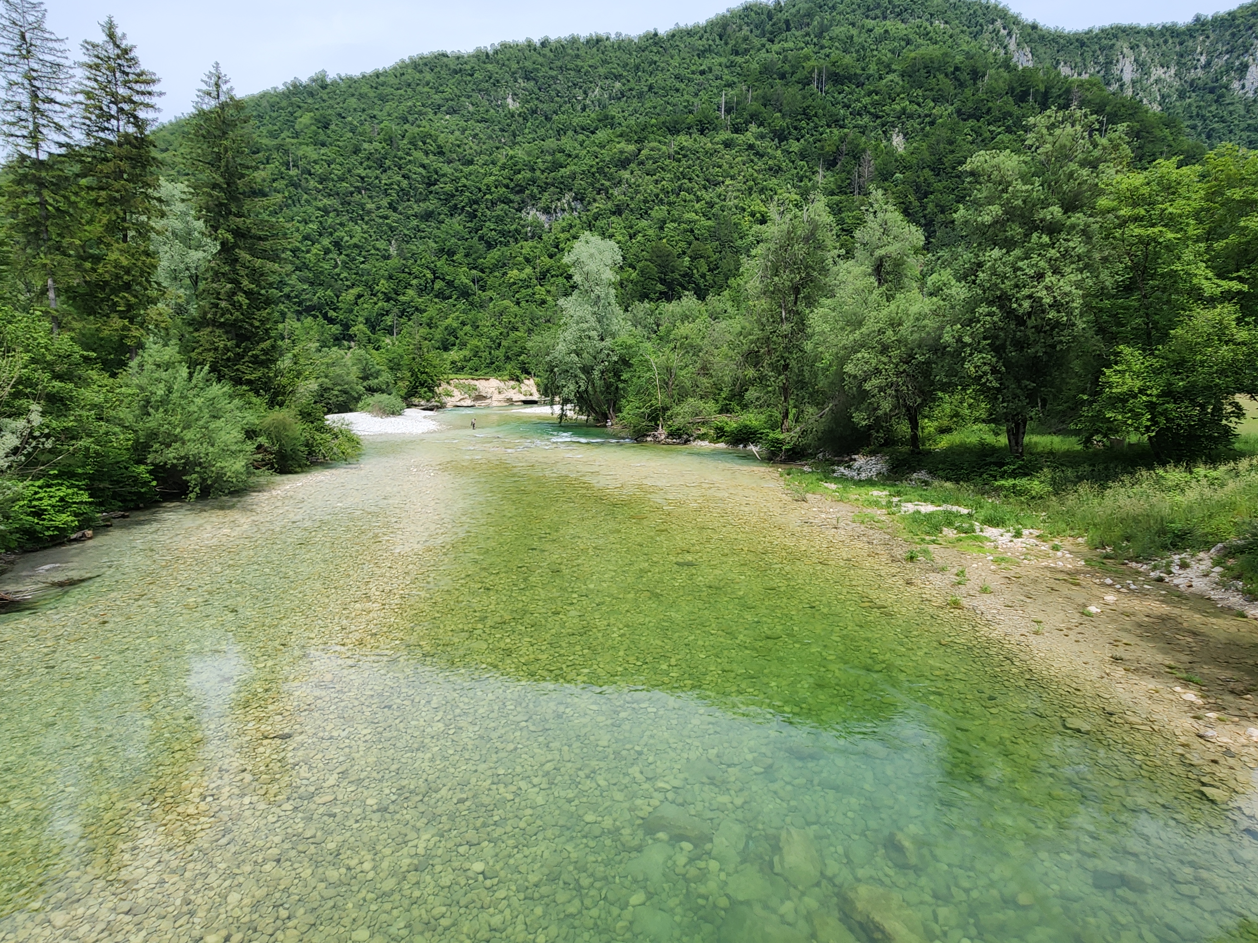 강물은 정말로 맑다.