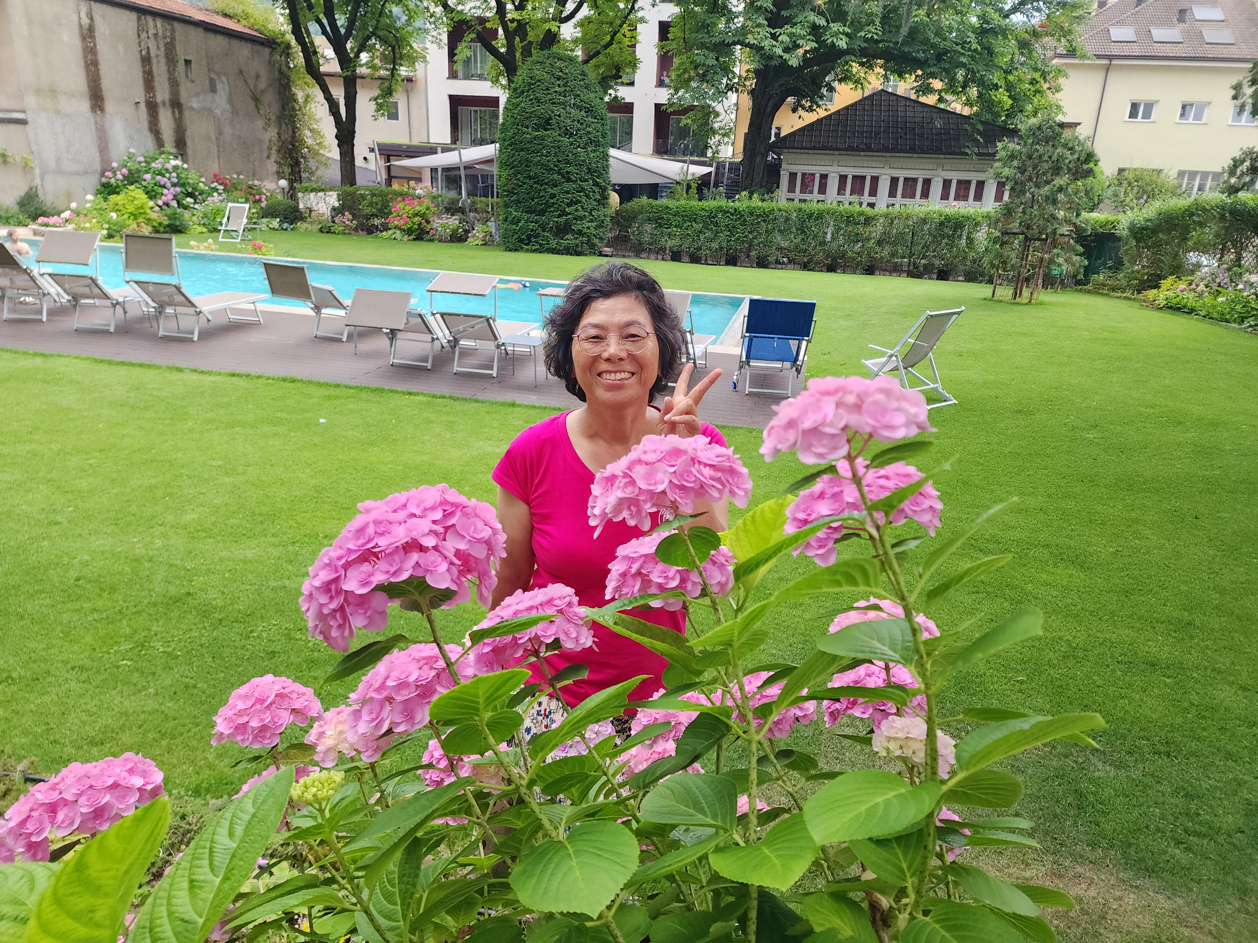 호텔 정원에 핀 수국.