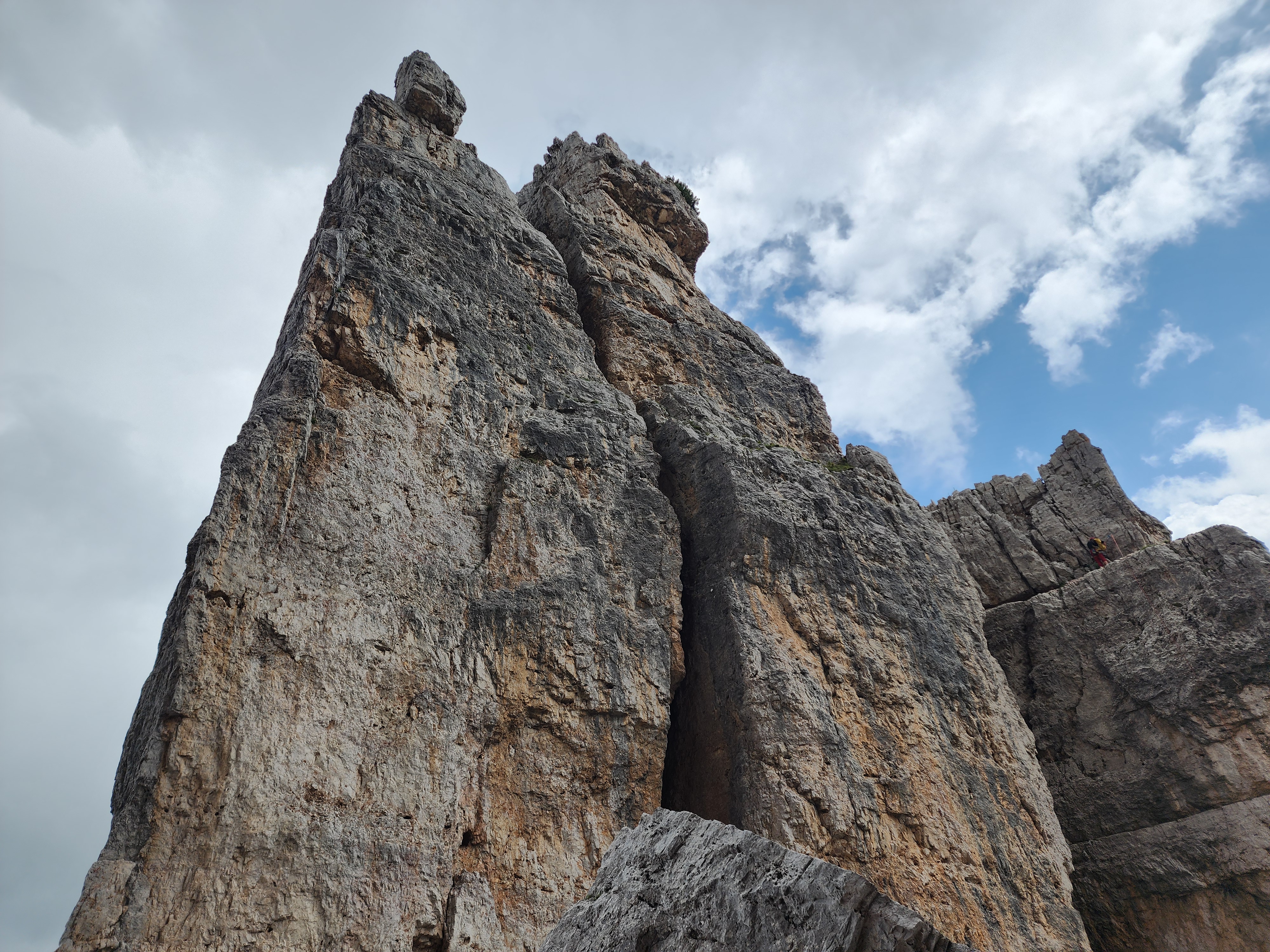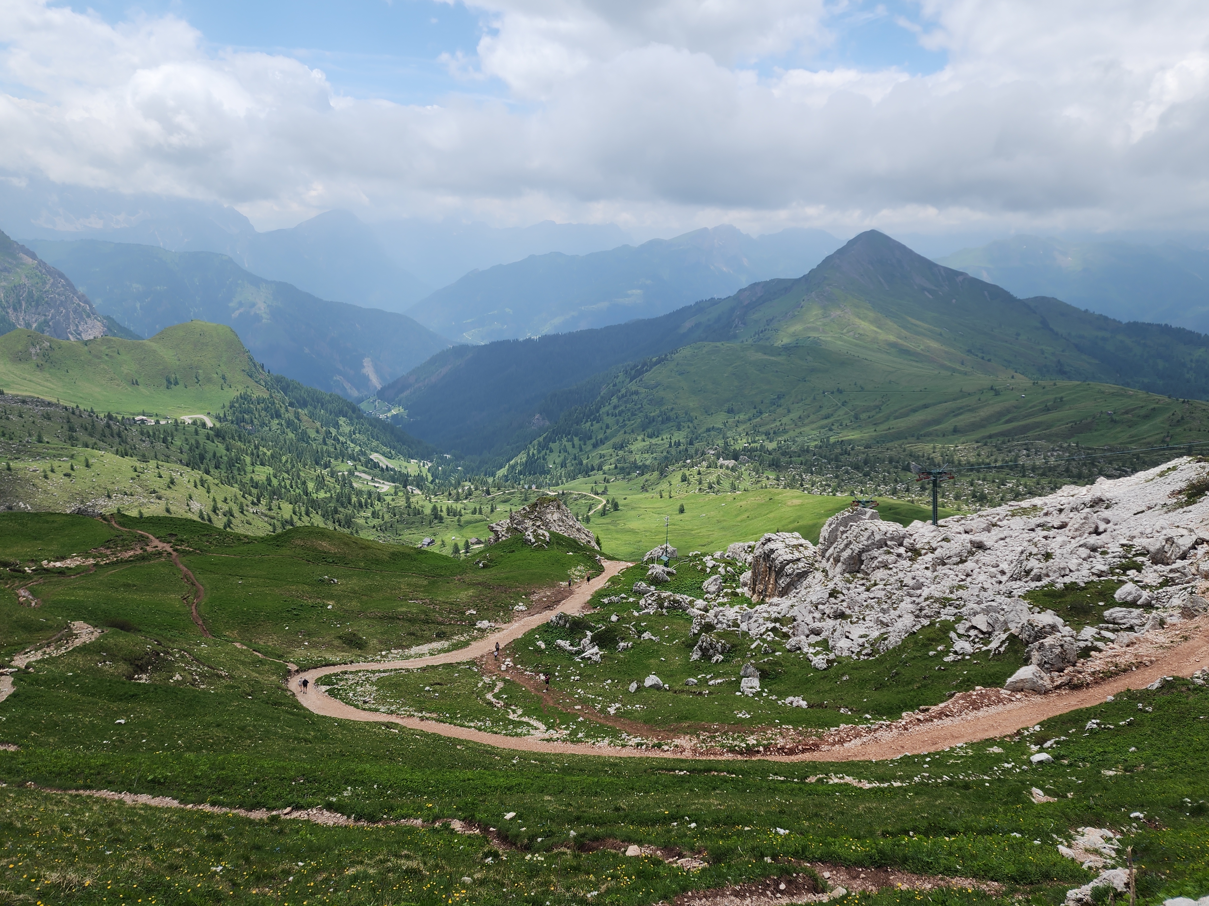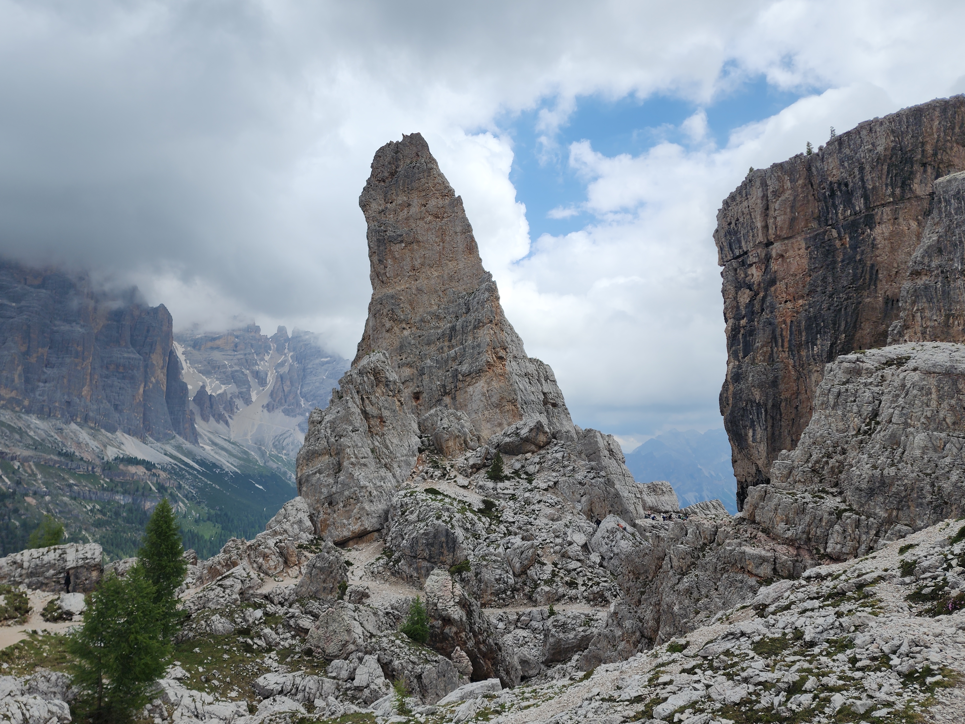 돌로미티에서 제일 예약이 어렵다는 라가주오이 산장이 예약이 되어 그 입구인 파소 팔자레고를 가는 버스(31번, 4.2유로)타고 가는 도중에 친퀘토리 버스 정류장이 있어 시간도 있고 하여 내렸다. 시간과 거리를 잘 몰라 리프트 왕복권(24유로)을 사서 리프트를 탔다. 친퀘토리에 도착하여 한 바퀴 돌아도 시간 여유가 있어 라가주오이 산장까지 걸어갔다. 오르막, 내리막이 있었으나 바위 봉우리를 구경하느라 피곤함도 몰랐다. 돌로미티는 바위가 끝내준다.