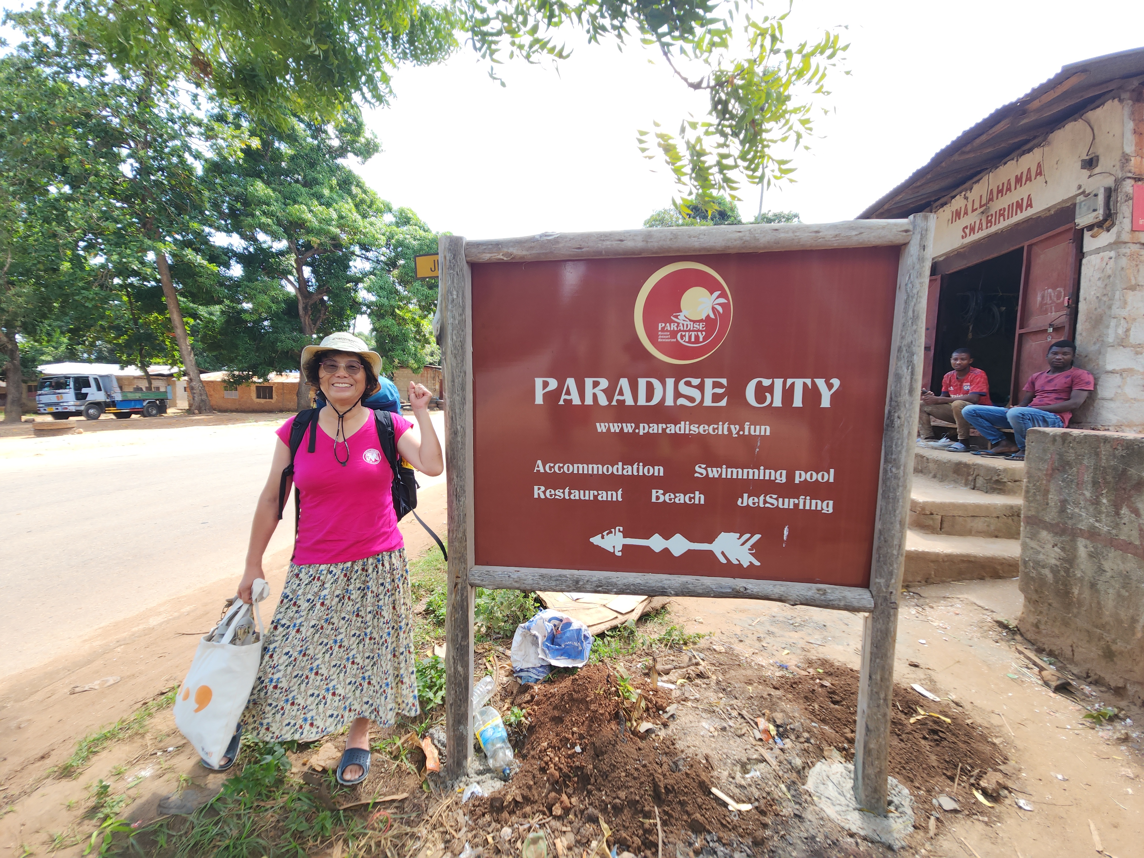 달라달라에서 내린 파라다이스시티 입구에서.