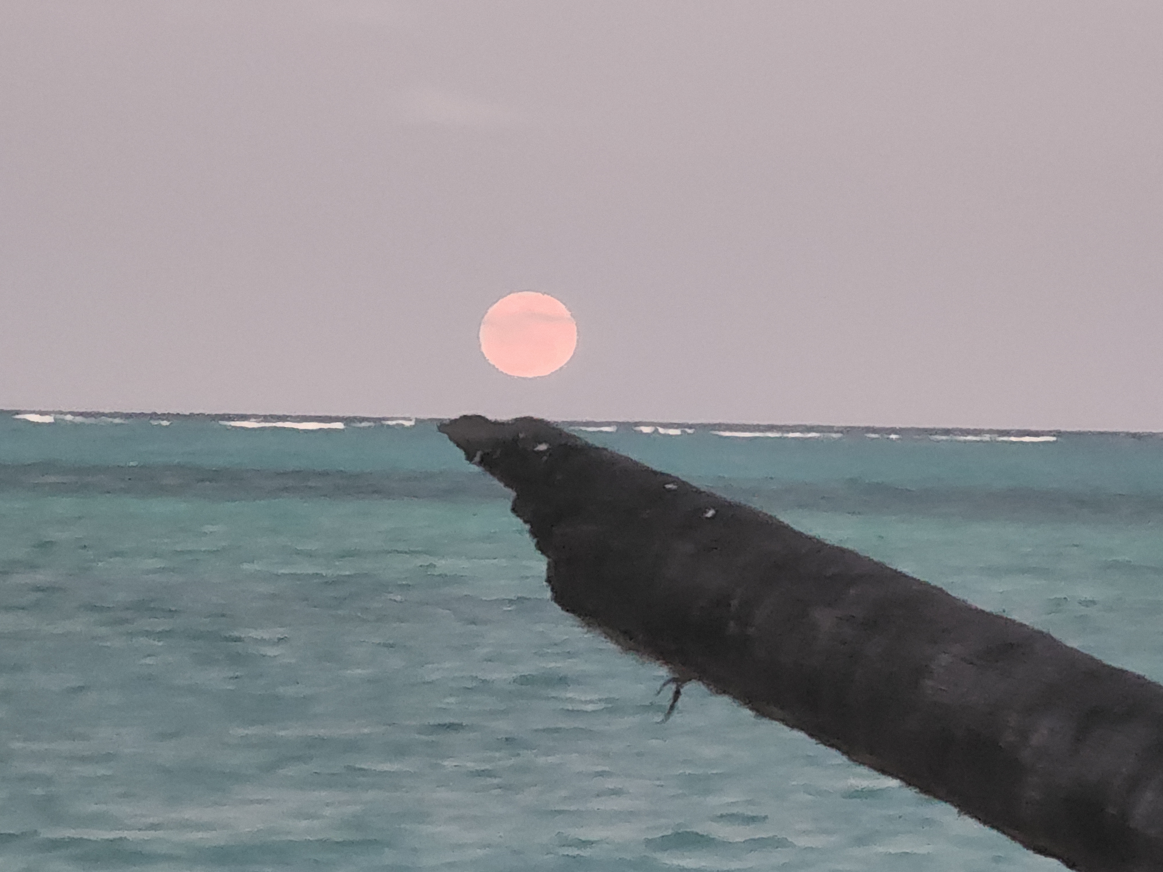 보름 다음날이라 달이 휘영청. 저것은 해인가? 달인가?