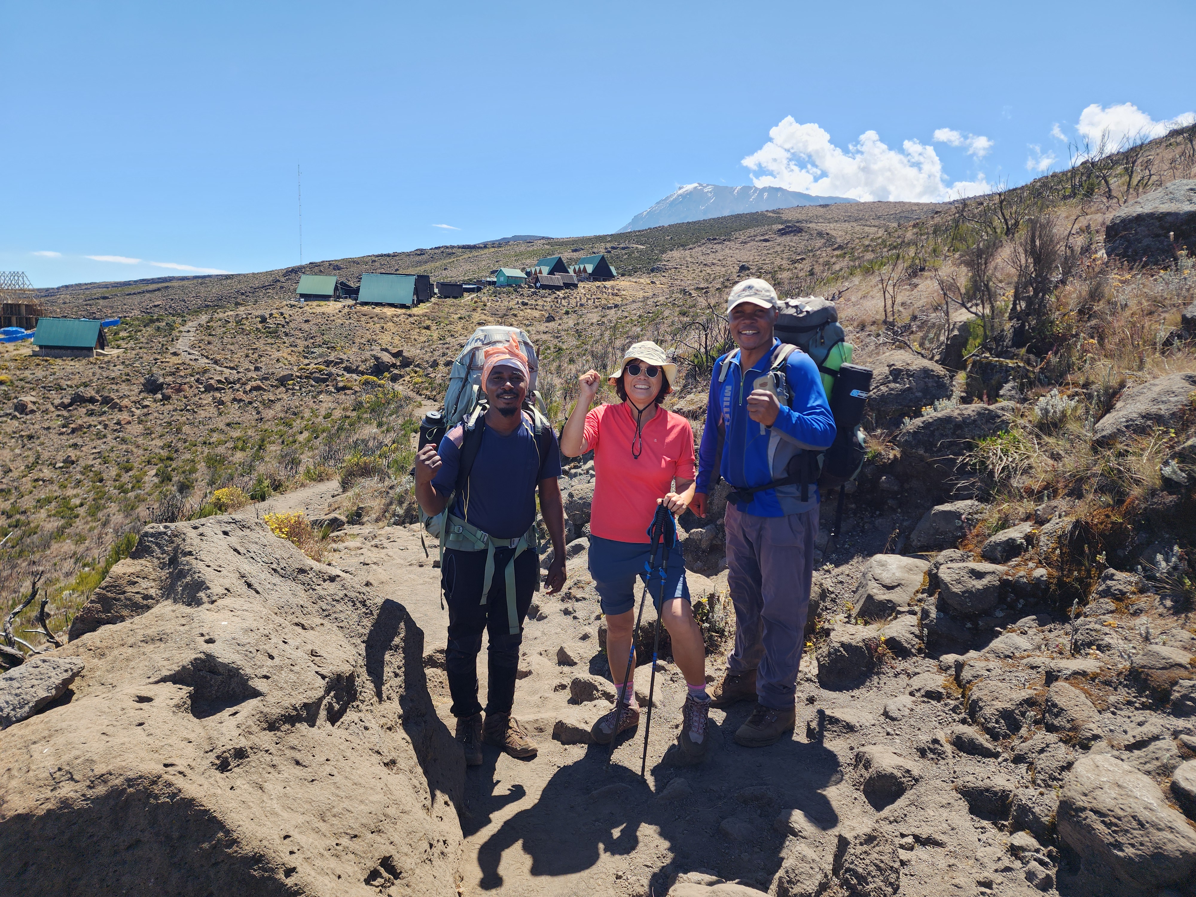킬리만자로 5박 6일 트레킹(8/7~8/12) 2일차는 만다라 산장에서 호롬보 산장까지 11km를 관목지대로 가는 길이다. 새벽에 일어나니 비가 오고 있어 조금 늦게 비 그치면 출발하는 것이 좋겠다고 하니 가이드는 비가 언제 그칠지 모르고 조금 올라가면 비가 오지 않는다고 하여 8시쯤 우중 산행을 시작했다. 정말로 가이드 말대로 열대 우림 지대를 벗어나니 비가 그쳤다. 현지인의 경험에 놀랐다.열대림을 벗어나니 관목 지대가 나타났다. 자연의 섭리에 감탄할 뿐이다. 우리나라에서 본 적 없는 풍경에 감탄하면서 오르다 보니 어느새 호롬보 산장이 다가왔다.