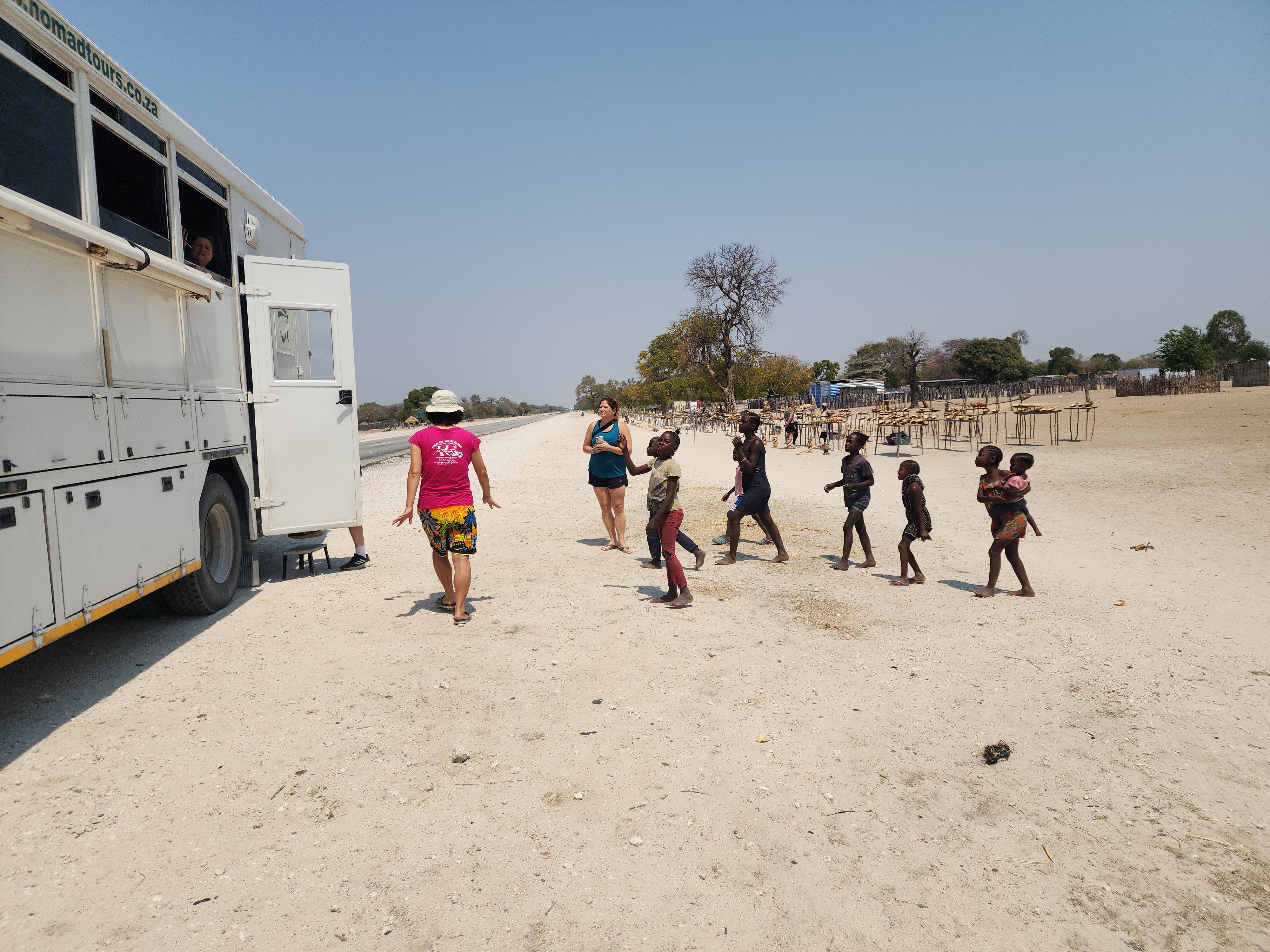 에토샤 국립공원 나무토니에서 디분두로 가는 날이다. 스와코프문에서 4명, 에토샤에서 6명이 추가로 합류하여 총 20명 차가 만차가 되었다. 나무토니를 벗어나니 언제 국립공원이었나는 듯이 동물은 없다. 바오밥 나무 안내판을 지나고 부시맨 마을에서 과일도 사먹고 기념품도 구경하고 어느새 그 먼길(500km)을 달려 디분두에 도착했다. 수영도 하고 석양도 즐기면서 차량에서 싸인 여독을 풀었다. 강변에 텐트를 침=니 전망은 좋으나 모기가 극성이다.