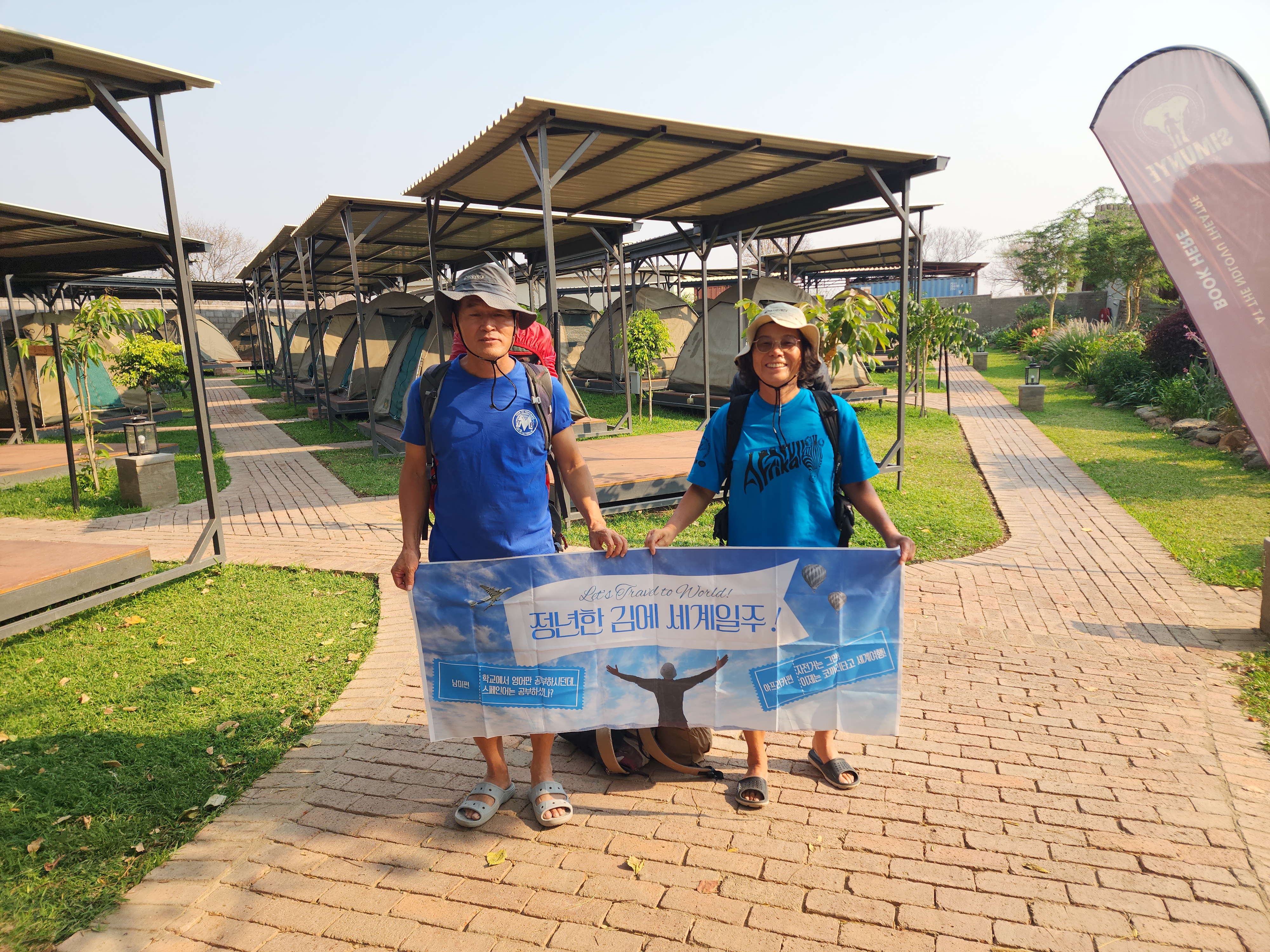 19박 20일 동안의 아프리카 트럭킹을 마치며 마지막 텐트 앞에서. 창공부부의 정년한 김에 세계여행도 한가지 완수한것 같다.
