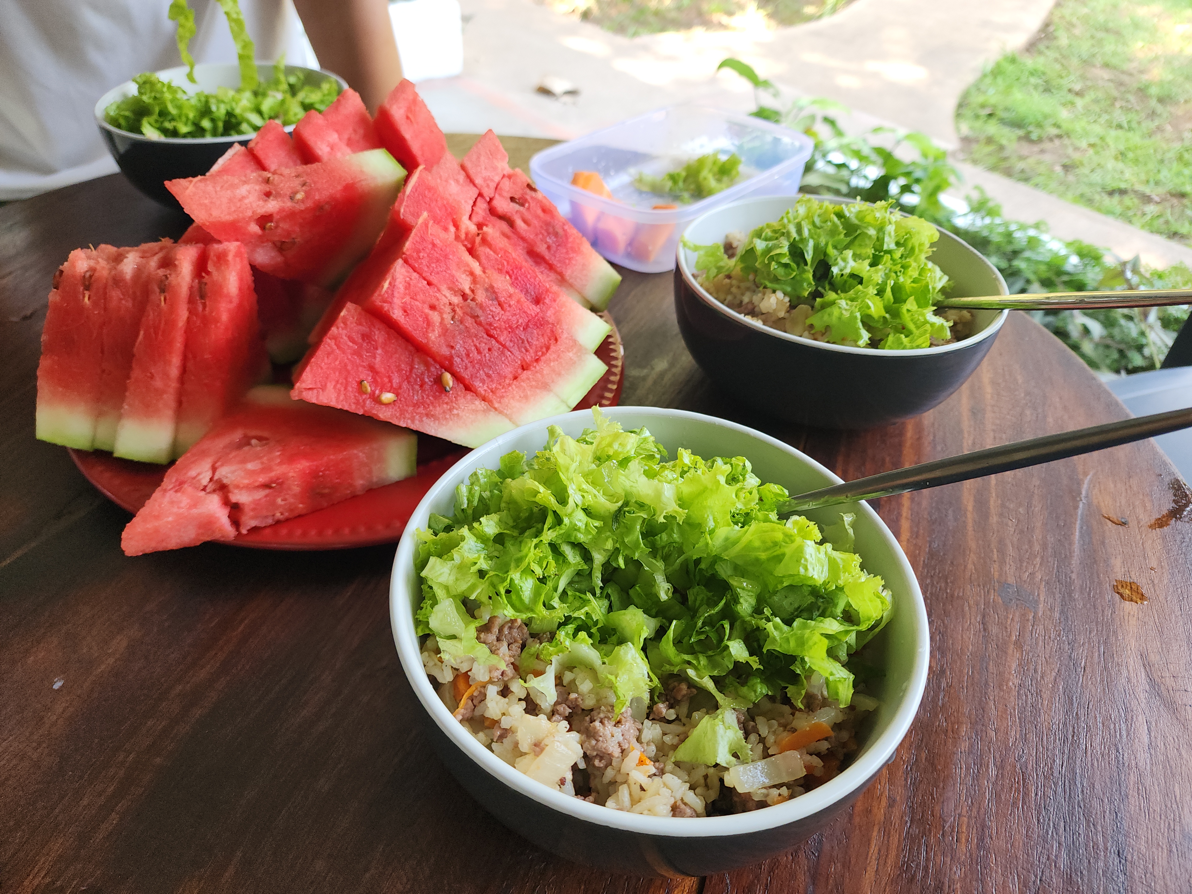 한국인 여행자를 만나 참기름과 고추장 비빔밥을 해먹었다.