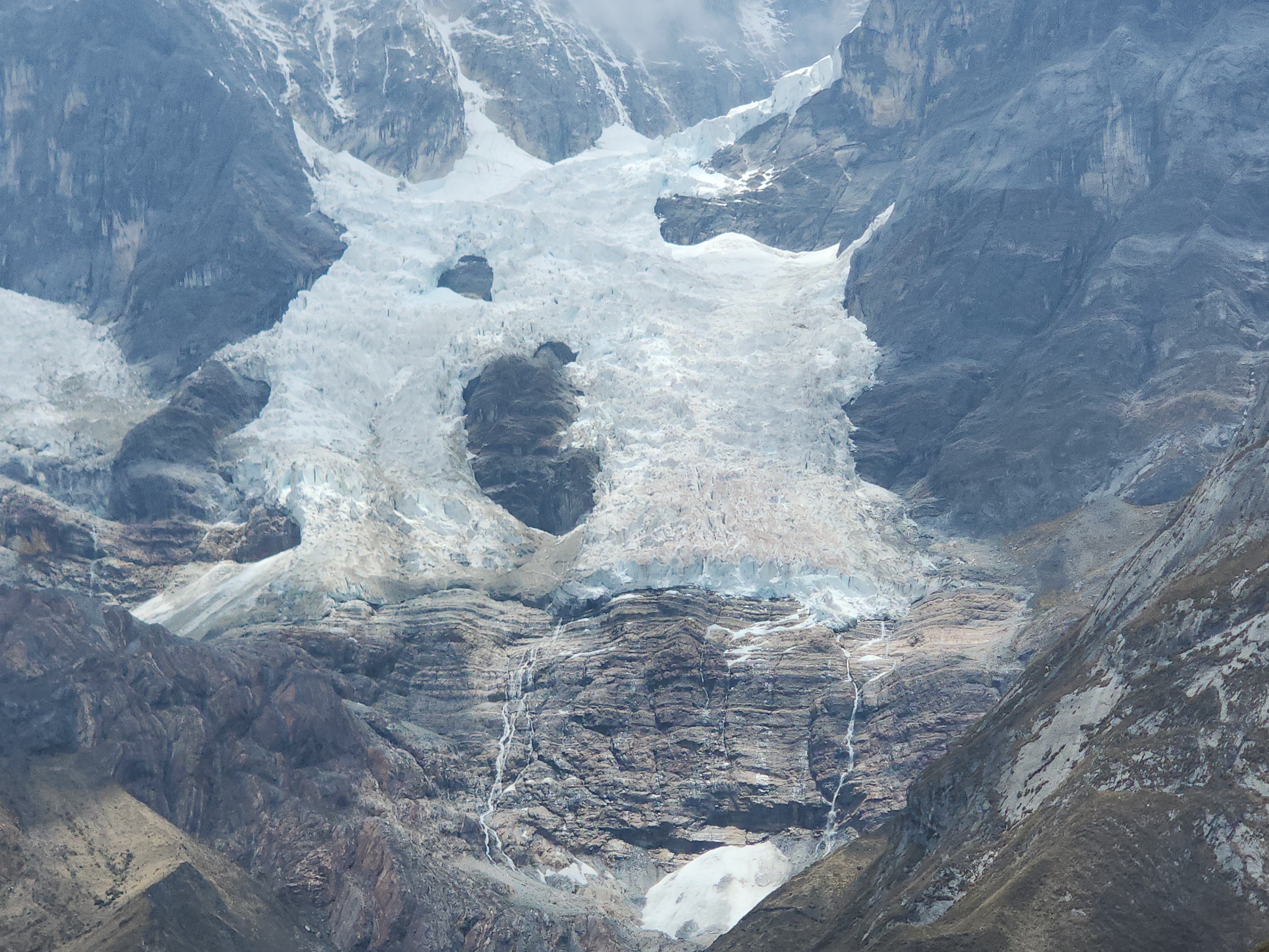 와이와시 트레킹 2일자 첫날과 달리 빙하호수와 빙하들이 많아 사진을 많이 찍었다. 건기가 끝나고 우기가 시작되는 10월이라 대체로 오전에는 날씨가 좋고 오후에는 비가 조금 내렸다. 고봉들은 늫 구름 모자를 쓰고 있었고 갈색의 들판이 초록으로 변하면 얼마나 아름다울까 생각하면서 걸었다. 4000m가 넘는 수목한계선 위를 걷는 고산이라 가끔은 숨쉬기도 힘들었지만 이런 길을 걸을 수 있다니 감탄을 한 날이었다.