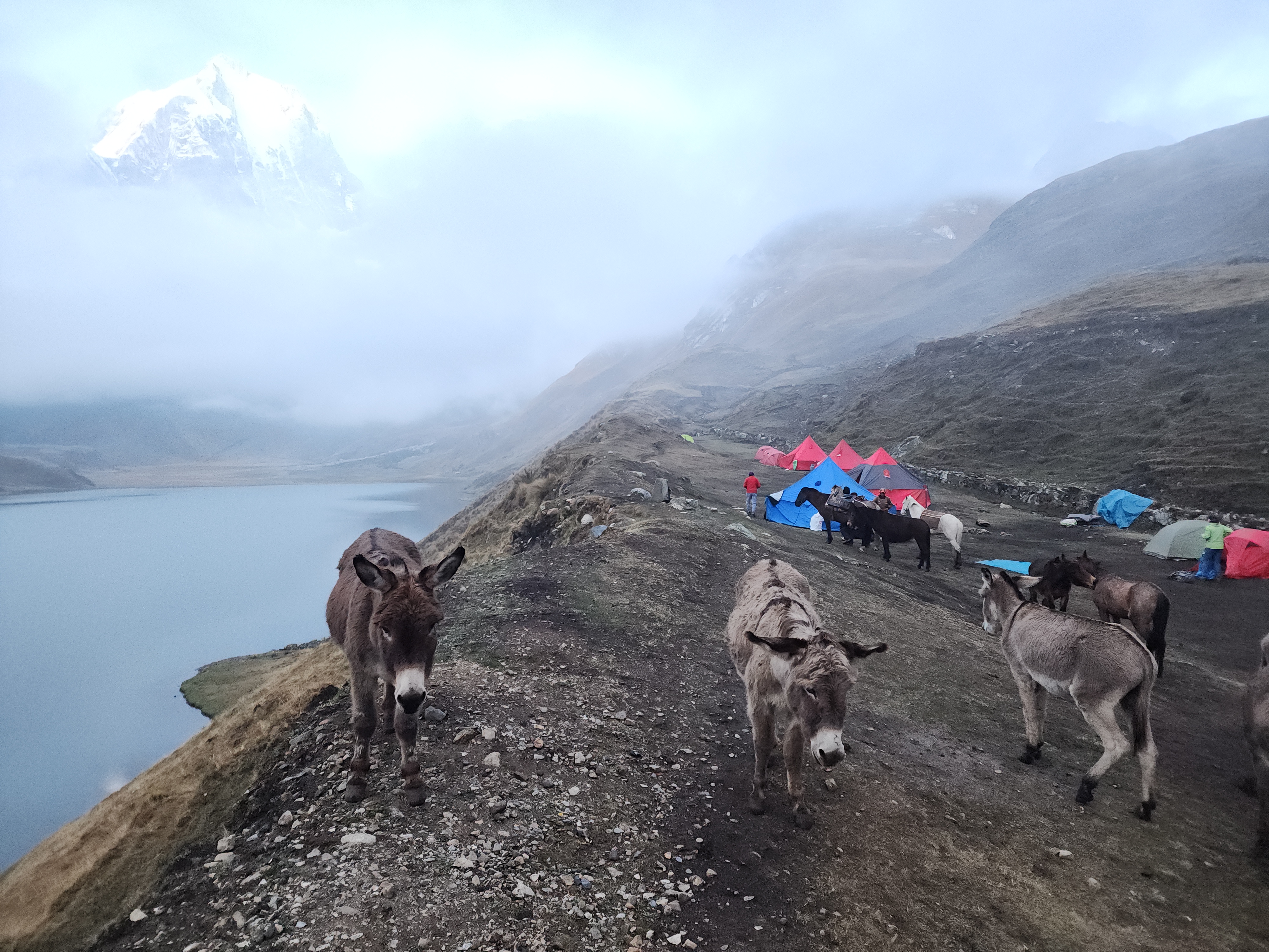 호숫가 캠프사이트와 우리의 짐을 지고 갈 당나귀.