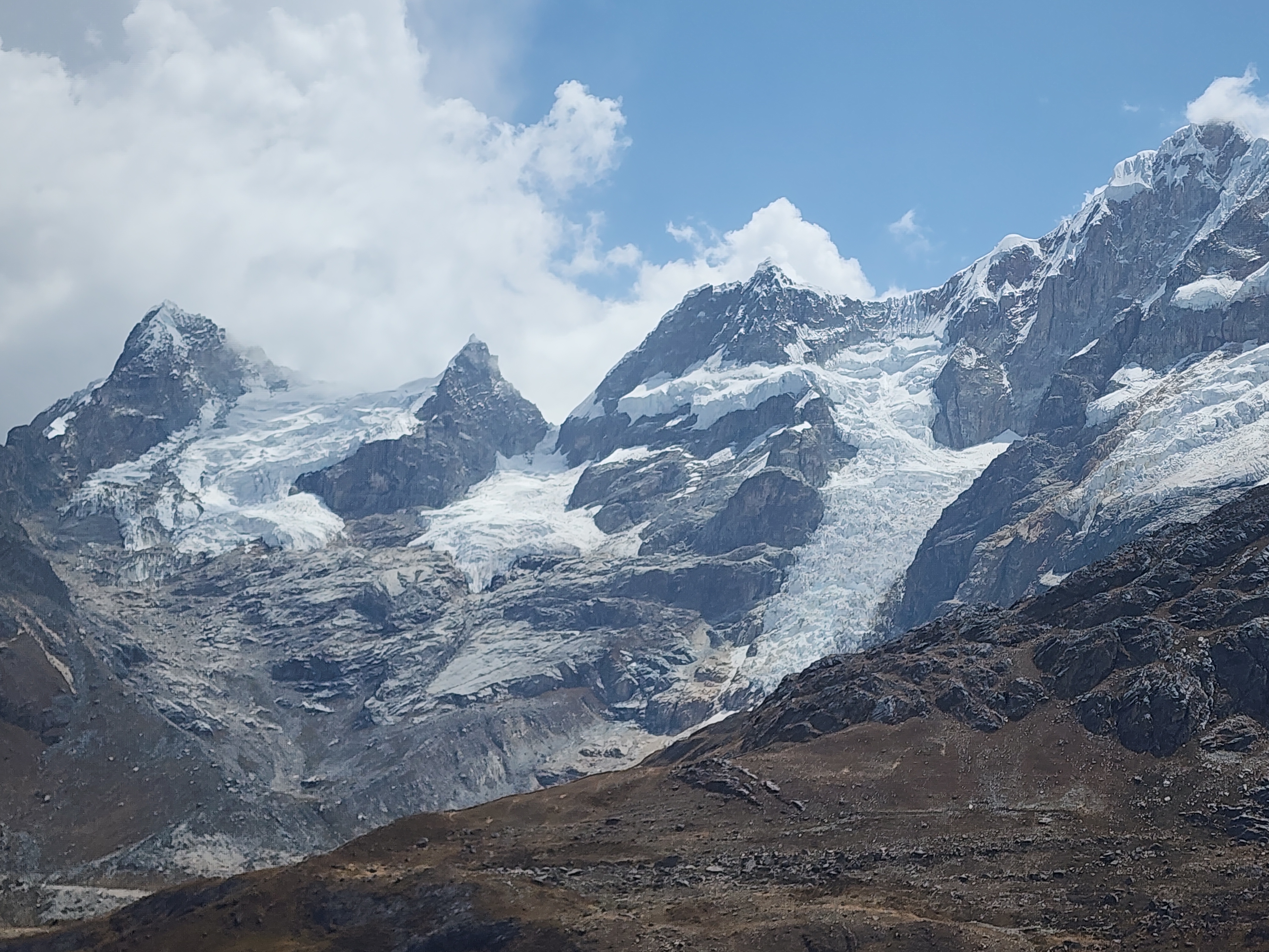 와이와시 트레킹 3일차는 구경거리가 많았다. 빙하호수 3개를 보는 곳까지도 힘들게 올라갔지만 호수가 주는 시원한 경관에 정말 눈이 행복했고 호수와 빙하를 함께 보며 오를때 흘린 땀을 식히면서 힐링의 시간을 가졌다. 이제는 다 올라왔나 생각했는데 아니었다. 산모퉁이를 돌아 또 다시 가파른 오르막이 기다리고 있었다. 이 땀의 끝에도 보상이 있을거라 생각하면서 열심히 걸었다.고산이라 조금만 걸어도 숨이 막혀 헐떡이면서 올라간 4,800m가 되는 고개에서 보는 고봉과 빙하, 거기에서 듣게 된 스틸 텅드럼 감상까지 하게 되니 행복한 시간이 되었다