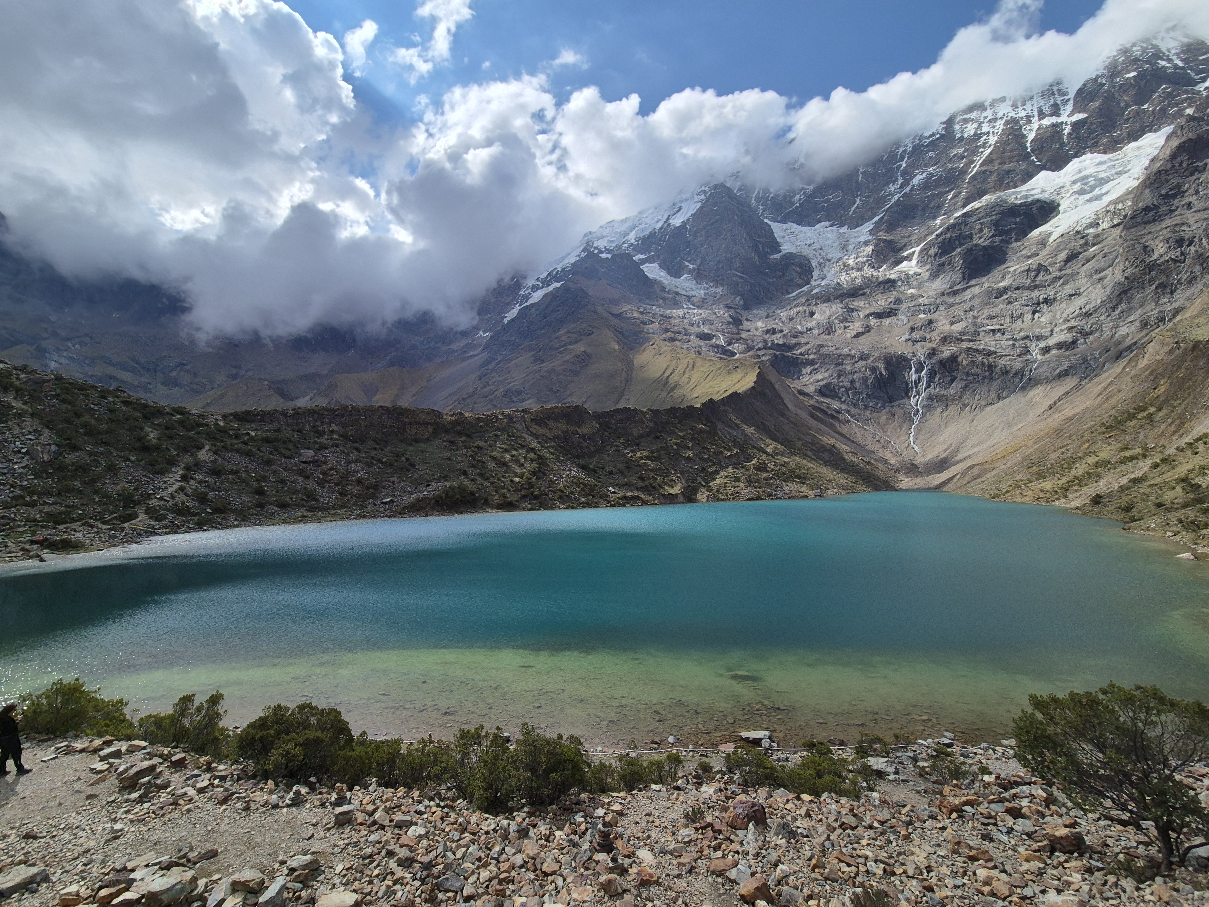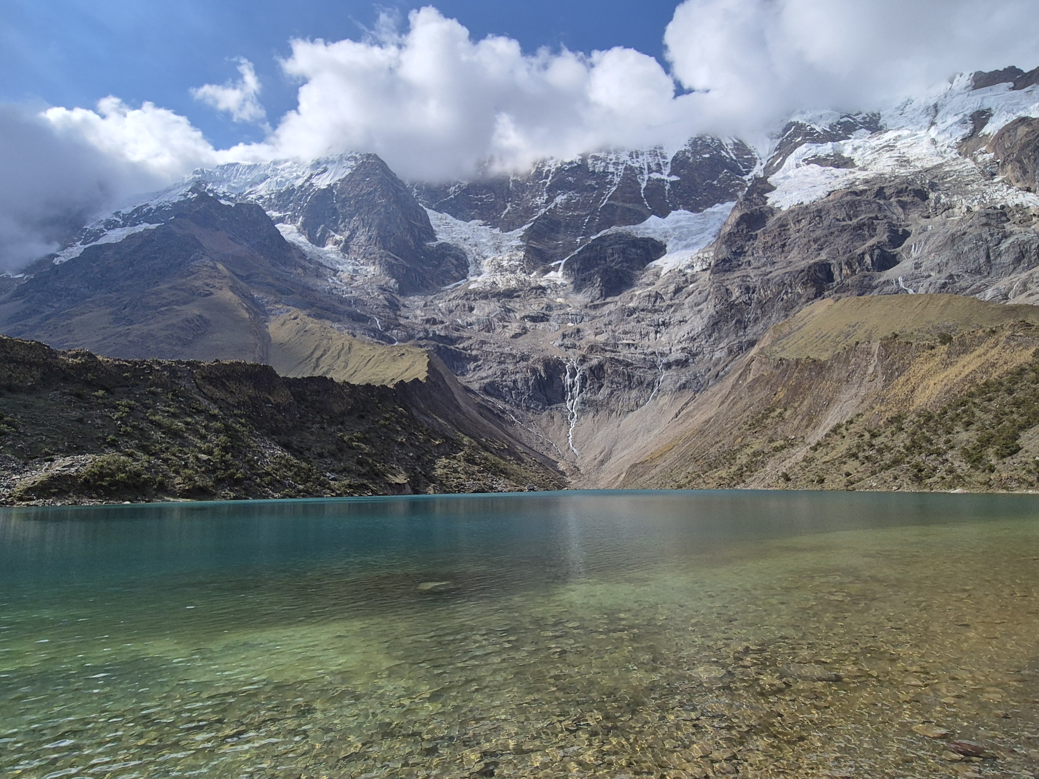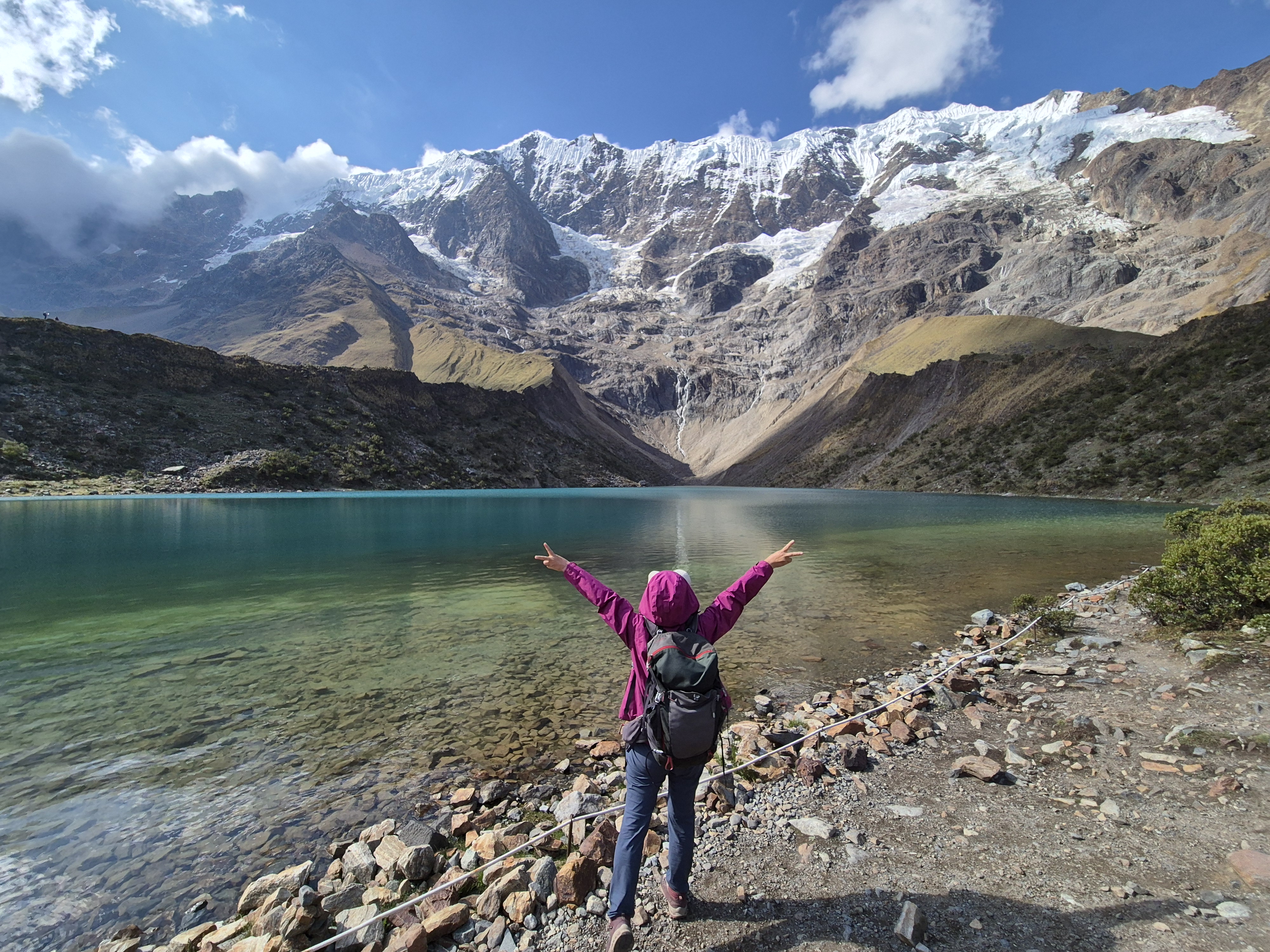 창공부부 세계여행 또 하나의 트레킹 마추피주 가는 길. 쿠스코에서 마추픽추 가는 길은 다양하다. 잉카 트레일로 가고 싶었으나 예약이 어려워 그 대안으로 살칸타이 트레킹으로 다녀왔다. 4박 5일(350달러)에 우리는 마추피주표가 없어 하루 더 아우아스 칼리엔테스에서 머무렀다. 5박 6일에 걸친 마추픽추 여행이 되었다. 새벽 4시에 픽업하여 2시간 정도 달려 아침을 먹고 또 다시 30분 정도를 달려 출발지에 도착했다. 산행 할 준비를 하고 간단하게 서로 자기소개를 하고 트레킹을 시작했다. 일행은 각국에서 모인 14명, 우리를 빼고는 모두가 20대이다.간단한 준비 운동과 설명을 듣고 1시간 정도 오르막을 오르고 2시간 정도 평지 길을 걸으면 오늘 오전 일정은 끝이다. 켐프사이트에 도착하여 점심을 먹고 우만타이 호수에 갔다오는 일정이다. 올라갈 때는 힘들었으나 수로를 따라 걷는 평지 길, 앞으로 보이는 설산 전먕이 좋았다, 젊은 애들이라 모두 잘 걸었다.