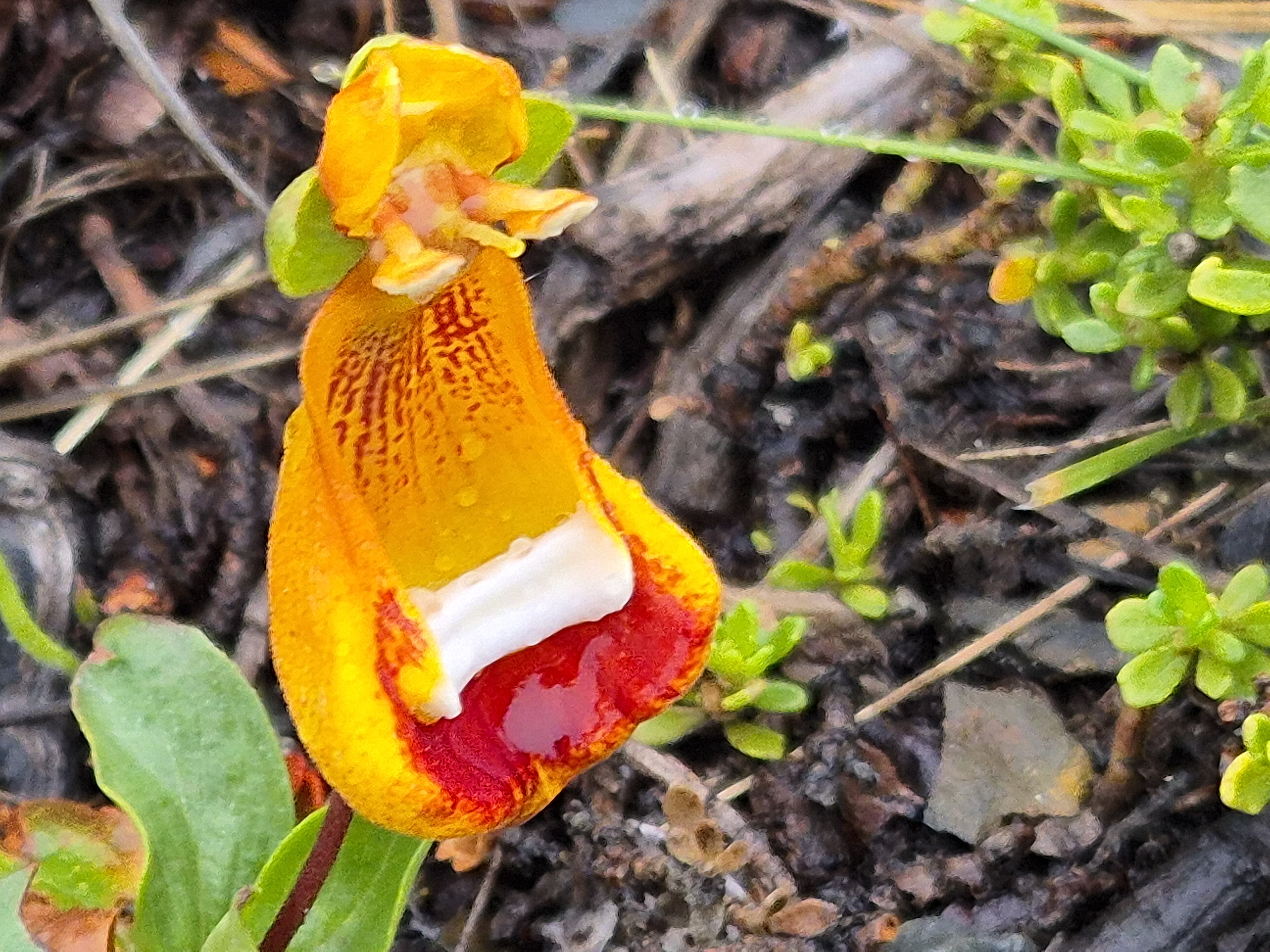 산장에서 일어나니 산에는 하얀눈 아래에는 빨간꽃 봄과 겨울을 같이 볼수 있었다.