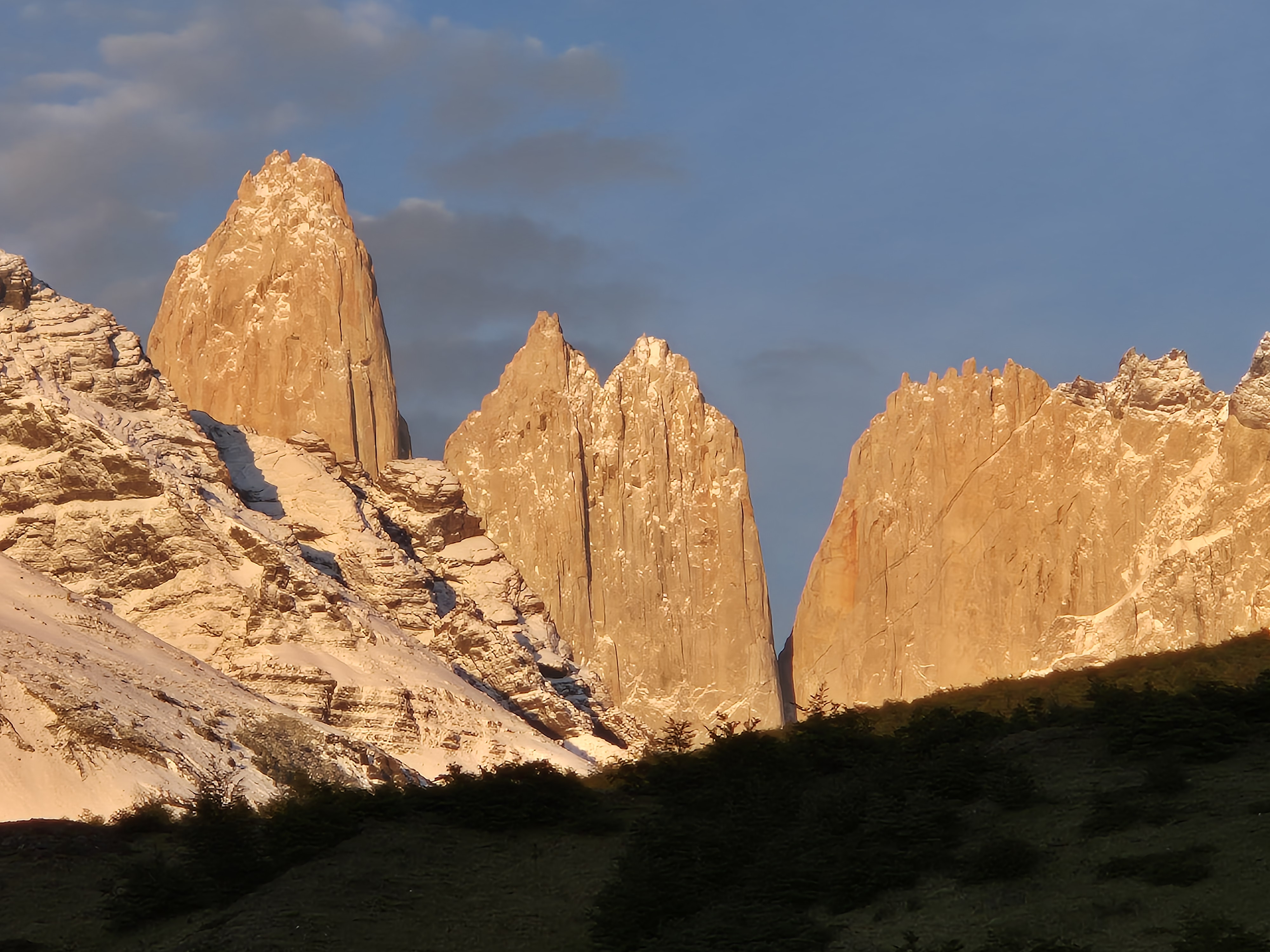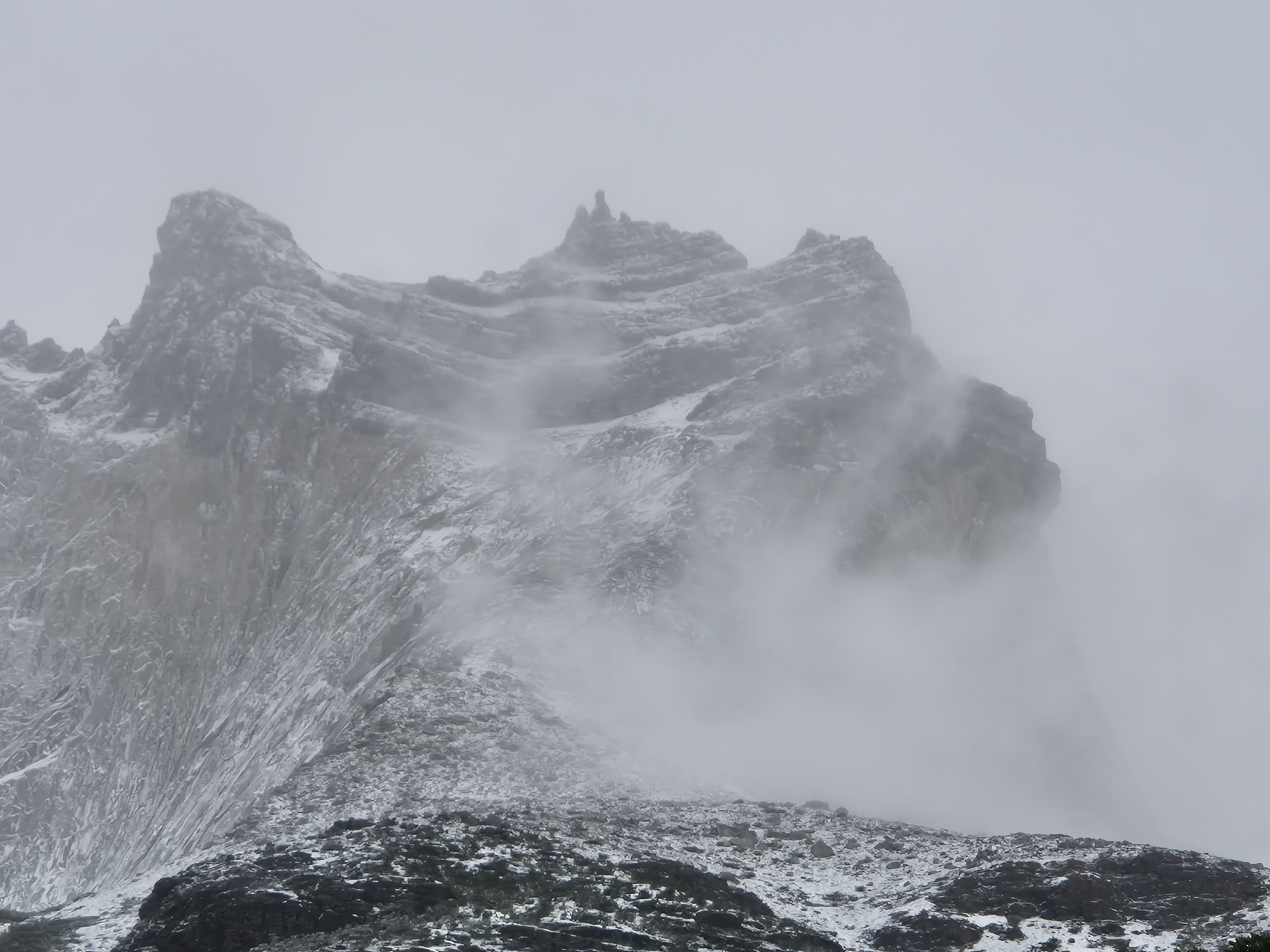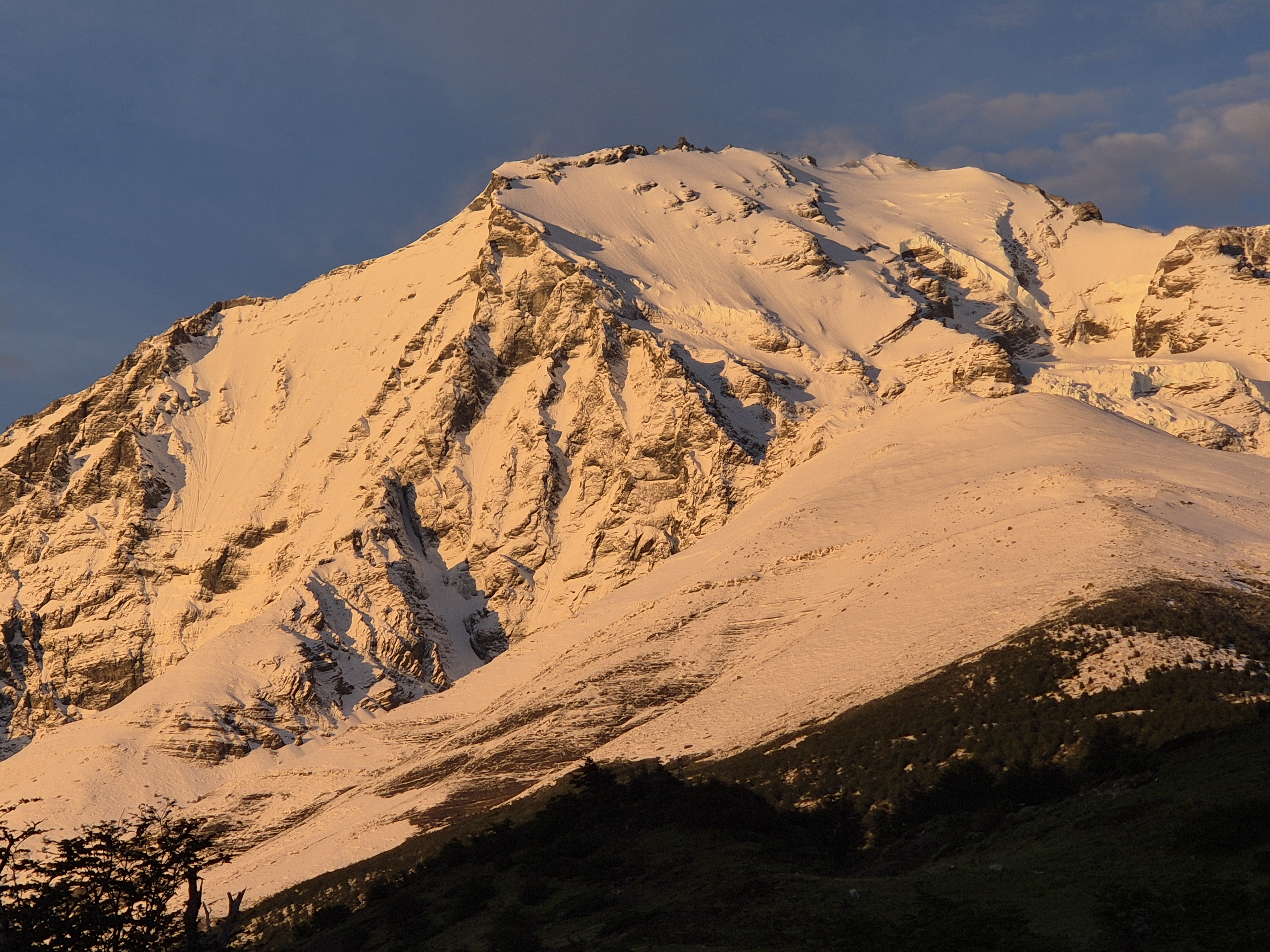 파타고니아 토레스 델 파이네 W-트레킹(3박 4일) 3일차 센트랄 캠핑장 가는 날 어제 밤부터 내린 비는 아침이 되어도 계속 내렸다. 산 위에는 하얀눈세상이 되었다. 쿠에르노스 산장에서 아침을 먹고 비가 그치기를 기다렸으나 체크아웃 시간인 9시 30분이 지나도 계속 비가 내려 빗 속을 출발했다. 빗줄기는 더 굵어지고 진눈깨비로 변해 추웠다. 오늘은 거리가 짧아 여유있게 걸었다. 내리는 눈 속에서도 경치는 좋았다. 2시가 다 되어 오늘의 숙소인 센트로에 도착했다. 눈이 내려 그런지 잘 때 침낭은 따뜻했으나 얼굴은 시러웠다. 불타는 토레스삼봉을 볼려면 칠레노산장에 숙박해야하는데 아쉽게 예약을 못하여 센트랄캠핑장에 가야했다.