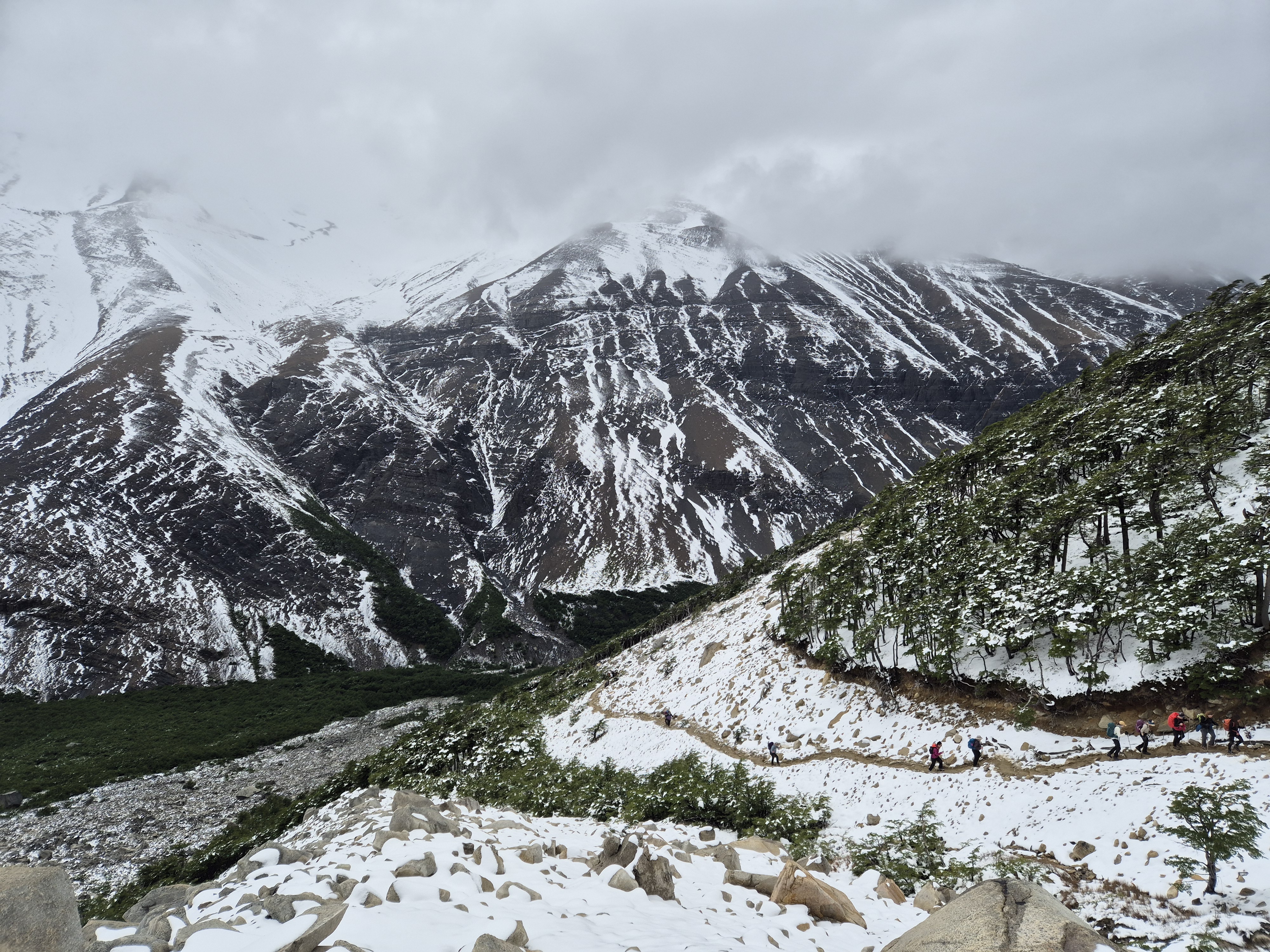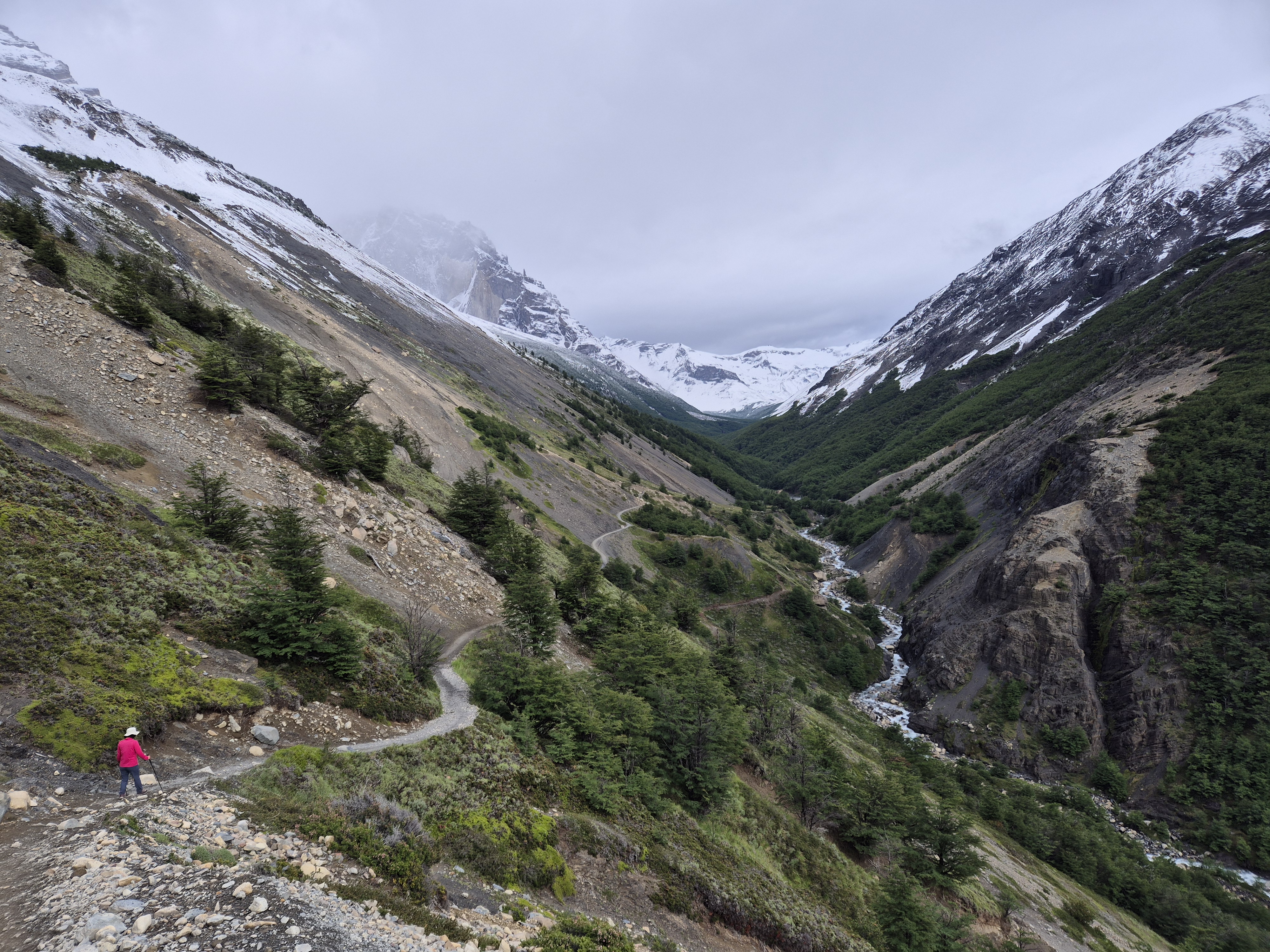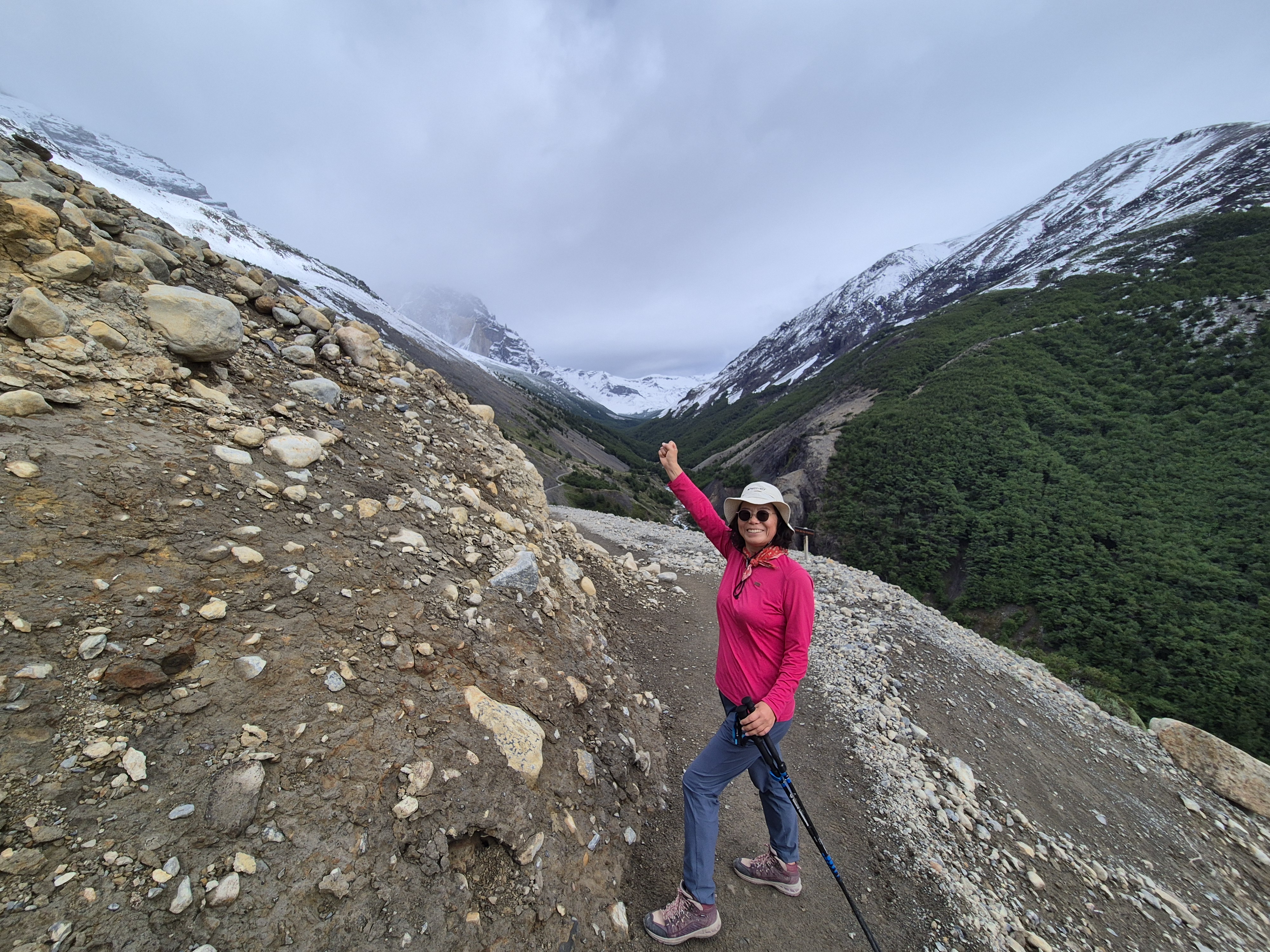 계창공부부 퇴직한 김에 세계여행 파타고니아 토레스 델 파이네 W 트레킹(3박 4일) 77km의 하이라트인 토레스 삼봉 보러 가는 날 W-트레킹을 늦게 예약을 하여 칠레노 산장에서 자지 못해 붙타는 고구마를 볼 수 없는 센트랄 캠핑장에서 자서 아침을 먹고 삼봉을 보러 출발했다. 삼봉 일출을 못 보는 것이 아쉽기는 했으나 이렇게 W-트레킹을 할 수 있다는 것만으로도 행복했다. 아침에 일어나니 날씨가 좋아 기분좋게 오르막을 올라 칠레노 산장에 도착하여 커피 한잔(5,000페소) 마시면서 쉬고, 평지 길을 오르락내르락하다가 삼봉 1km를 남겨놓고는 가파른 오르막이 이어졌다.